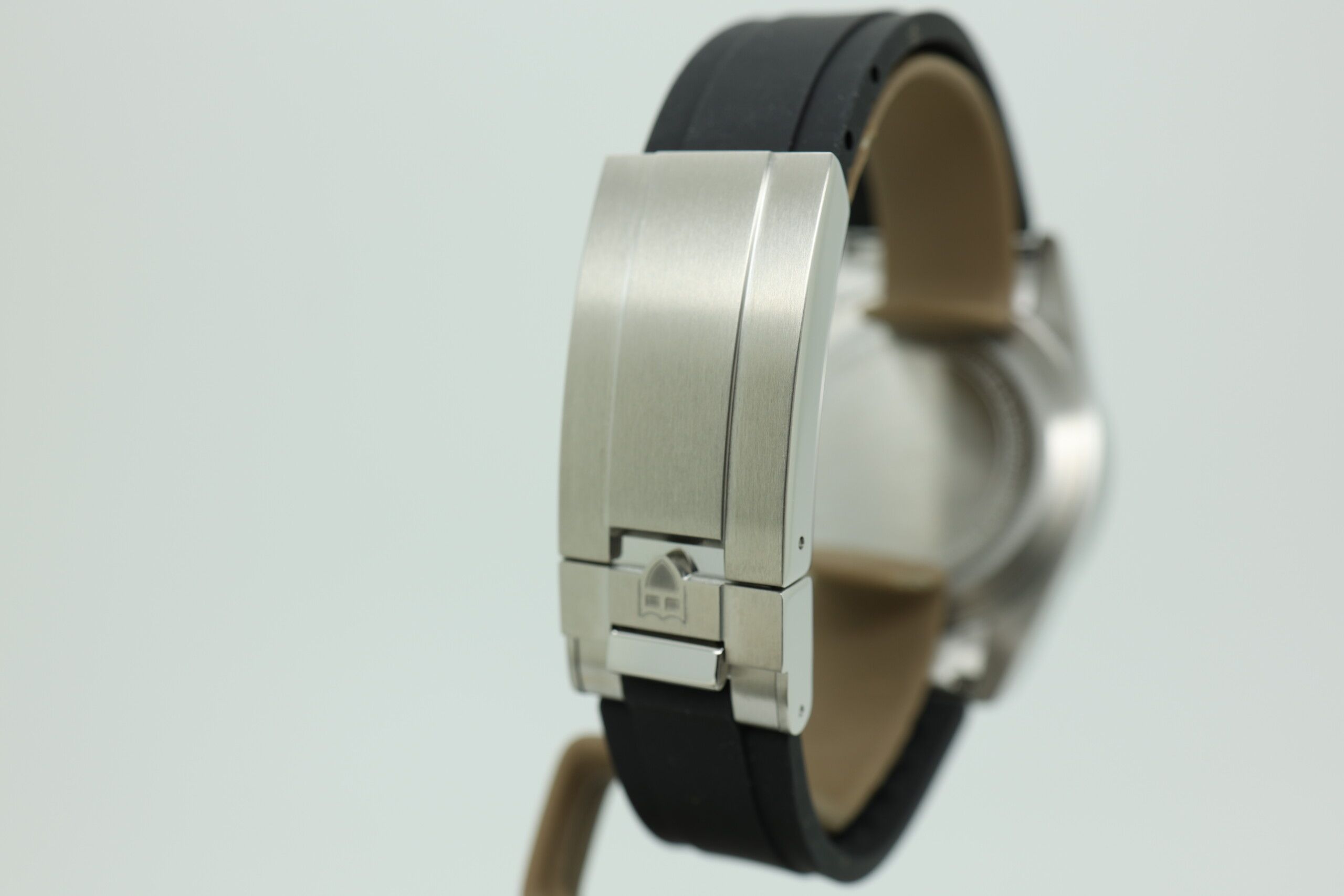 Le bracelet en caoutchouc donne à ce plongeur classique une touche plus sportive, ajoutant confort et polyvalence à son design robuste. Résistante à l'eau jusqu'à 200 mètres, elle est prête pour l'océan, le bureau ou tout ce qui se trouve entre les deux.