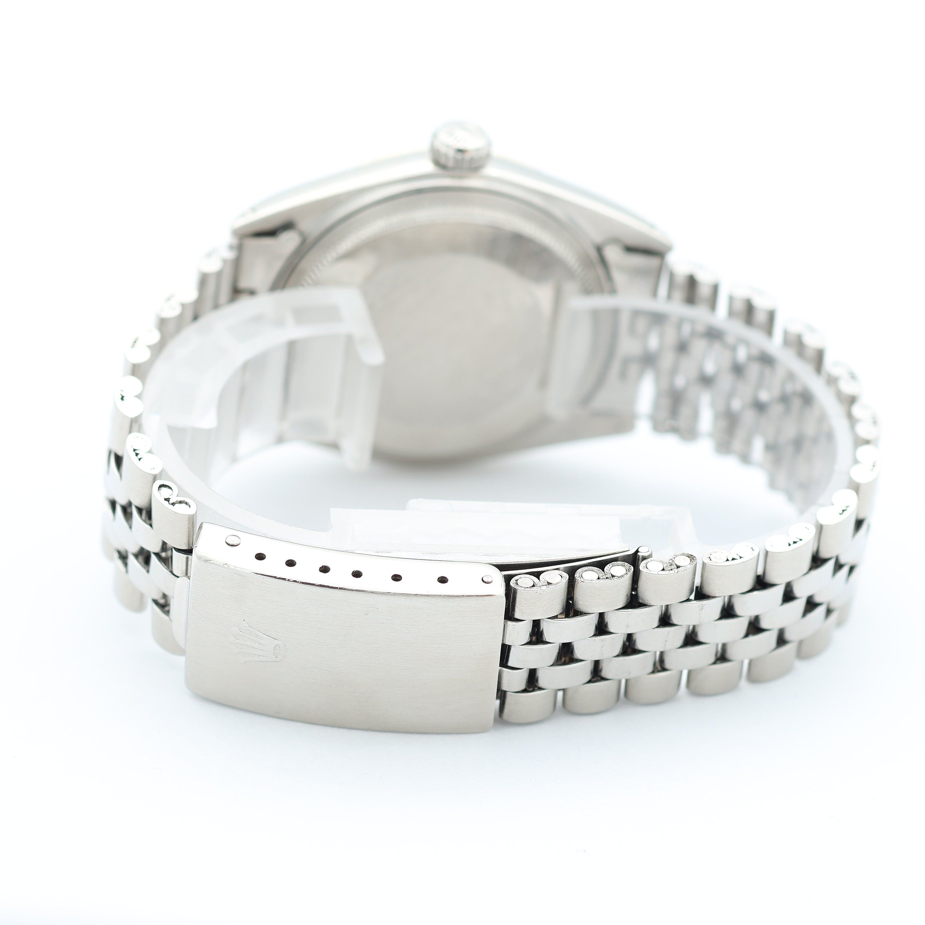 For sale at Debonar Watches: pre-owned Rolex Datejust ref. 1601 in steel and white gold, on a Jubilee bracelet, with a fantastic classic silver dial. The Rolex Datejust is considered the definitive “watch”: its design has barely changed in 60 years and is a familiar sight even to non-enthusiasts. This Rolex has all the signature aesthetics of a Datejust, which include a fluted bezel, baton hour markers, and the Cyclops magnifying bubble over the date window. BRAND ROLEX MODEL DATEJUST REFERENCE 1601 CASE MATERIAL STEEL MOVEMENT AUTOMATIC DIMENSION 36 MM DIAL SILVER BEZEL WHITE GOLD CRYSTAL PLEXIGLASS BRACELET TYPE BRACELET BRACELET MATERIAL JUBILEE BRACELET LENGHT 17 CM ORIGINAL BOX NO ORIGINAL PAPERS NO YEAR APPROX. THE '70s CONDITION GOOD