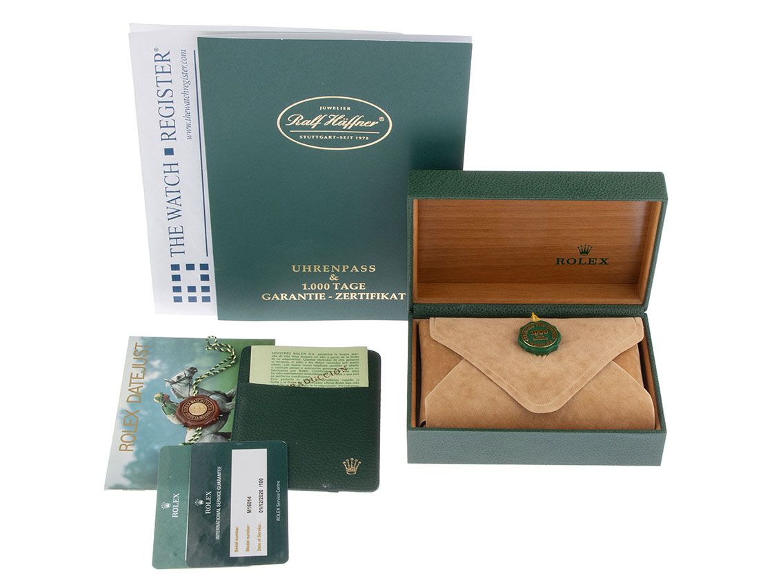 Inklusive certified pre owned Siegel / Uhrenpass mit einem Farbbild, der genauen Beschreibung sowie dem Wiederbeschaffungswert der Uhr über 8700,-€ und 1000 Tage Garantie ab Kaufdatum.