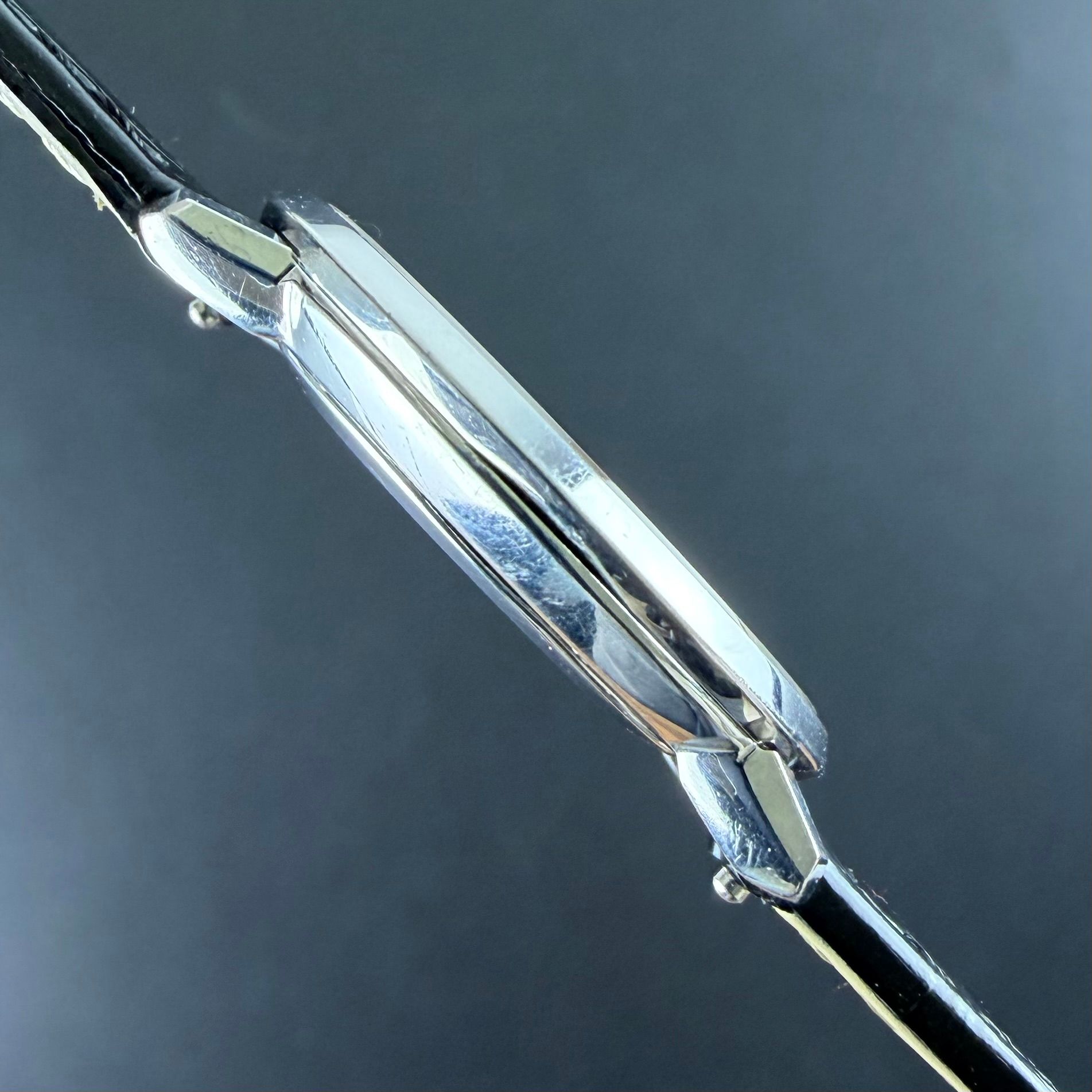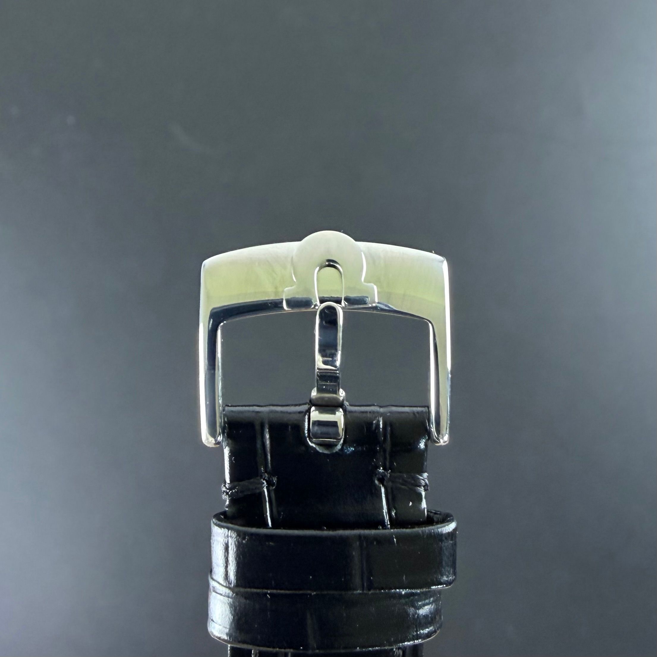 Strap: A made in France black calf leather strap with crocodile grain and light glossy finishing. (Fits a 11 to 19cm wrist)
