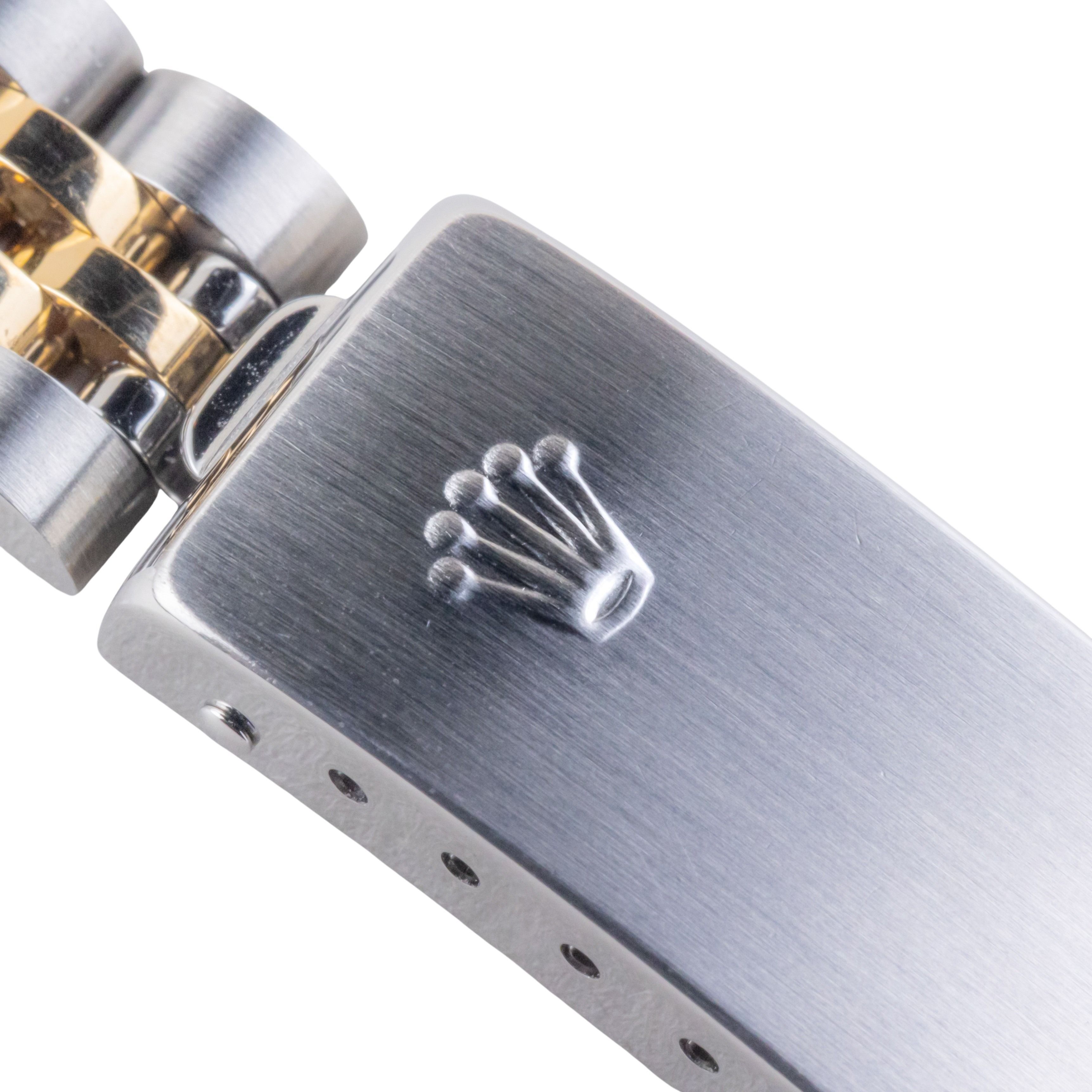 Rolex Oyster Perpetual Lady-Datejust reference 69173 from 1993 including full set. The Lady-Datejust 69173 measures a 26mm gold and stainless steel case, two-tone jubilee bracelet and fluted 14k gold bezel. This Lady-Datejust 69173 features an automatic movement caliber 2135 with quickset date function, a scratch resistance sapphire crystal and a silver logo dial w/ tritium hands and diamond index.Every watch sold by Langedyk Vintage Watches is included with a LVW watch box, Authenticity report and free worldwide (insured) shipment. In addition, every pre-owned watch is offered with our 12-month warranty from the date of purchase.