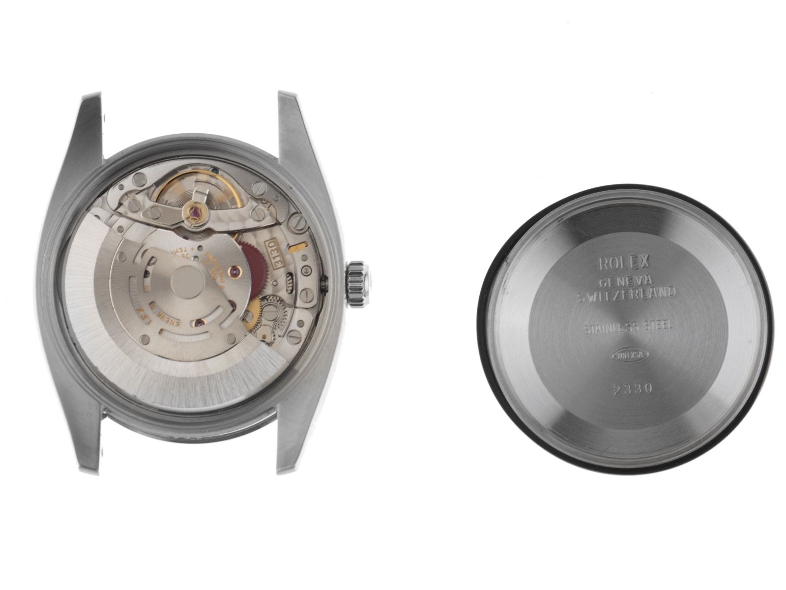 Boîtier en acier poli et satiné, diamètre du boîtier sans couronne 34mm, hauteur du boîtier 11,5mm. Lunette en acier lisse et poli. Bracelet Oyster en acier poli et satiné, fermoir déployant en acier avec logo du fabricant. Cadran argenté avec index en or blanc appliqués et chiffres arabes ainsi que des aiguilles en or blanc. Mouvement automatique, chronomètre avec certificat, calibre manufacture Rolex 3010 avec 27 pierres précieuses. Affichage des heures, minutes et secondes par aiguilles centrales avec stop-seconde pour un réglage précis de l'heure. Verre saphir résistant aux rayures. Couronne vissée avec logo du fabricant. Fond en acier vissé. Poids de la montre, bracelet inclus, 115g, longueur du bracelet, boîtier inclus, 170mm. Numéro de référence : 114234, numéro de boîtier : M256XXX, année de fabrication : 2007, ID : P1970118881125H-9800, numéro d'article : 10000083386. Avec contrôle de marche et révision extérieure complète de novembre 2025. Boîte Rolex originale avec carton d'emballage et papiers de garantie sans date d'inscription, LC 838 / République Populaire de Chine ainsi que description, certificat chronomètre Rolex, livret de traduction et extrait du registre des montres de novembre 2025, certificat The Watch Register / sans inscription (base de données internationale pour montres perdues ou volées), Full Set. Comme neuf. Délai de livraison immédiat.