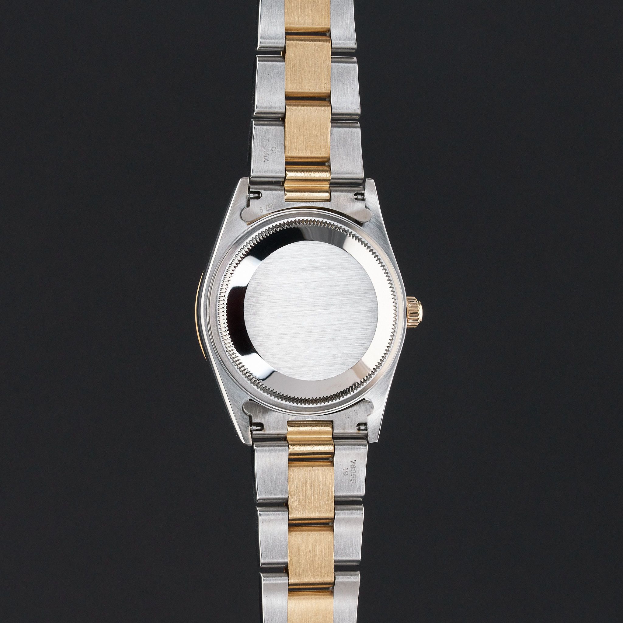 This Rolex Oyster Perpetual Date 15203 features a Grey Arabic dial and is crafted from 18K yellow gold and stainless steel, with a production year of 1997.Case No: U31XXXX