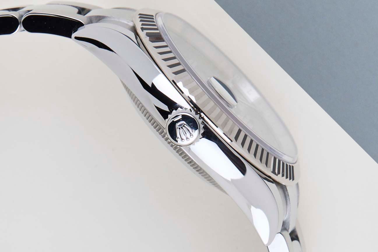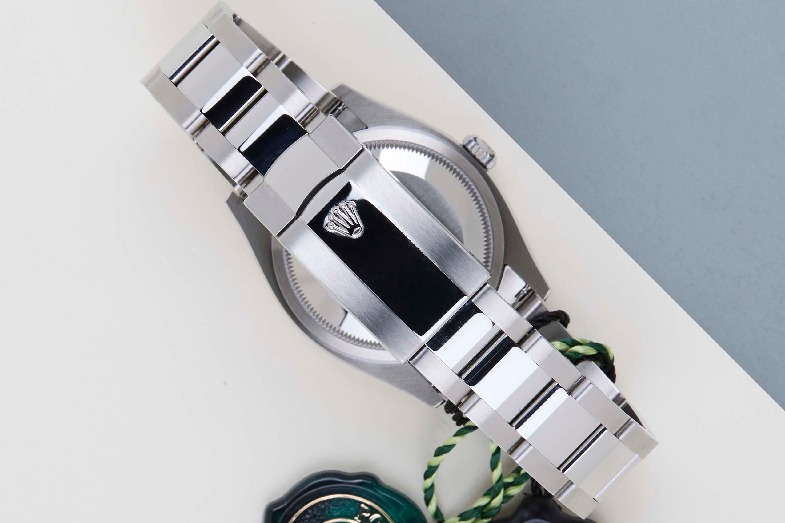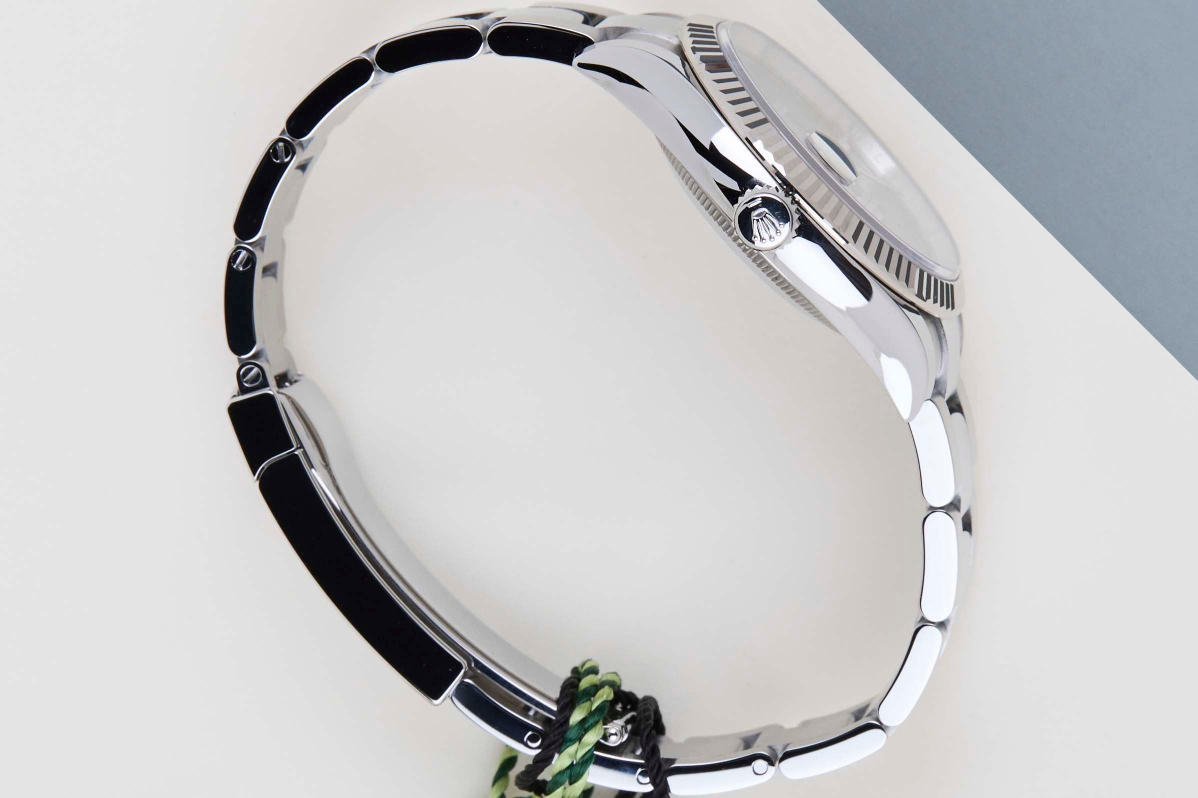 Cette Rolex Datejust 36 est en état neuf et est livrée avec la carte de garantie Rolex originale et la boîte. De plus, la montre bénéficie toujours de la garantie internationale Rolex jusqu'en octobre 2029.