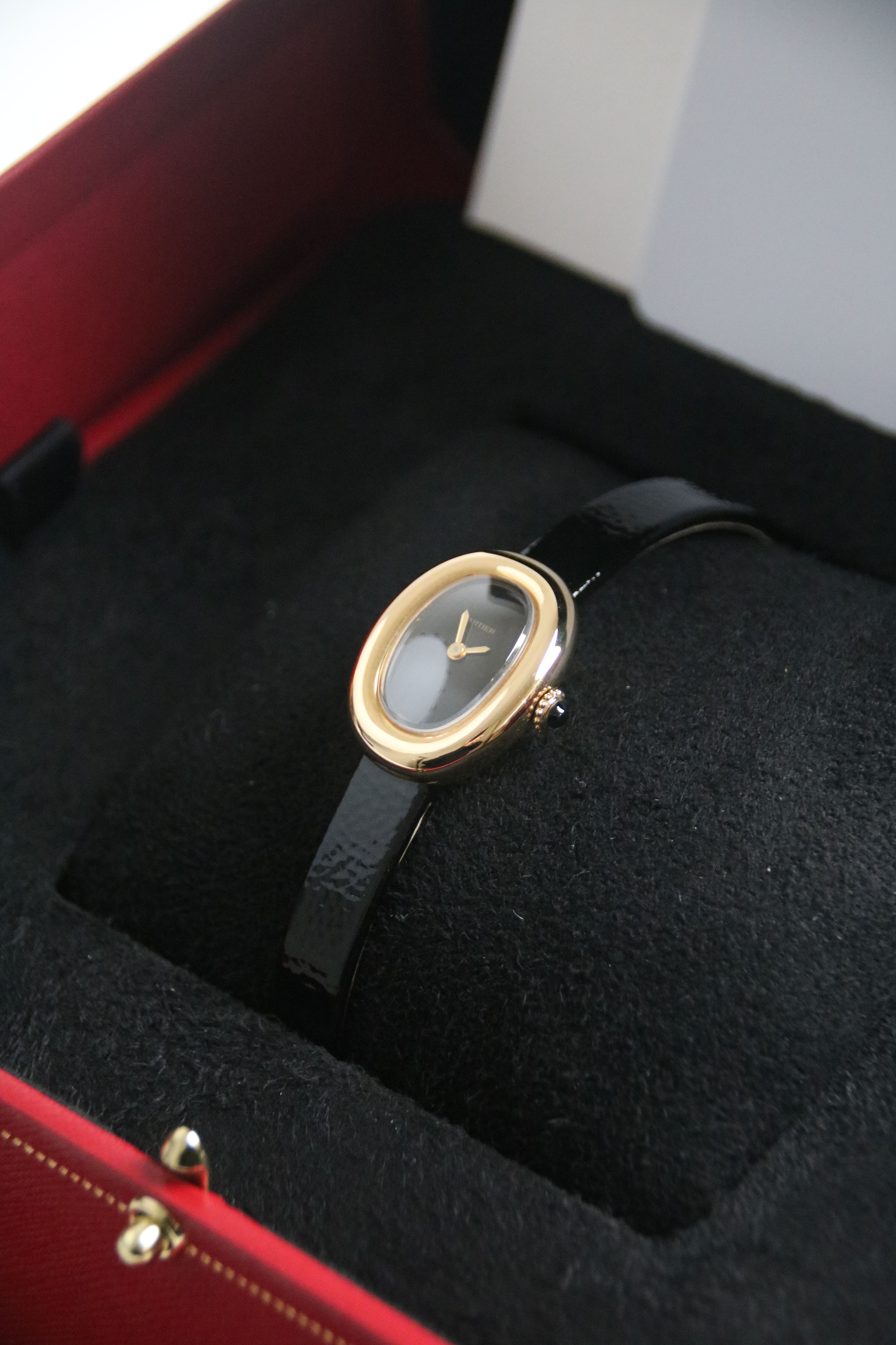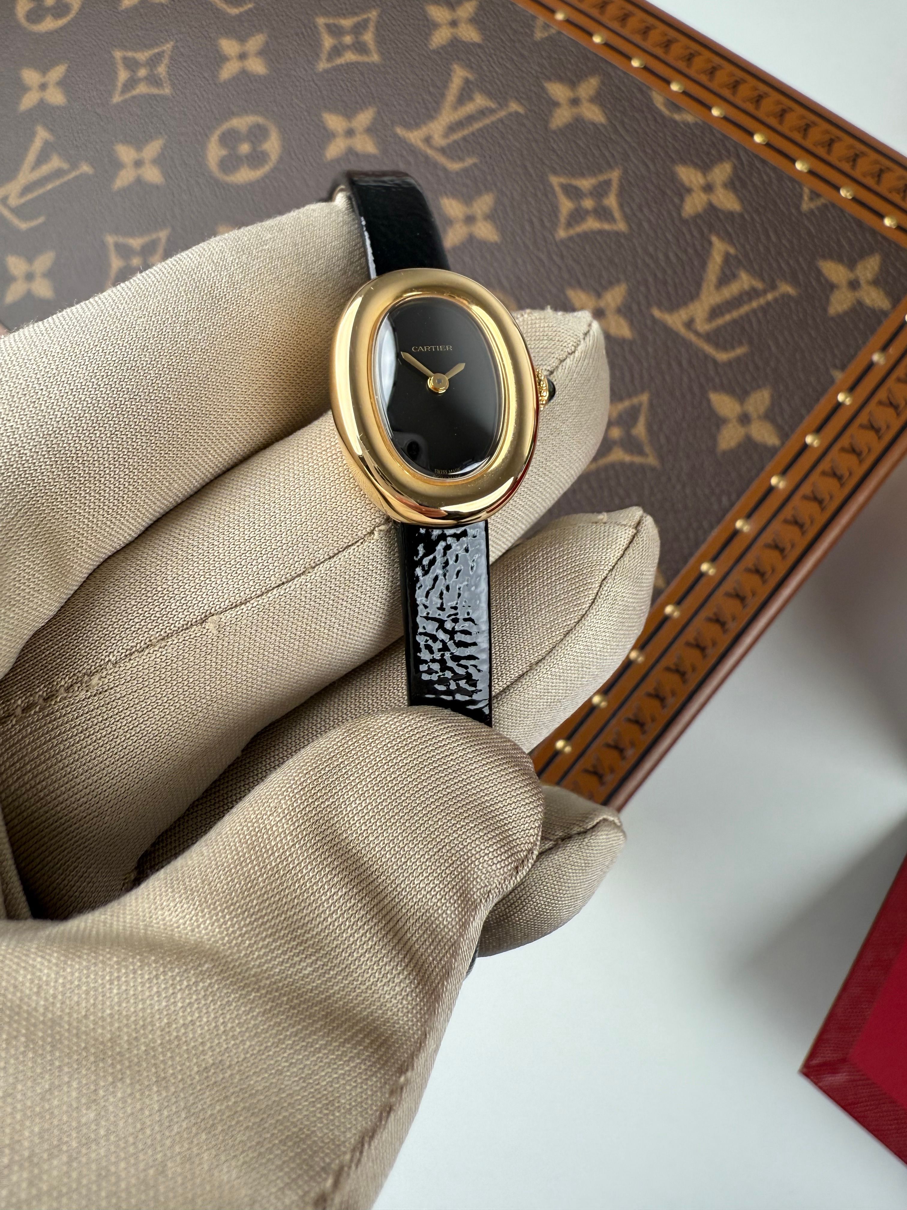 For sale is a brand new and unworn Cartier Baignoire in yellow gold with black dial and black leather strap. The watch comes as a full set, purchased from the authorized retailer in September 2025. Worldwide Cartier warranty until 2033.Please contact us in case of any questions.