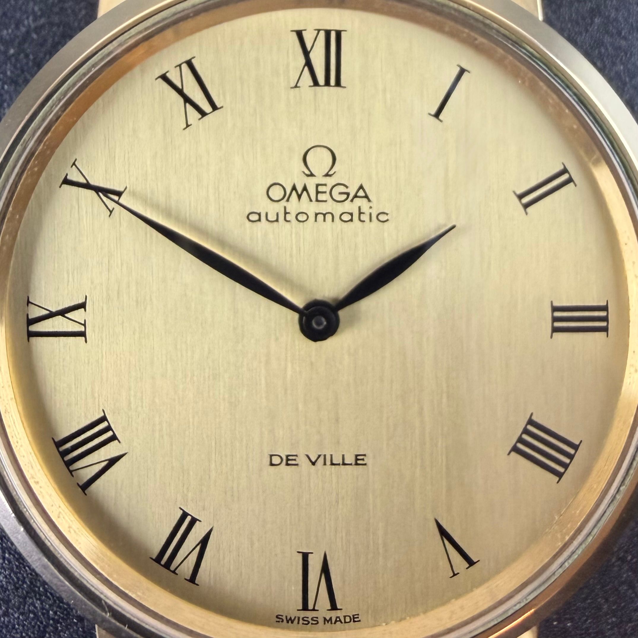 This vintage Omega De Ville Automatic, produced in 1972, stands out for its originality and condition. The watch is fully original, including the Omega calf-leather strap and Omega buckle. Its near-mint condition, with only light scratches on the case back, shows it was barely worn. The thin 6,8mm profile is made possible by the caliber 711 automatic movement, serviced in November 2025 and now running excellently. It features a larger-than-usual 36mm case, and a perfectly preserved golden, vertically brushed dial with Roman numerals and leaf hands. The watch is in excellent overall condition and comes with its original box. Pieces like this are becoming increasingly more uncommon and suit both collectors and dress-watch enthusiasts.Year of production: 1972
