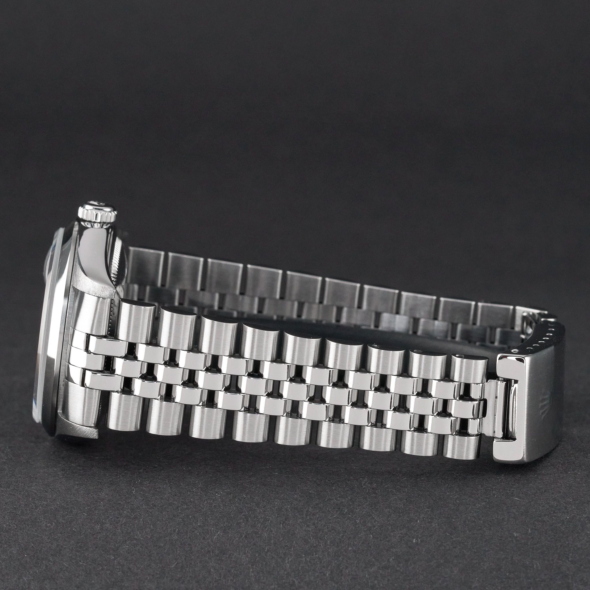 Cette Rolex Datejust 16200 présente un cadran argenté et est fabriquée en acier inoxydable, avec une année de production de 2003.