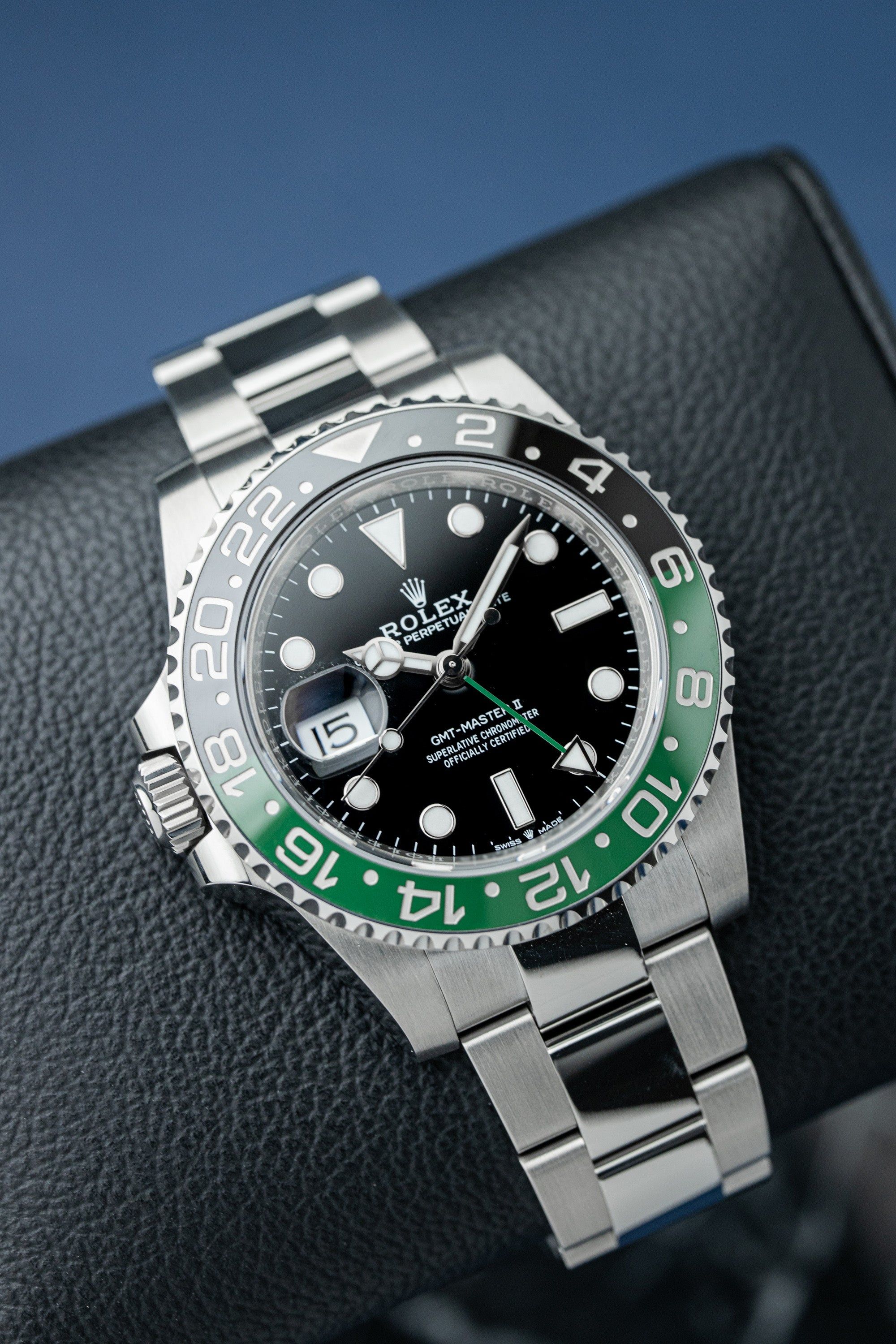 This highly sought-after GMT-Master II “Sprite” features the distinctive green & black bezel and left-hand crown configuration, making it one of the most unique modern Rolex models.This piece is in like new condition, comes as a full set from 03/2025, and is covered by the Rolex international guarantee until 03/2030. A standout choice for collectors and enthusiasts looking for a rare and iconic GMT with strong future value.