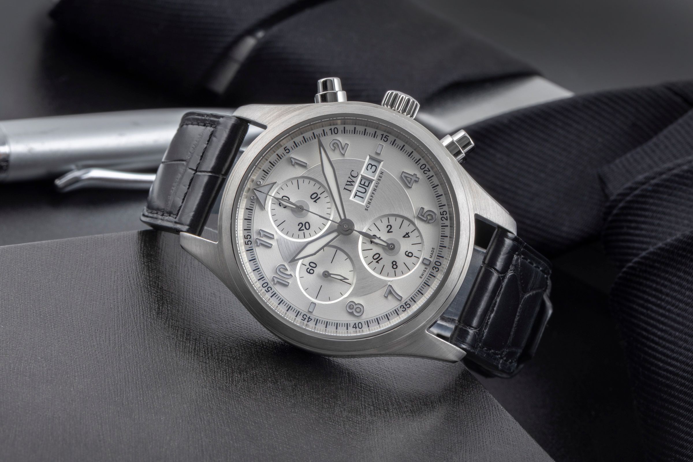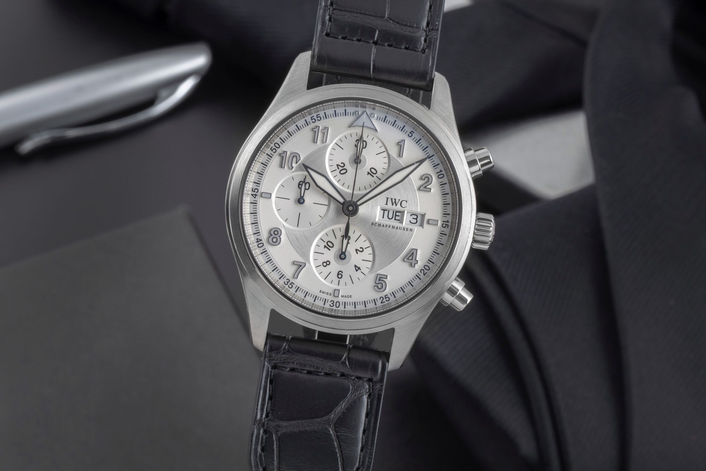 Alternative title: IWC IW371702 Pilot's Watch Spitfire Chronograph Stainless Steel / Silver / Strap; IWC Schaffhausen Fliegeruhr Chronograph Automatik Stahl IW371702 VP 8300,- € B&P [2506550]