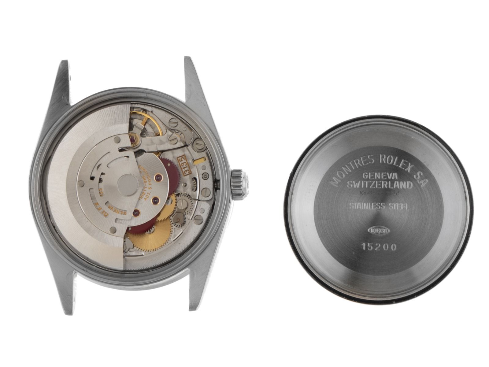 Boîtier en acier poli et satiné, diamètre du boîtier sans couronne 34mm, hauteur du boîtier 12,0mm. Lunette en acier cannelée. Bracelet Oyster en acier poli et satiné, boucle déployante en acier avec logo du fabricant. Cadran blanc avec index en or blanc appliqués, chiffres romains noirs et aiguilles en or blanc. Mouvement automatique, chronomètre, calibre de manufacture Rolex 3135 avec 31 pierres précieuses. Affichage des heures, minutes et secondes par aiguilles centrales avec stop-seconde pour un réglage précis de l'heure, affichage de la date avec réglage rapide sous loupe à 3 heures. Verre saphir résistant aux rayures. Couronne vissée avec logo du fabricant. Fond en acier vissé. Poids de la montre avec bracelet 92g, longueur du bracelet avec boîtier 180mm. Numéro de référence : 15200, numéro de boîtier : W638XXX, ID : P202969721225H-8500, numéro d'article : 10000083559. Avec contrôle de marche et révision extérieure complète de décembre 2025. Boîte Rolex originale avec carton d'emballage et description, livret de traduction, étui en cuir, sceau de chronomètre Rolex et rapport de service ainsi que carte de novembre 2012, ainsi qu'un extrait du registre des montres de décembre 2025, certificat The Watch Register / sans inscription (base de données internationale pour montres perdues ou volées). Investissement avec potentiel d'appréciation, "exécution rare". Très bon état. Délai de livraison immédiat.