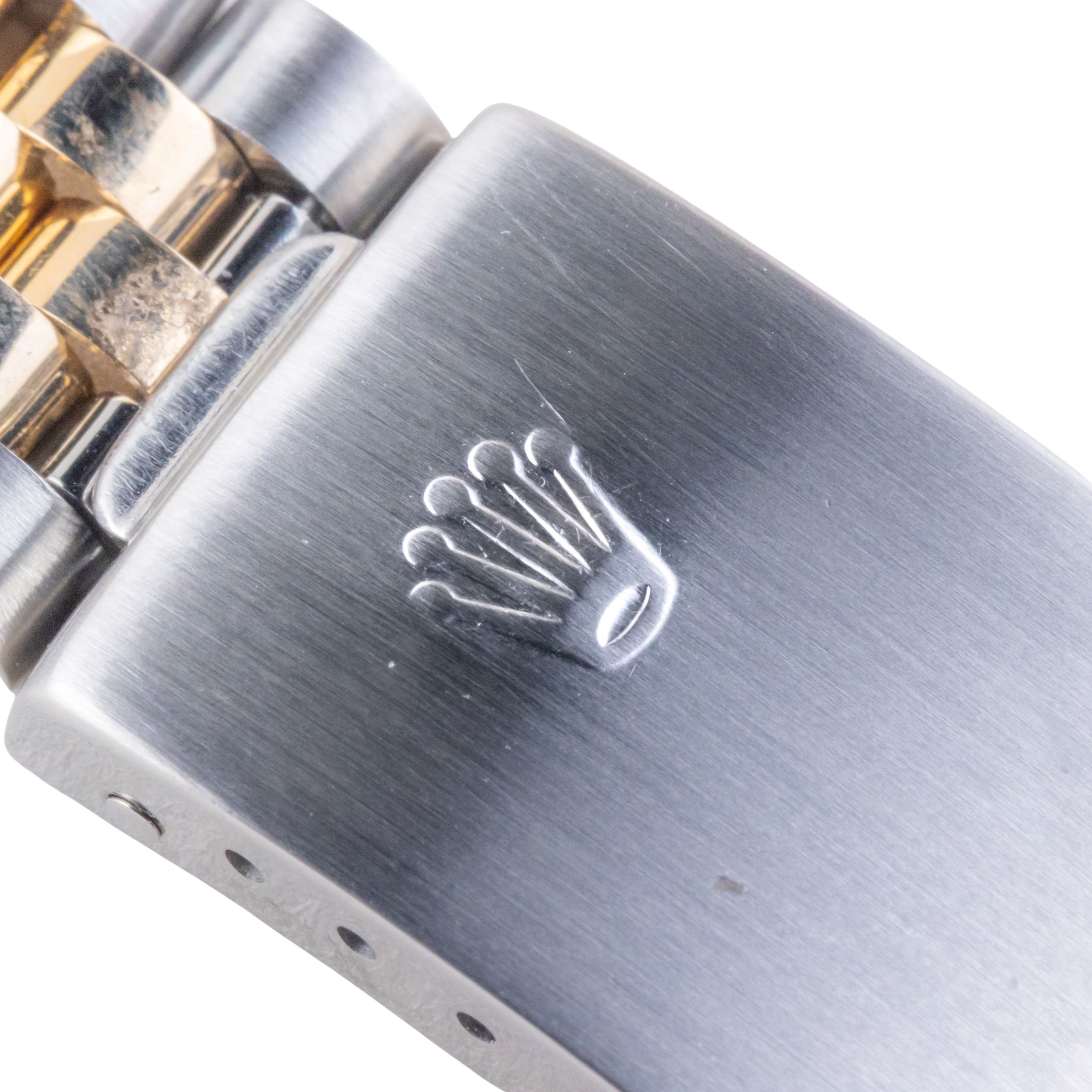 Rolex Oyster Perpetual Datejust référence 16233 de 2002, comprenant l'ensemble complet. La Datejust 16233 mesure un boîtier en or et acier inoxydable de 36 mm, un bracelet Jubilee bi-matière et une lunette cannelée en or 18 carats. Cette Datejust 16233 est équipée d'un mouvement automatique calibre 3135 avec fonction date rapide, d'un verre saphir résistant aux rayures et d'un cadran blanc avec aiguilles en tritium et index en diamant.