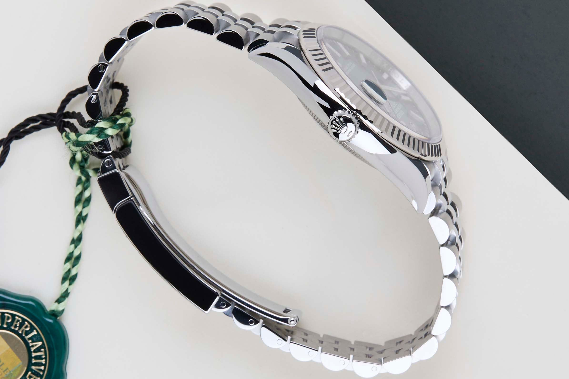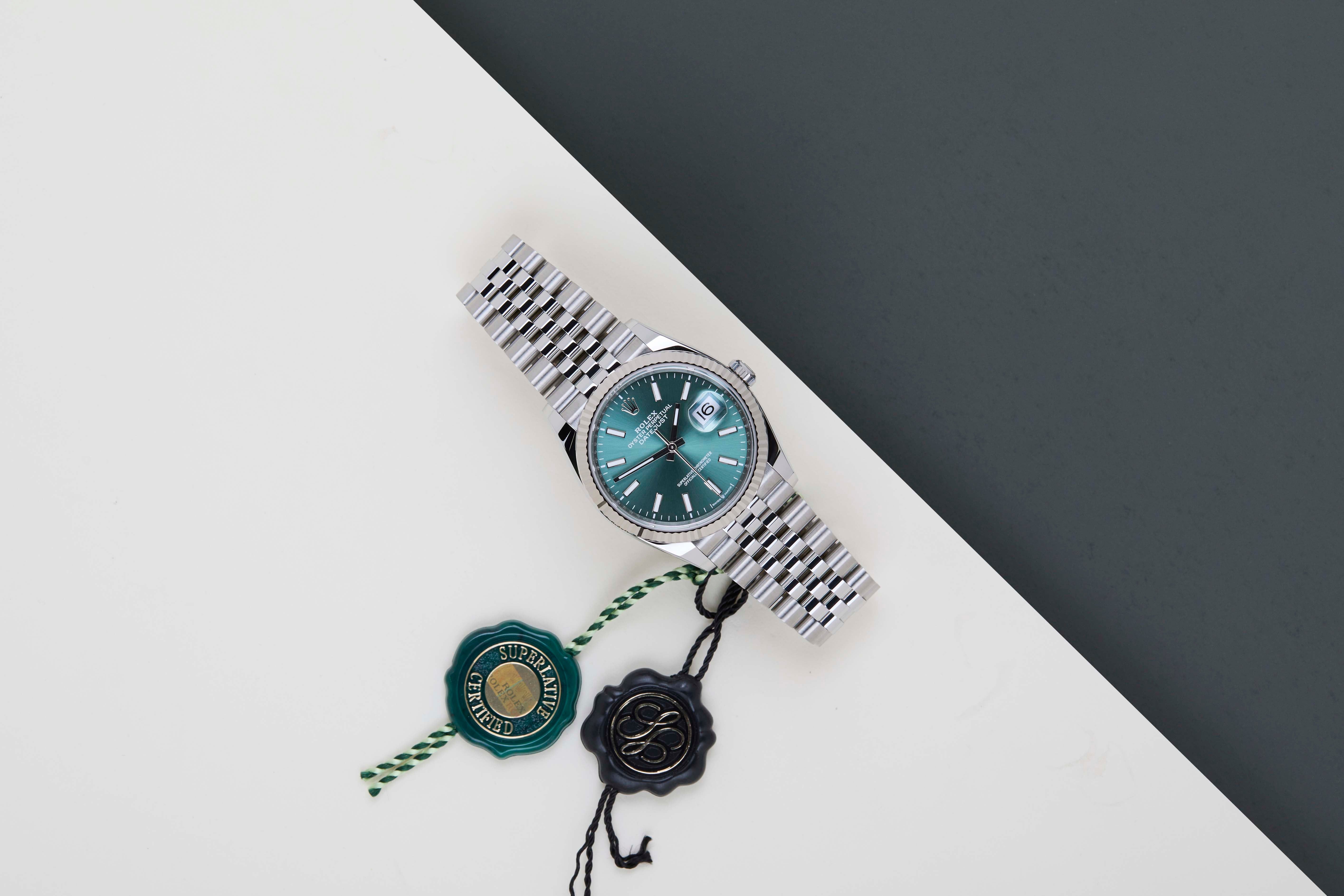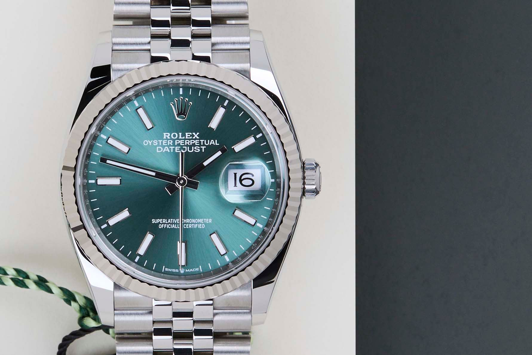 New & Unworn | Full Set | International Rolex Warranty Until November 2030Rolex introduced the original Datejust in 1945 to celebrate the company's 40th anniversary. Due to the various case sizes and materials, the Datejust has been ingrained in Rolex's history and remains incredibly popular for nearly 80 years.This Rolex Datejust 'Mint Green Dial - Jubilee' was sold for the first time in November 2025.This Datejust is made of a combination of 18k White Gold and stainless steel and is fitted with an Jubilee bracelet which is equipped with the Easylink. This extension, allows the wearer to either extend or shorten the bracelet by 5 millimeters, improving the wearability and usability of the watch.This Rolex Datejust 36 is in New & Unworn condition and comes with the original Rolex Warranty Card and box. Furthermore, the watch still has International Rolex Warranty until November 2030.