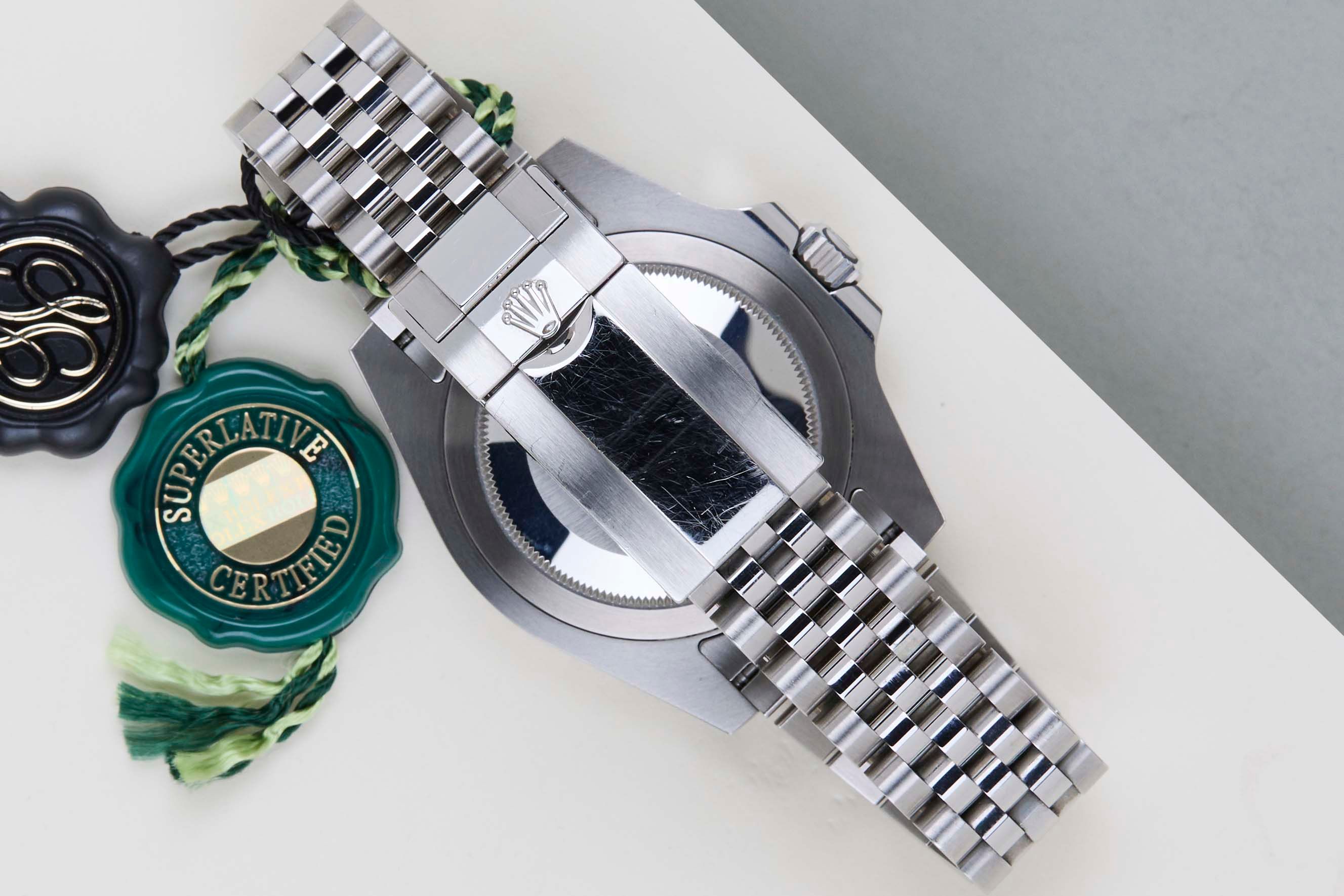 Full Set | Unpolished Condition The Rolex GMT was originally designed in collaboration with Pan American Airways and issued to their crews on long-haul flights. The dual time zone can track local and home time, which is a useful tool for pilots and those who are traveling a lot across different time zones.The reference 126710 is the second generation of the GMT-Master II with a Ceramic Bezel. The material to make this bezel is called 'Cerachrom', which was developed completely in-house by Rolex to be highly scratch-resistant.This GMT is equipped with the Red and Blue Bezel, which can be derived from the reference 126710BLRO, Lunette Blue Rouge.This Rolex GMT-Master II 'Pepsi - Jubilee' was sold for the first time in November 2020.This GMT-Master is made of stainless steel and is fitted with a Jubilee bracelet, which is equipped with the Easylink. This extension, allows the wearer to either extend or shorten the bracelet by 5 millimeters, improving the wearability and usability of the watch.This Rolex GMT-Master II is in Unpolished condition and comes with the original Rolex Warranty Card and Box. Furthermore, the watch has been serviced by our watchmaker, and therefore it comes with one year of Steiner warranty.
