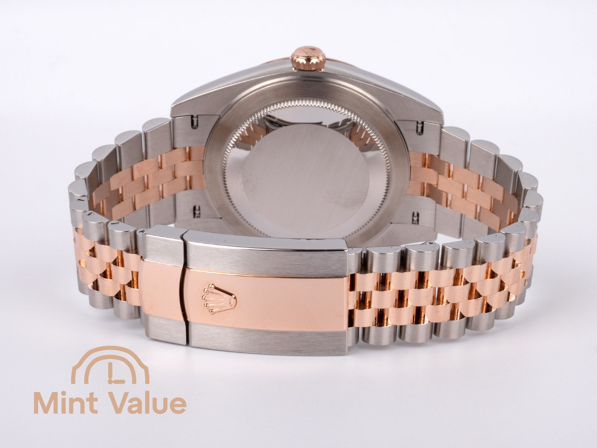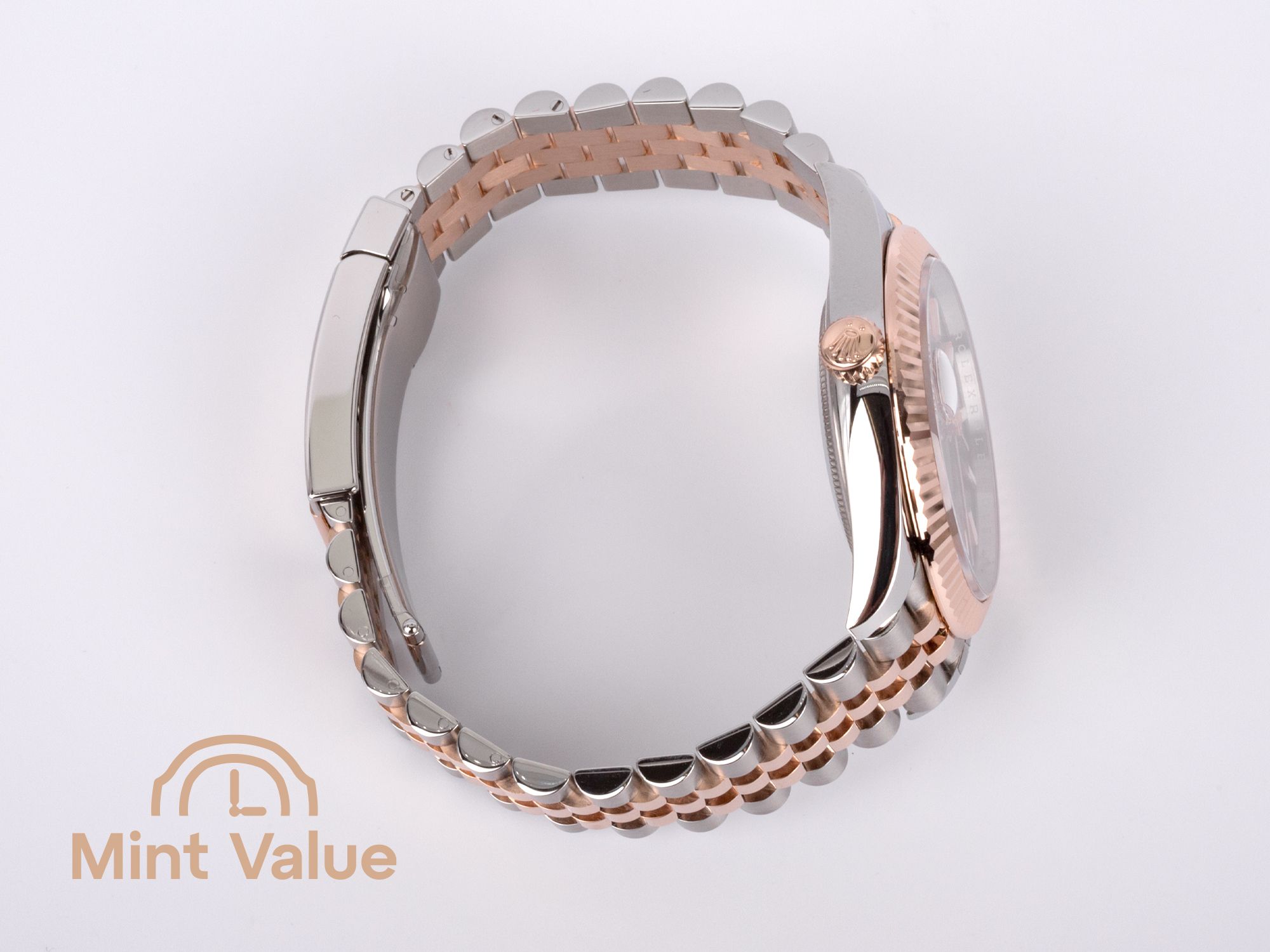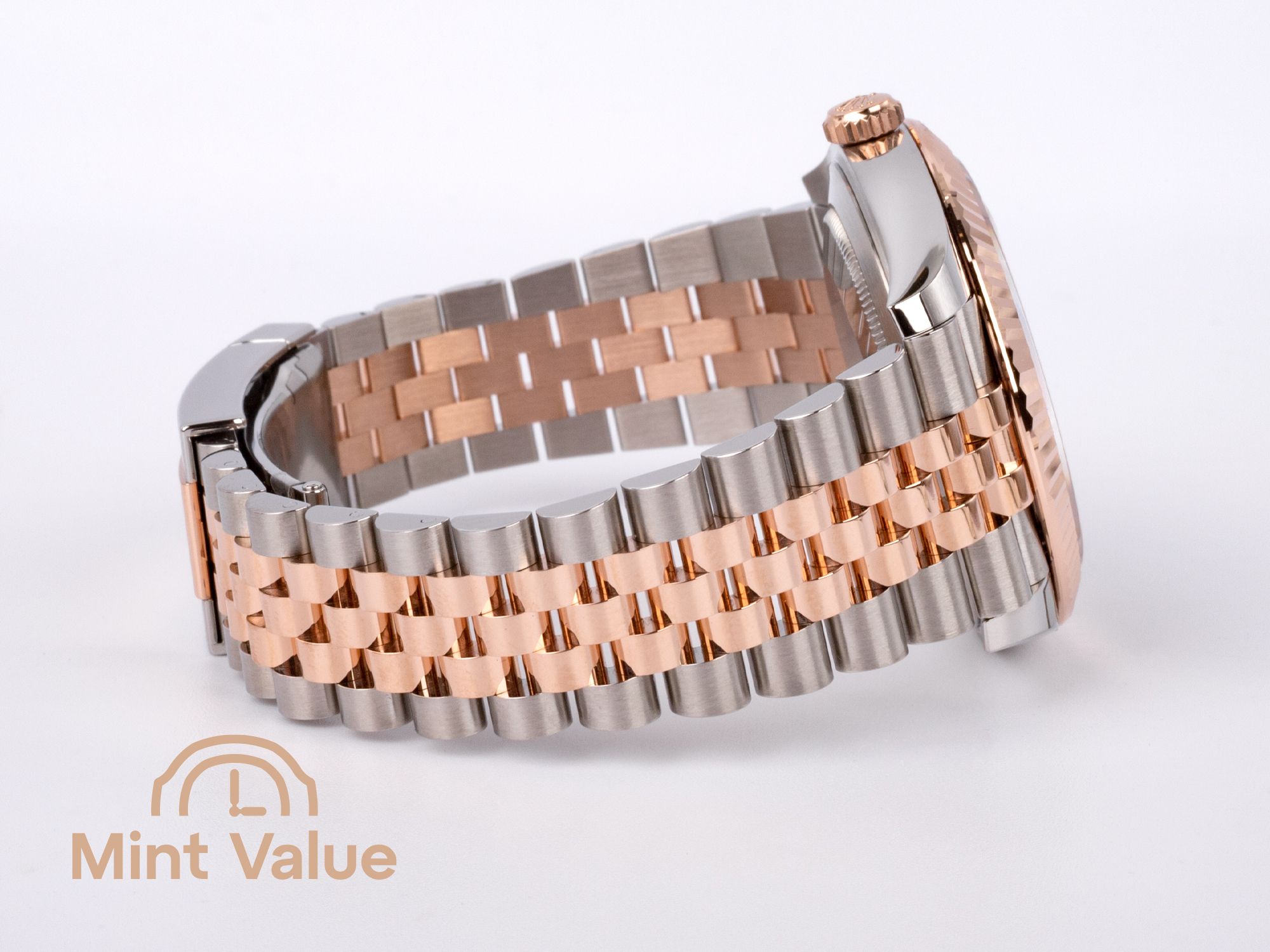 in Everose Rolesor has become one of the most admired contemporary Datejust configurations. Its chocolate sunburst dial paired with the brilliance of an Everose gold fluted bezel delivers a refined presence that feels unmistakably luxurious without ever being overstated.