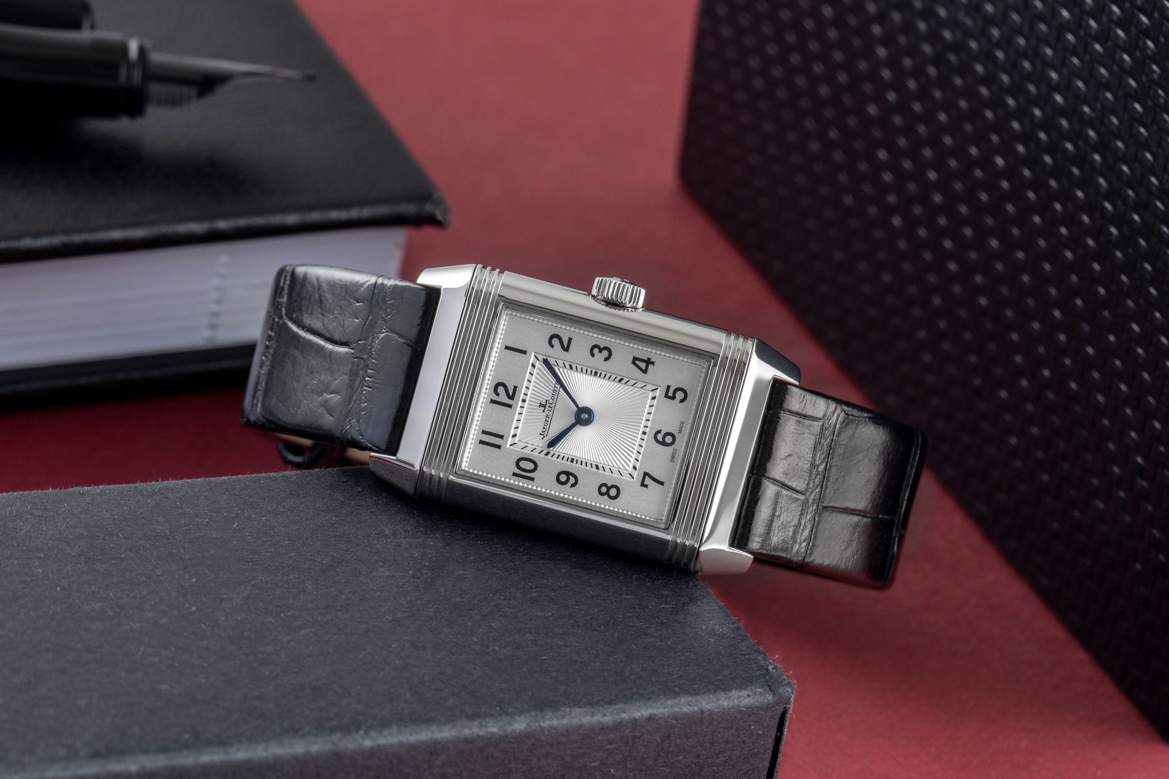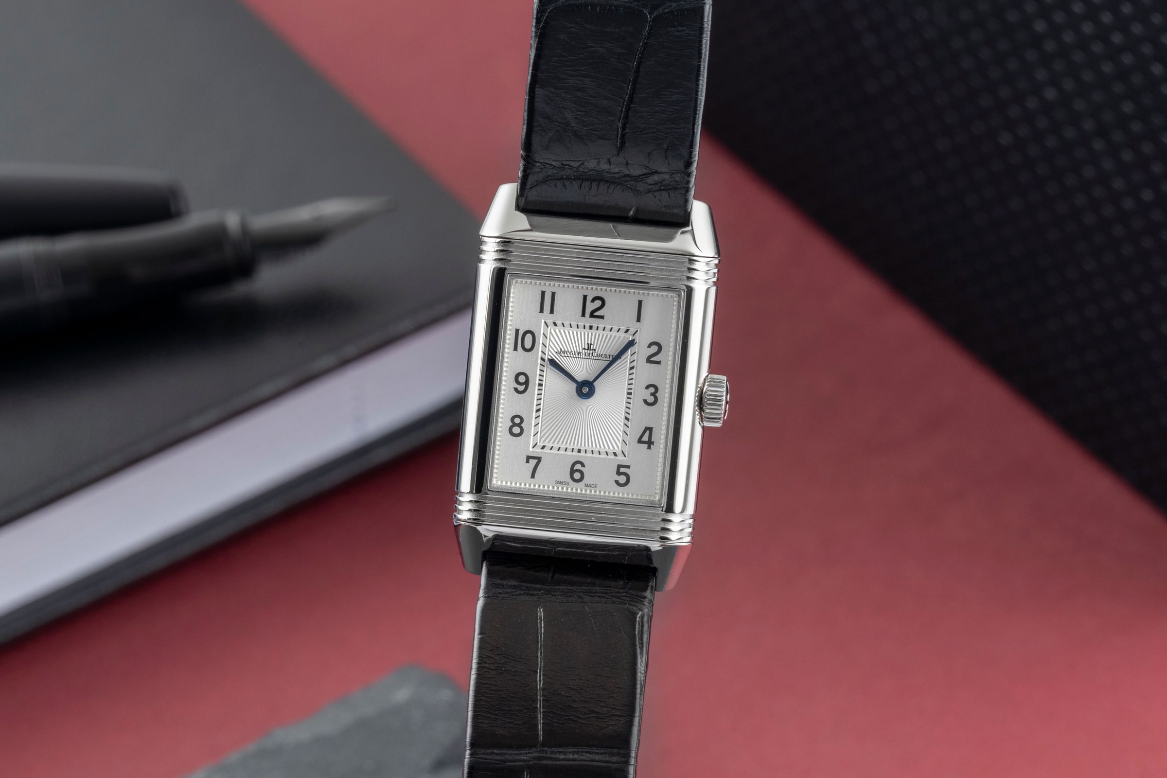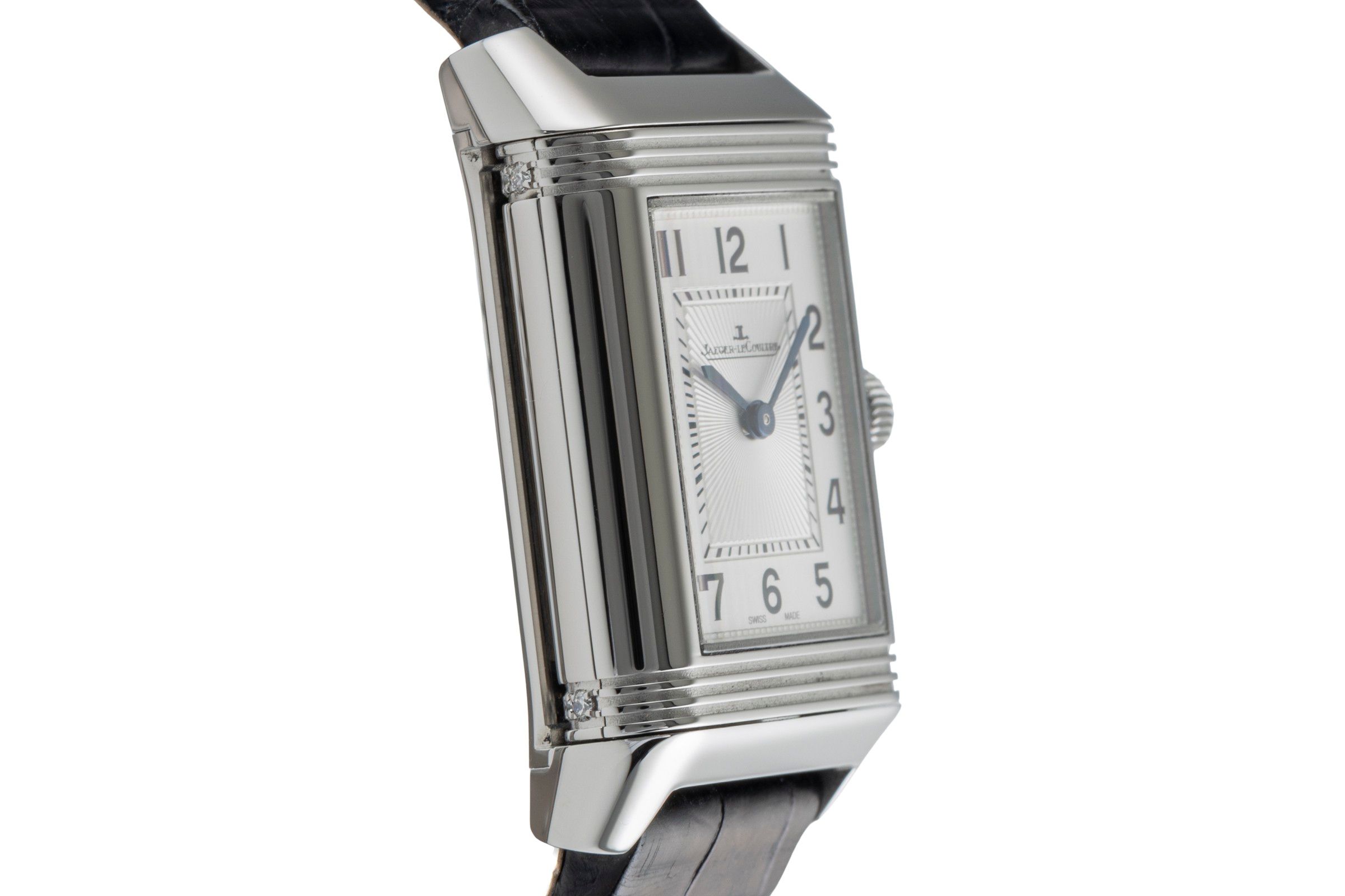 Alternative title: Jaeger-LeCoultre Q2668430 Reverso Classic Small Duetto Stainless Steel / Silver / Alligator; Jaeger LeCoultre Reverso Stahl Diamanten Handaufzug Ref. Q2668430 211.8.44 B&P [2504678]