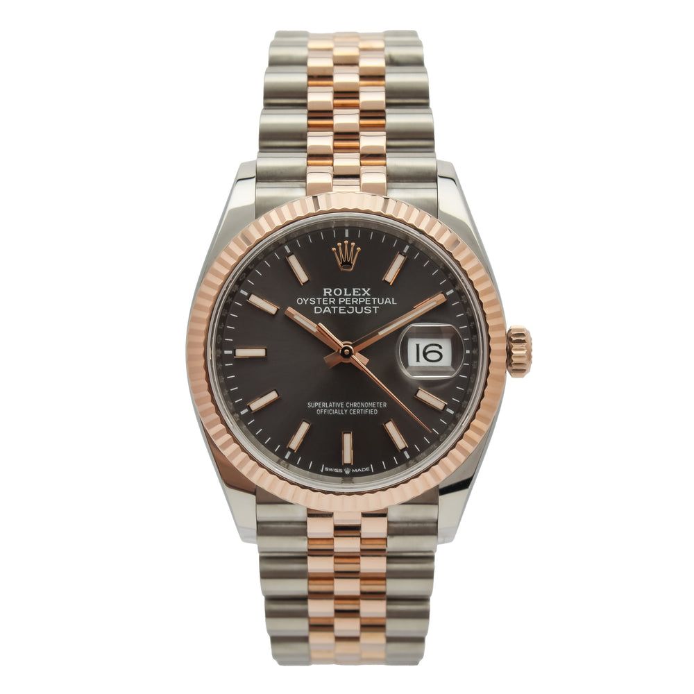 Rolex Datejust 36 Réf. 126231 - État "très bon" - Fullset - LC100 en très bon état. Magnifique cadran gris dans un boîtier en acier avec une lunette en or rose.
