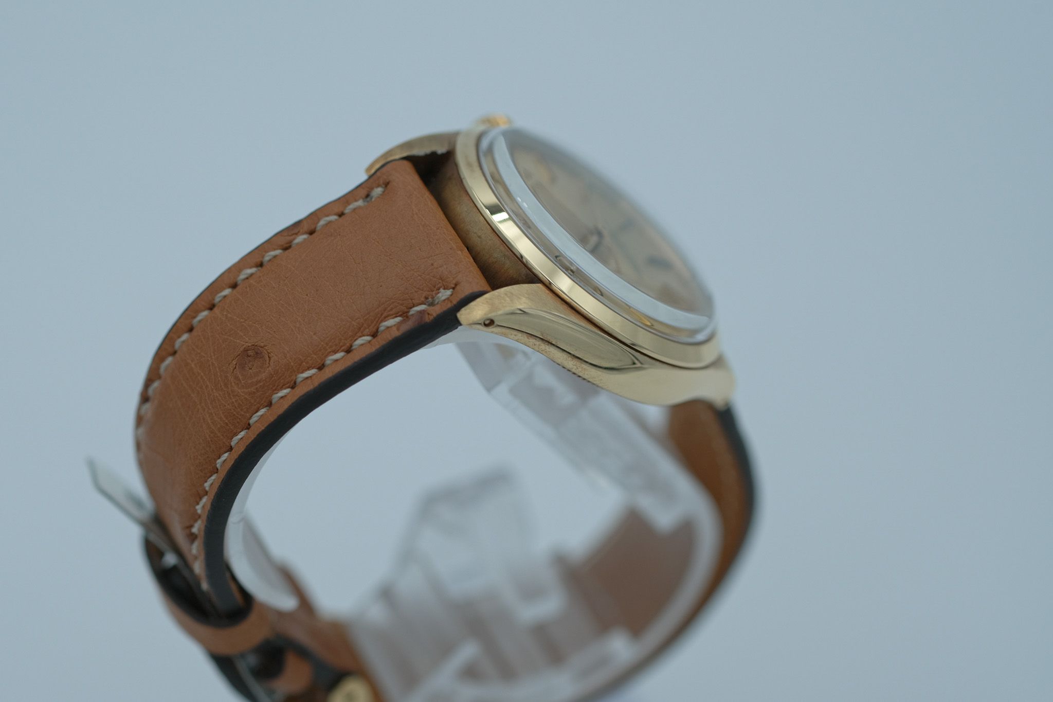 As the watch has not been worn in recent years, the case flanks have developed a beautiful, natural oxidation, giving the gold a warm and honest patina that strongly enhances its vintage character.