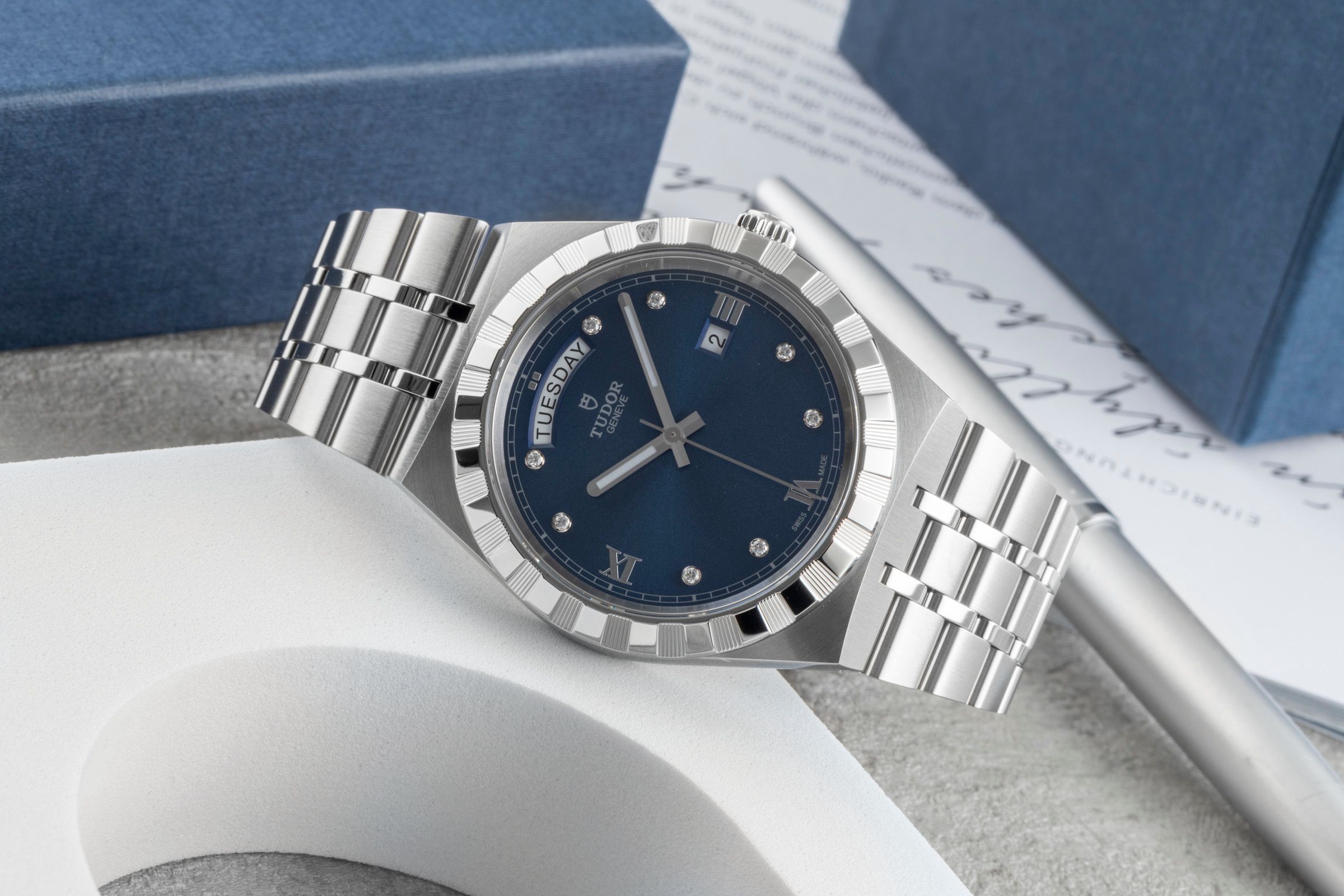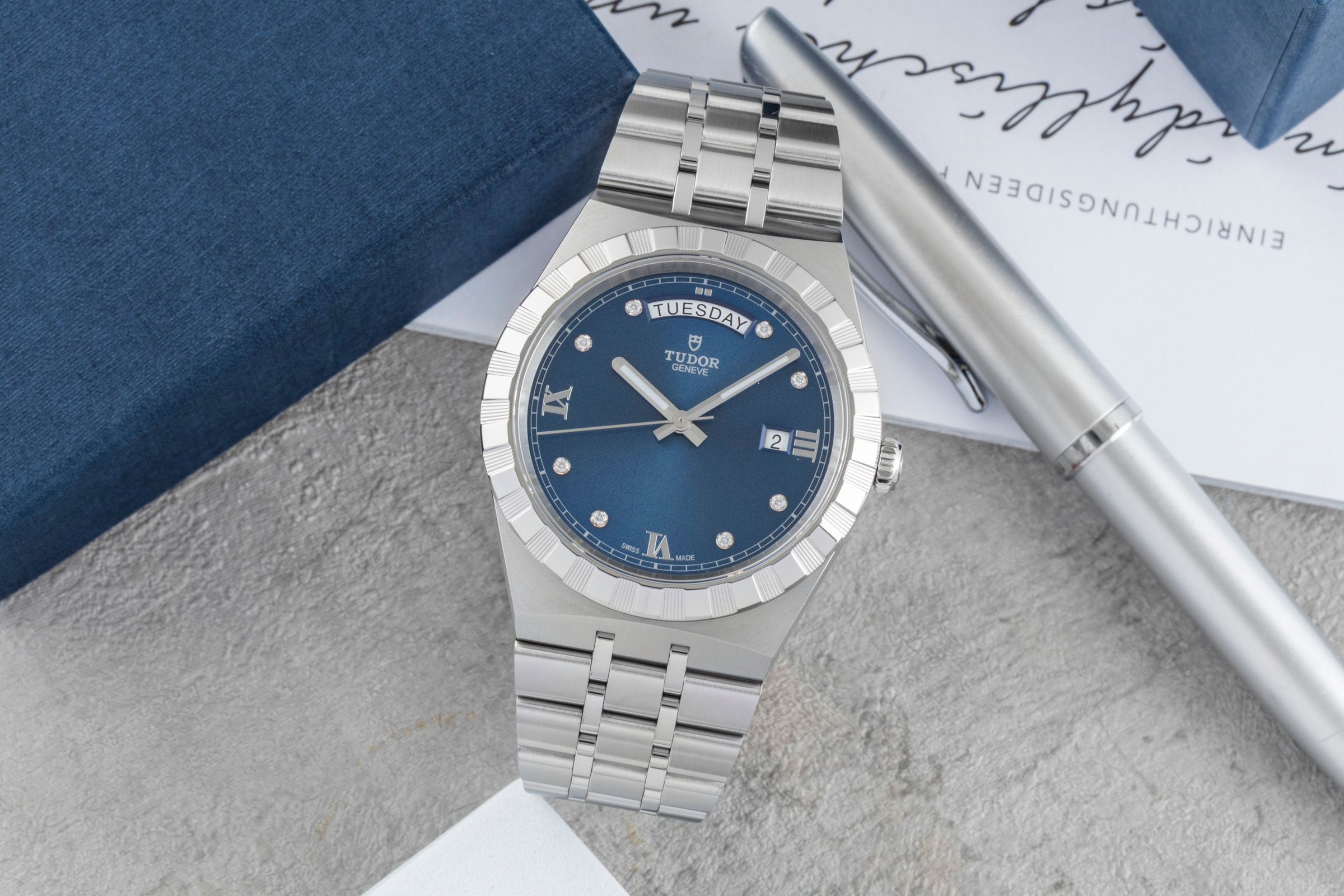 Alternative title: Tudor 28600-0006 Royal Day-Date 41 Stainless Steel / Blue - Diamond; Tudor Royal 41 Automatik Edelstahl Diamonds Herrenuhr Ref. 28600-0006 B&P 2021 [2507187]