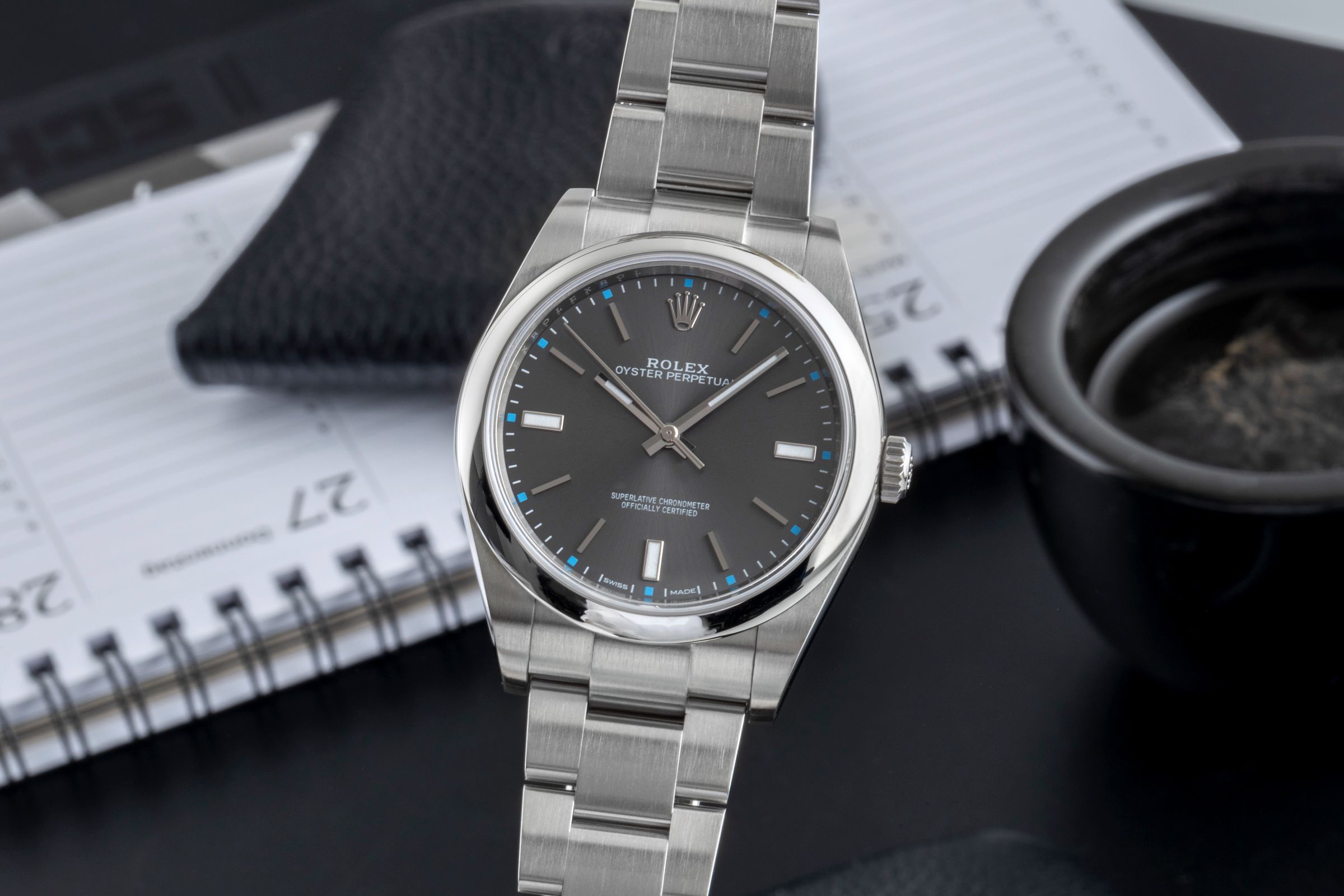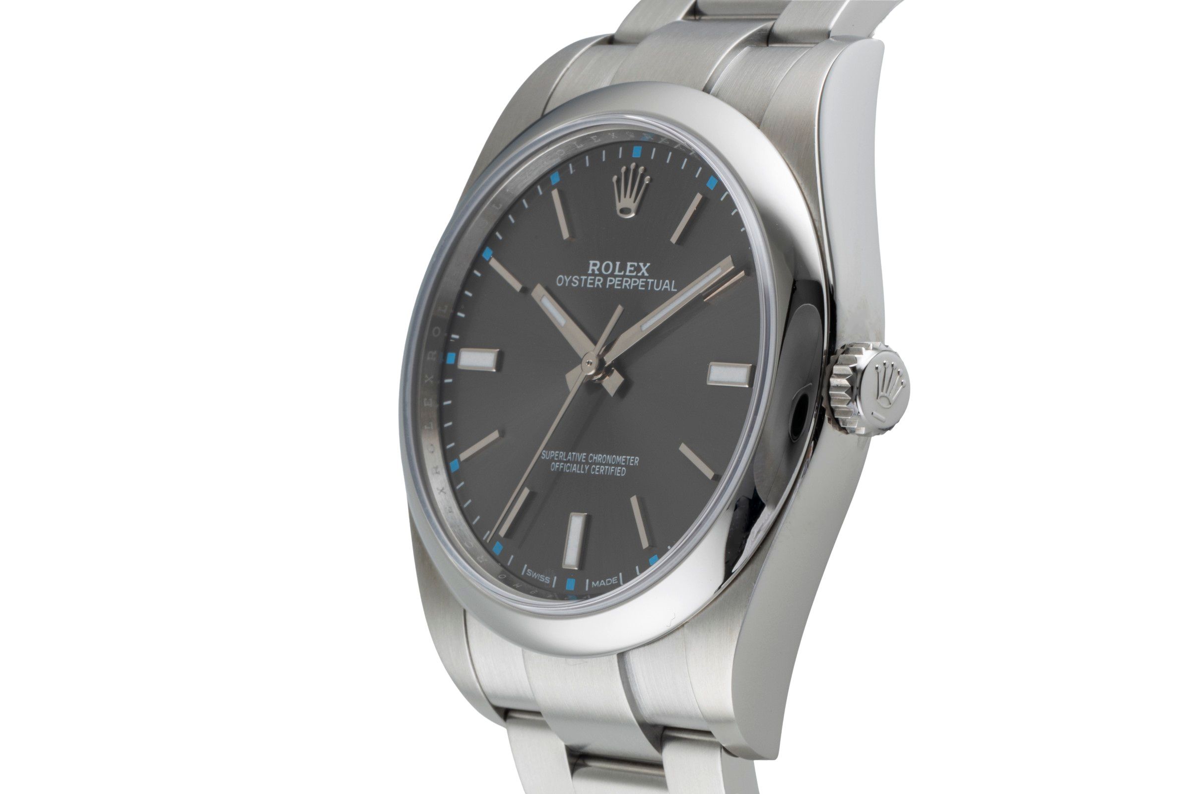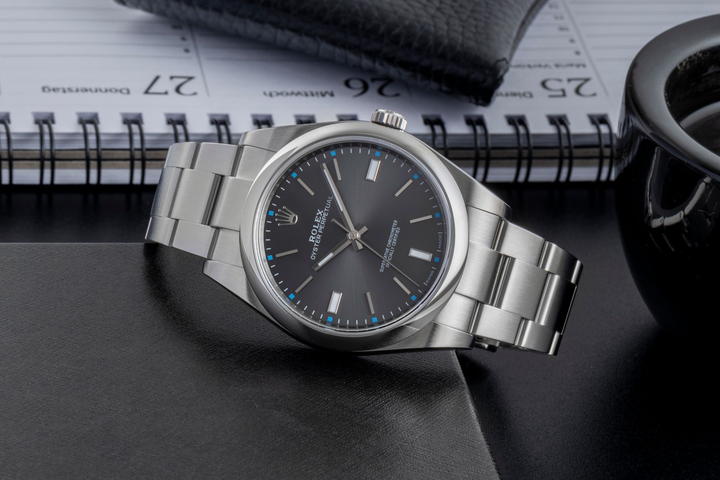 Alternative title: Rolex 114300 - Oyster Perpetual 39; Rolex Oyster Perpetual 39 Grey Dial Automatik Ref. 114300 B&P 2015 [2507088]