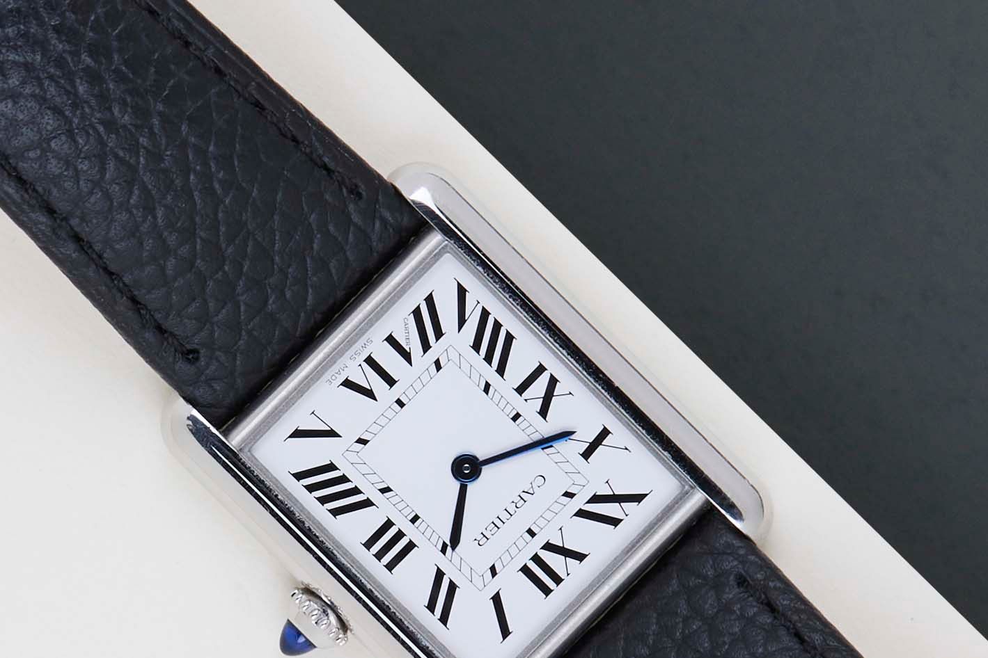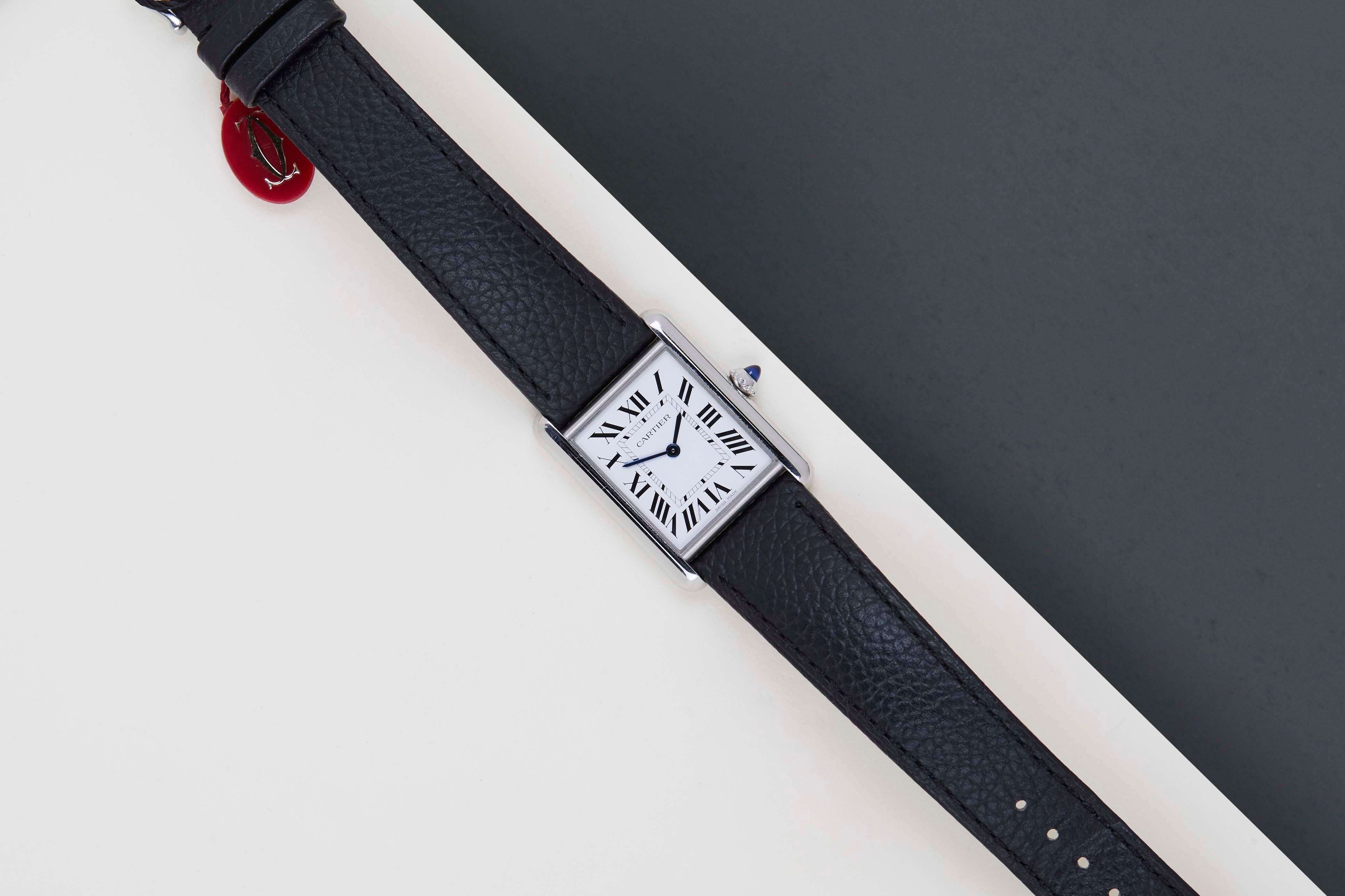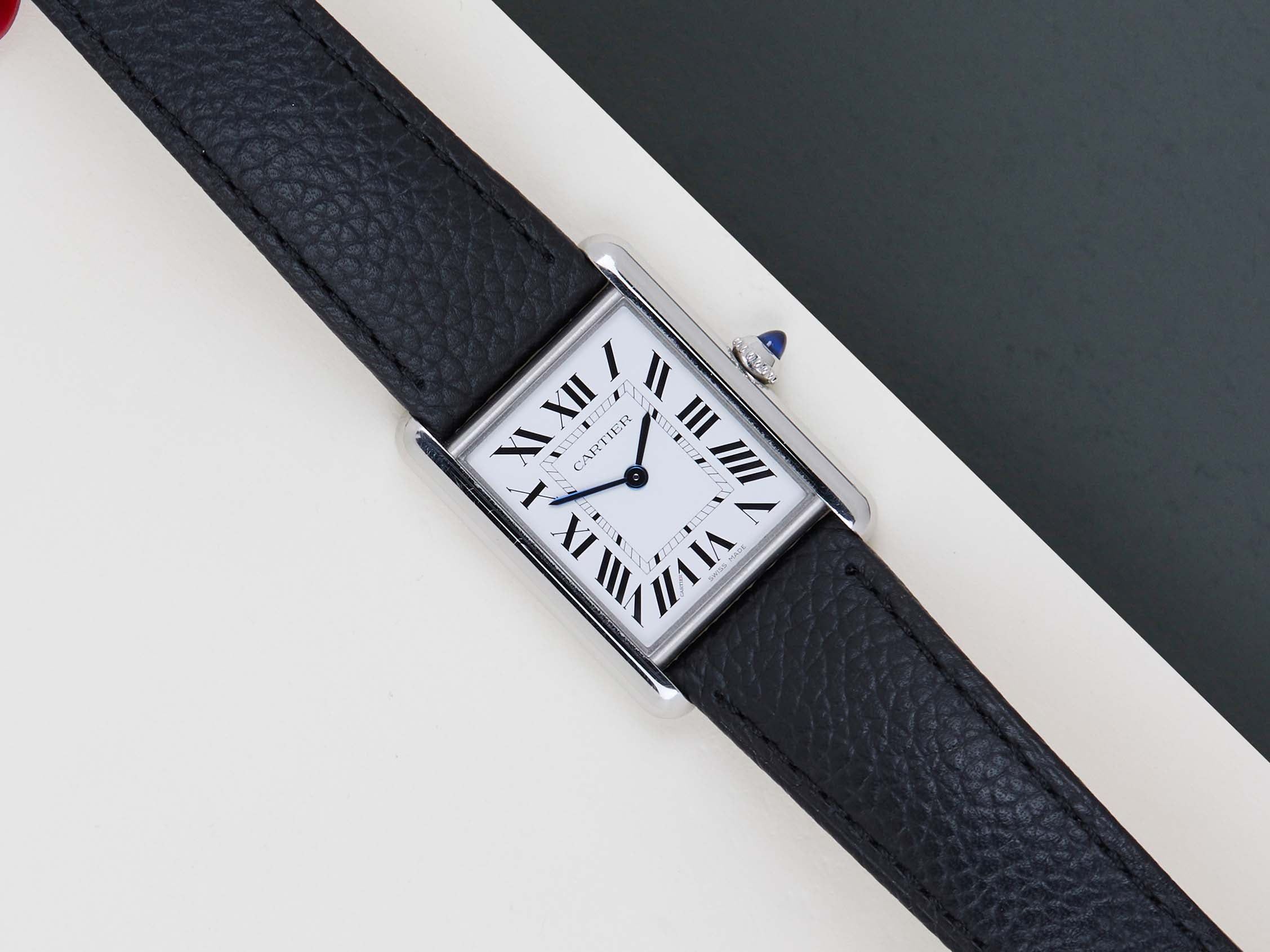 Full Set | International Cartier Warranty Until January 2030 The Cartier Tank Solar Beat is a watch that combines the classic design of the Cartier Tank with modern, solar-powered technology. The watch is powered by a solar cell that converts light into energy, eliminating the need for a battery. It features a stainless steel case and bracelet, a silver-tone dial with blue steel hands, and a scratch-resistant sapphire crystal. The watch is water-resistant up to 30 meters and has a power reserve of approximately 6 months. It also has a date display and is powered by the Eco-Drive movement from Citizen.