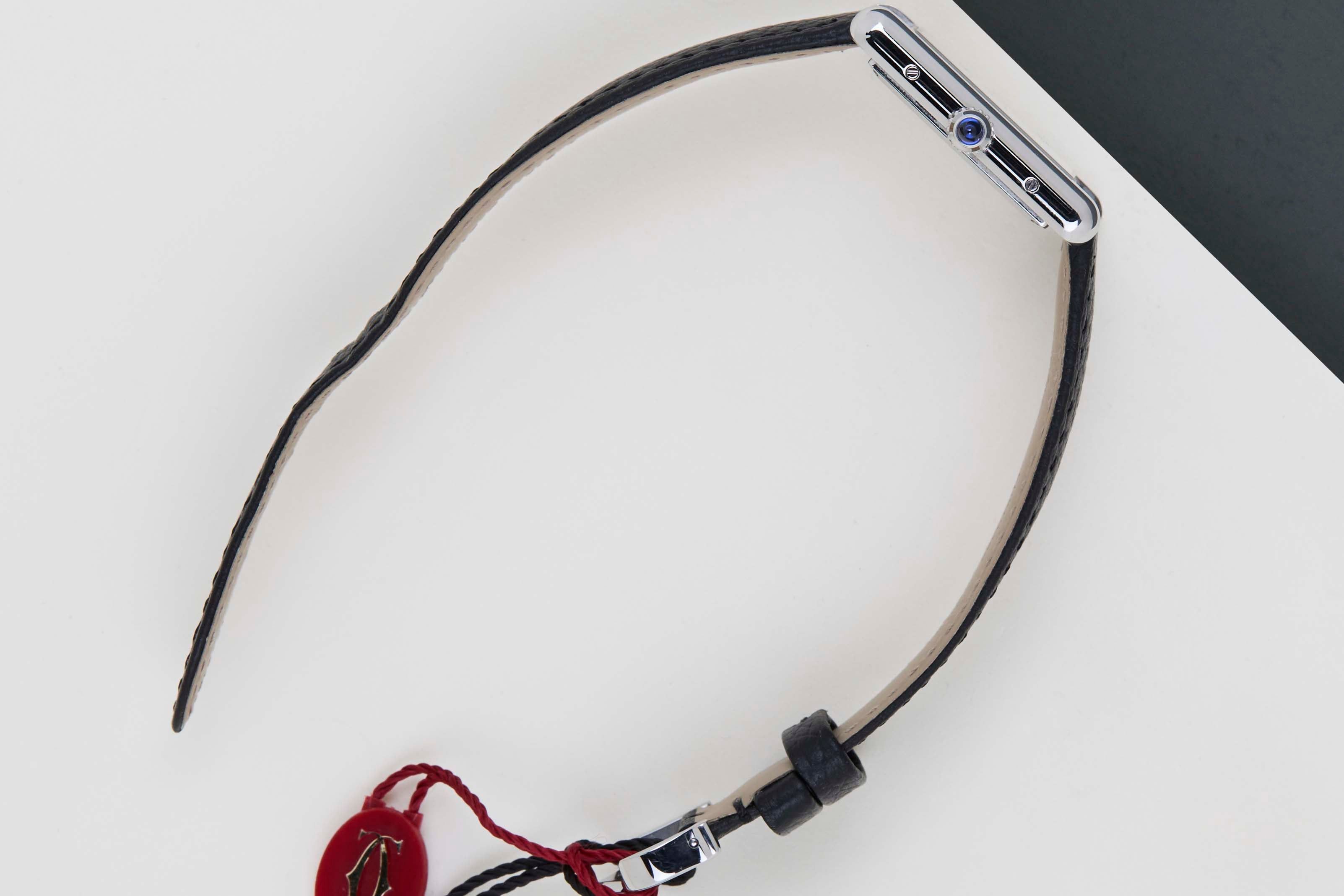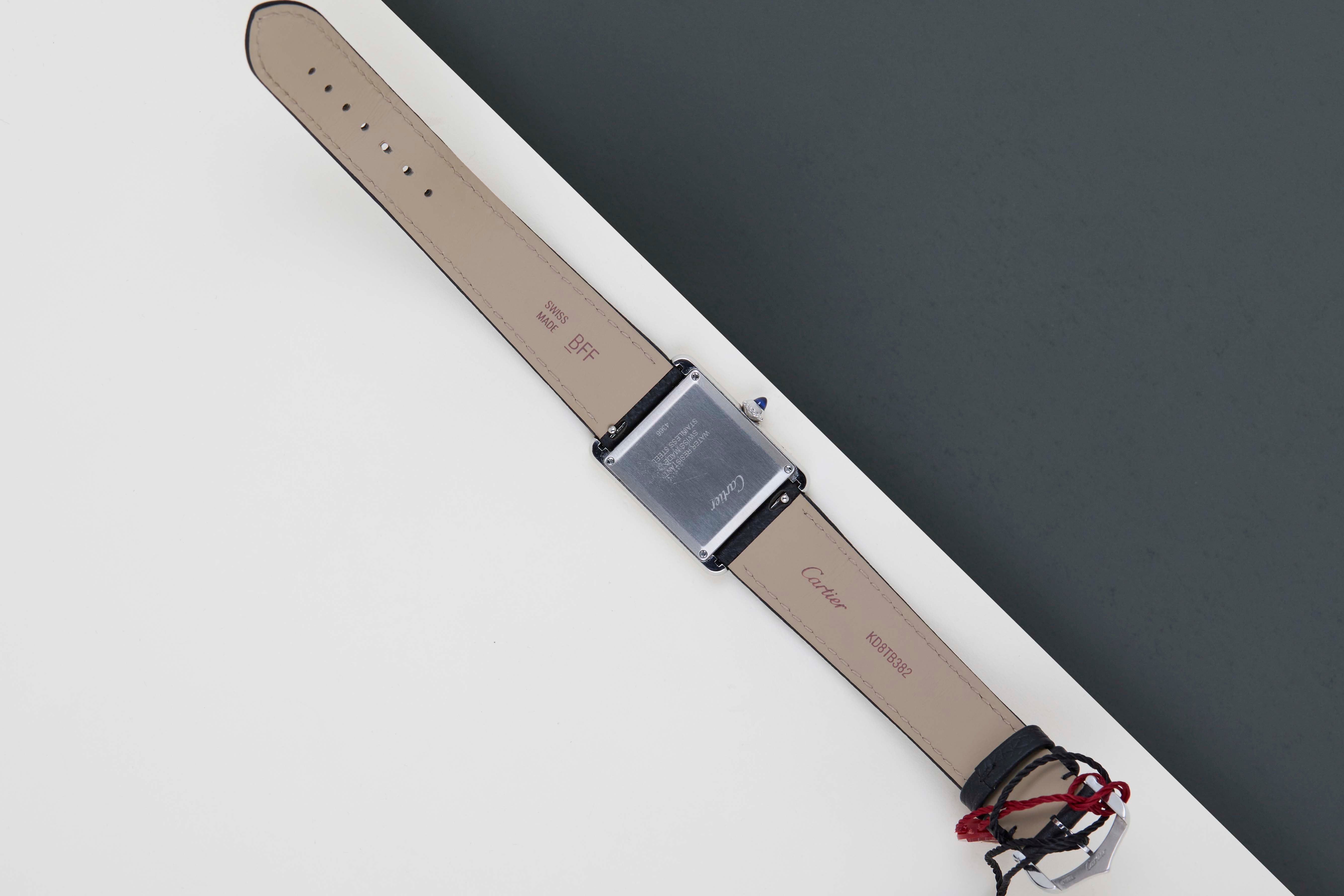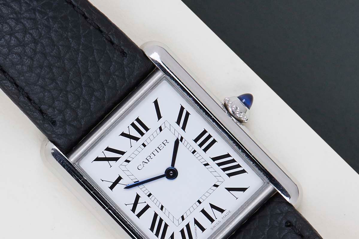 Full Set | International Cartier Warranty Until January 2030 The Cartier Tank Solar Beat is a watch that combines the classic design of the Cartier Tank with modern, solar-powered technology. The watch is powered by a solar cell that converts light into energy, eliminating the need for a battery. It features a stainless steel case and bracelet, a silver-tone dial with blue steel hands, and a scratch-resistant sapphire crystal. The watch is water-resistant up to 30 meters and has a power reserve of approximately 6 months. It also has a date display and is powered by the Eco-Drive movement from Citizen.