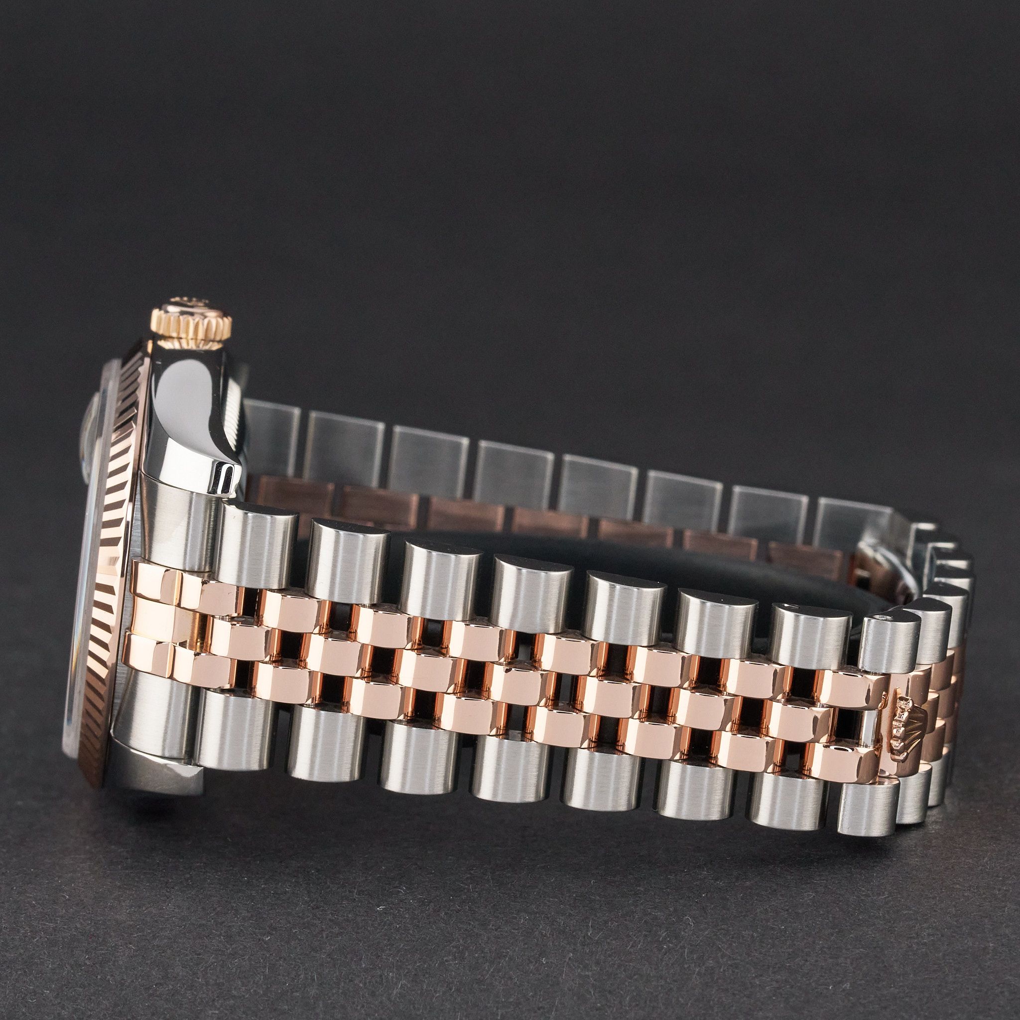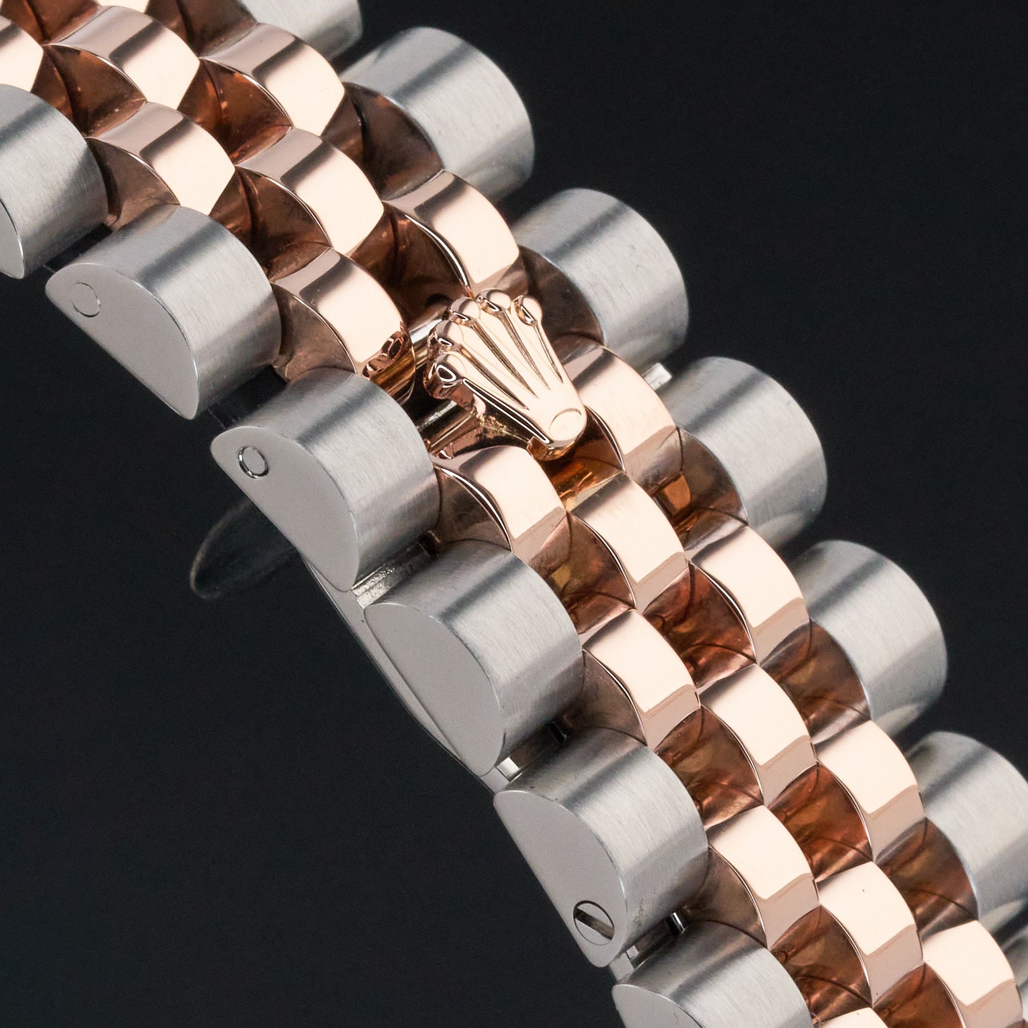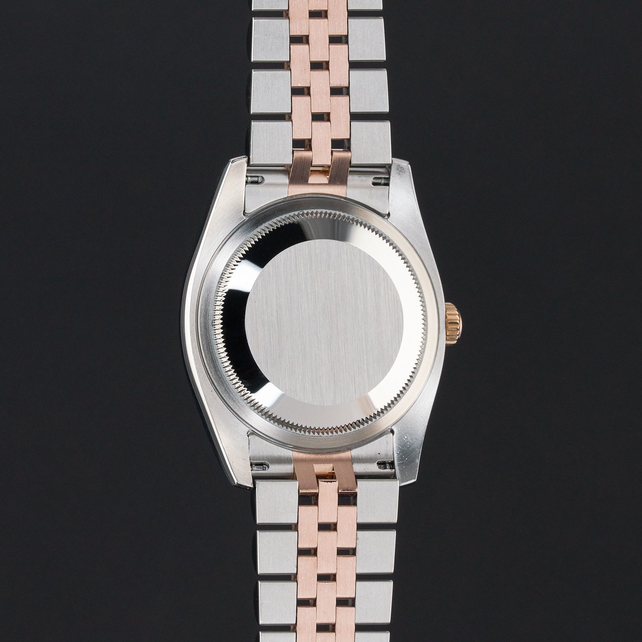 This Rolex Datejust 116231 features a Black concentric Arabic dial and is crafted from 18K rose gold and stainless steel.Case No: D08XXXX