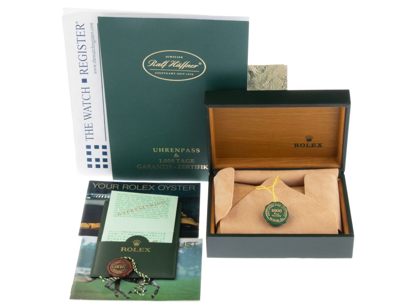 Inklusive certified pre owned Siegel / Uhrenpass mit einem Farbbild, der genauen Beschreibung sowie dem Wiederbeschaffungswert der Uhr über 16200,-€ und 1000 Tage Garantie ab Kaufdatum.