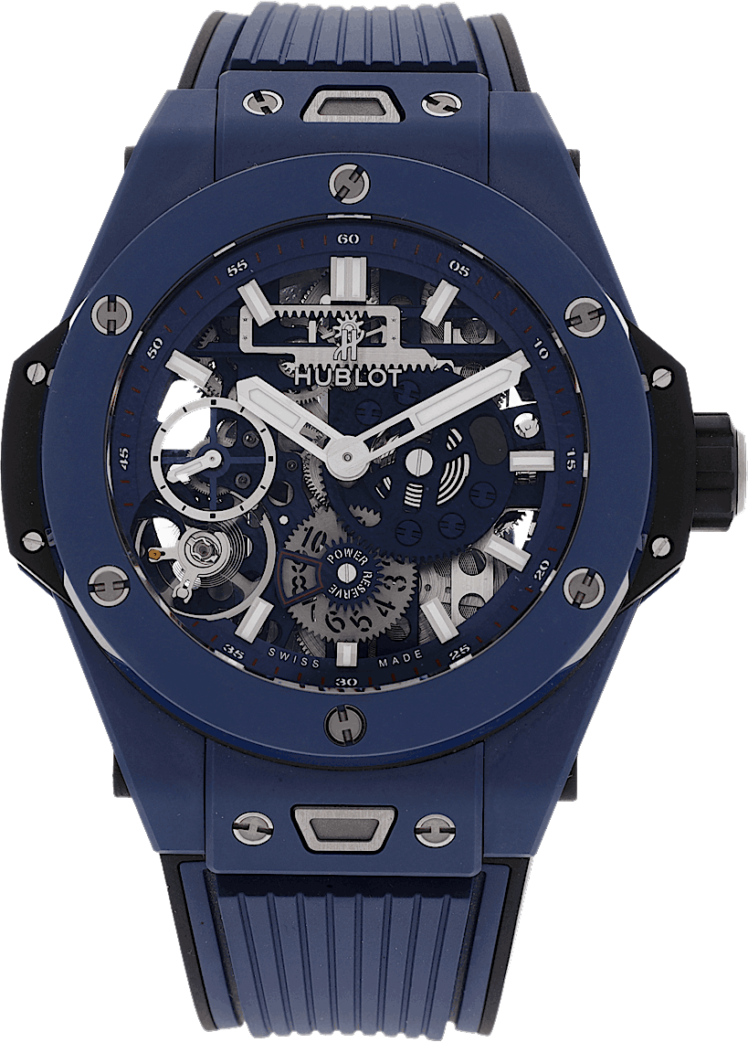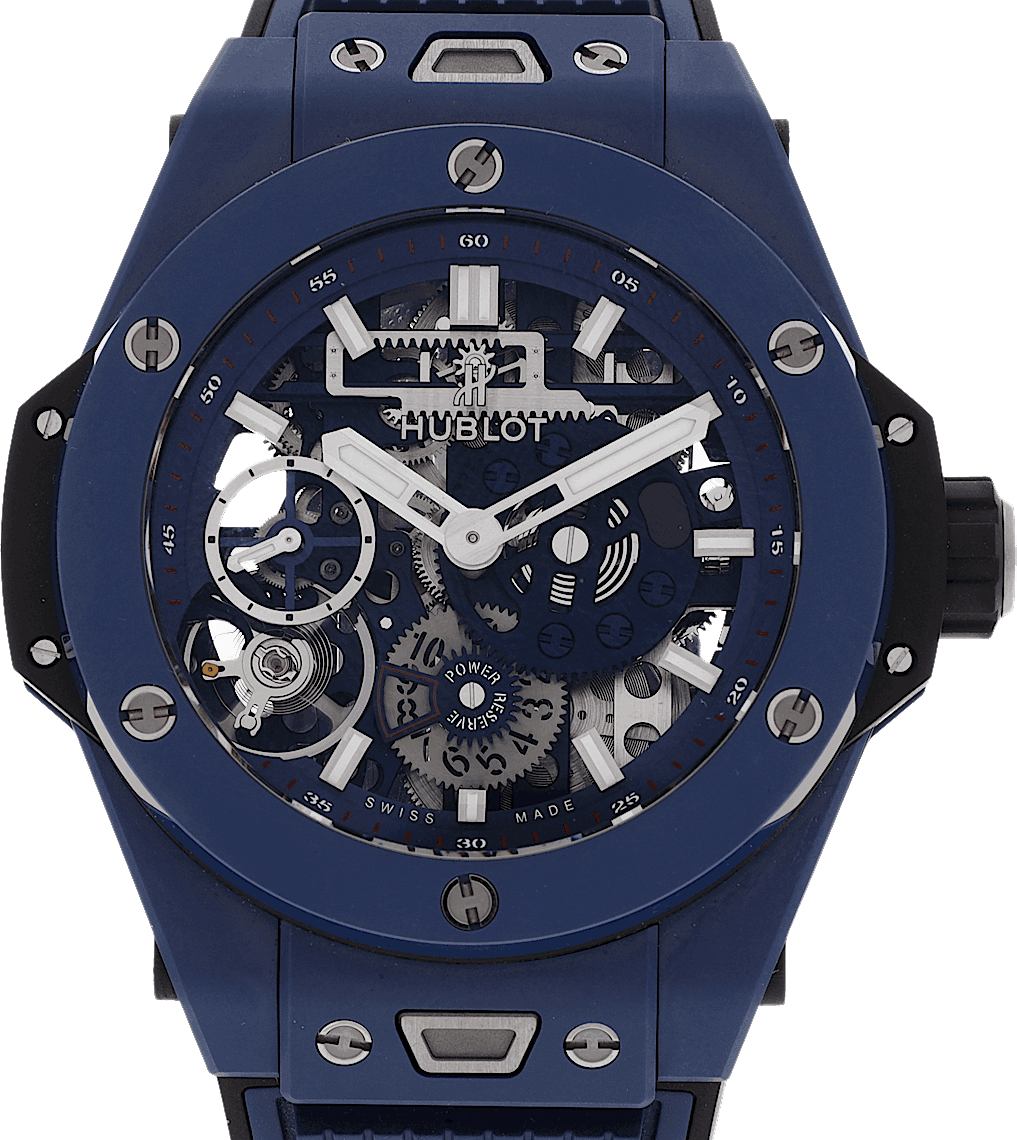 Hublot Big Bang Meca-10 Ceramic Blue, Reference: 414.EX.5123.RX, Gender: Male, Size: 46mm, Dial color: Strap material: Rubber, Movement: Automatic, Year: 2025, Condition: New and unworn. An inspection by our certified watchmakers guarantees authenticity., Documents: Original papers, CHRONEXT Certificate