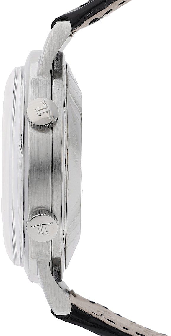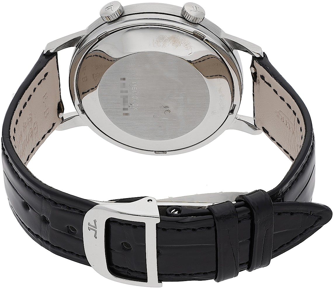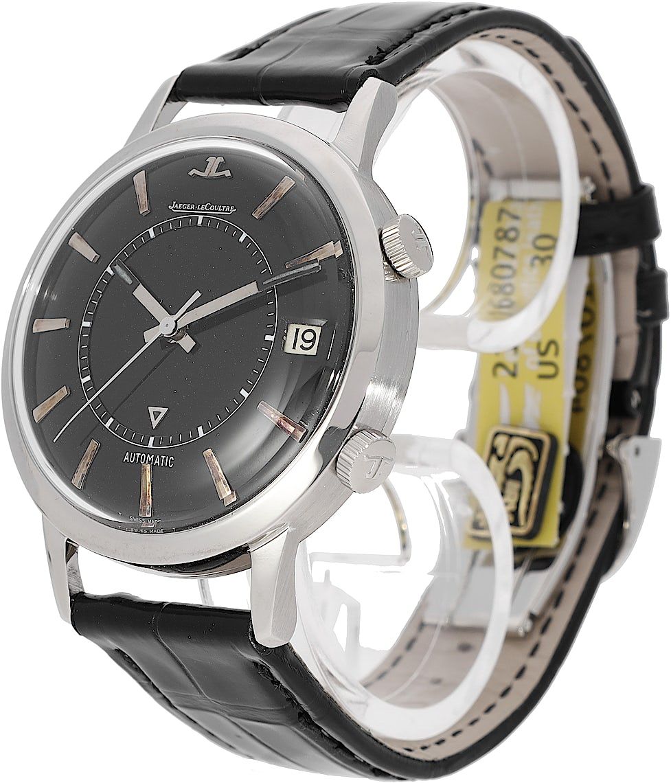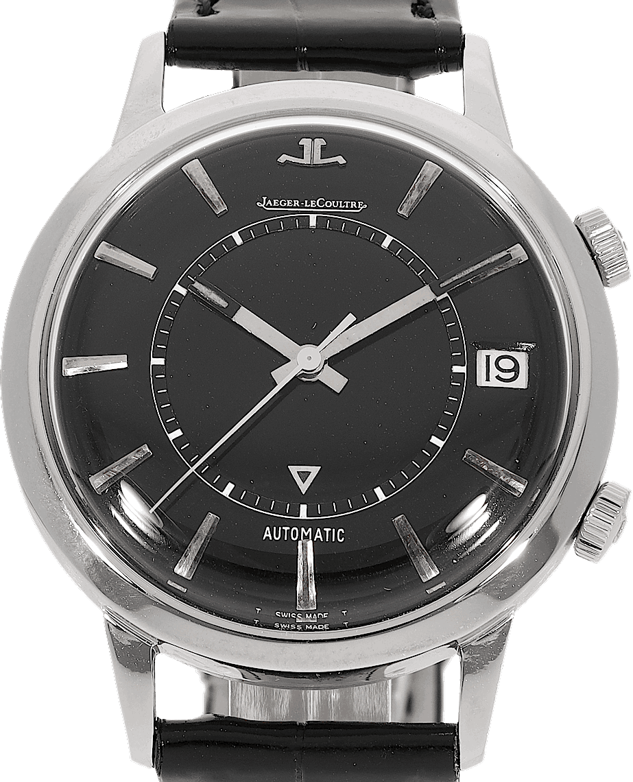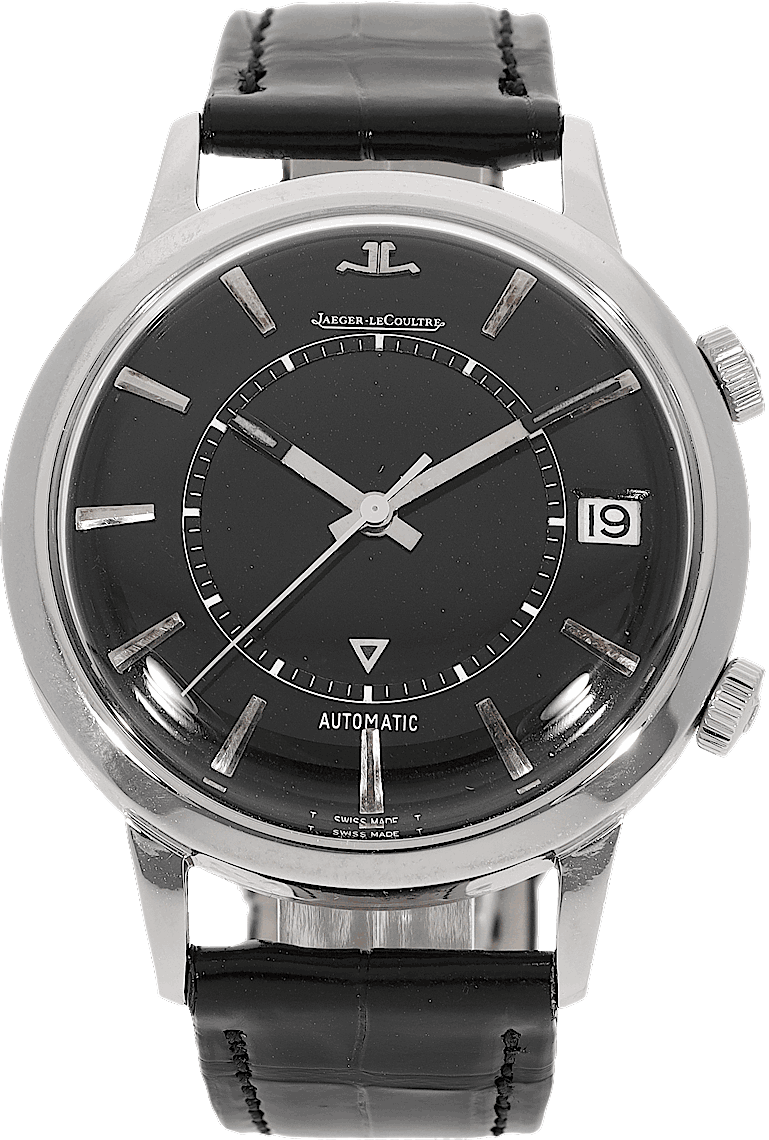 Jaeger-LeCoultre Memovox, Reference: 855, Gender: Unisex, Size: 37.5mm, Dial color: Black, Strap material: Alligator Leather, Movement: Automatic, Condition: Previously worn with some signs of usage. The movement is flawless and the case has been cleaned. watch tested to ensure full functionality. An inspection by our certified watchmakers guarantees its authenticity., Documents: Chronext Certificate