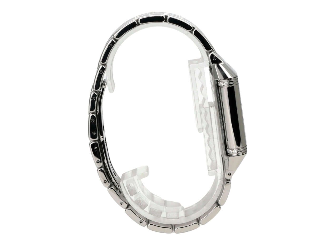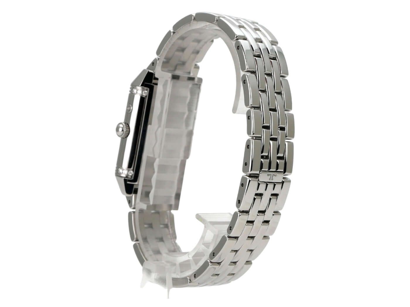 Boîtier en acier inoxydable poli, boîtier d'environ 42 x 25 mm, hauteur du boîtier d'environ 9,5 mm, lunette en acier inoxydable poli, bracelet en acier inoxydable avec fermoir déployant, cadran argenté, mouvement à remontage manuel, calibre Jaeger-LeCoultre 854/1, 21 rubis, 21 600 A/h, réserve de marche d'environ 42 heures, verre saphir, étanche jusqu'à 3 bars.
