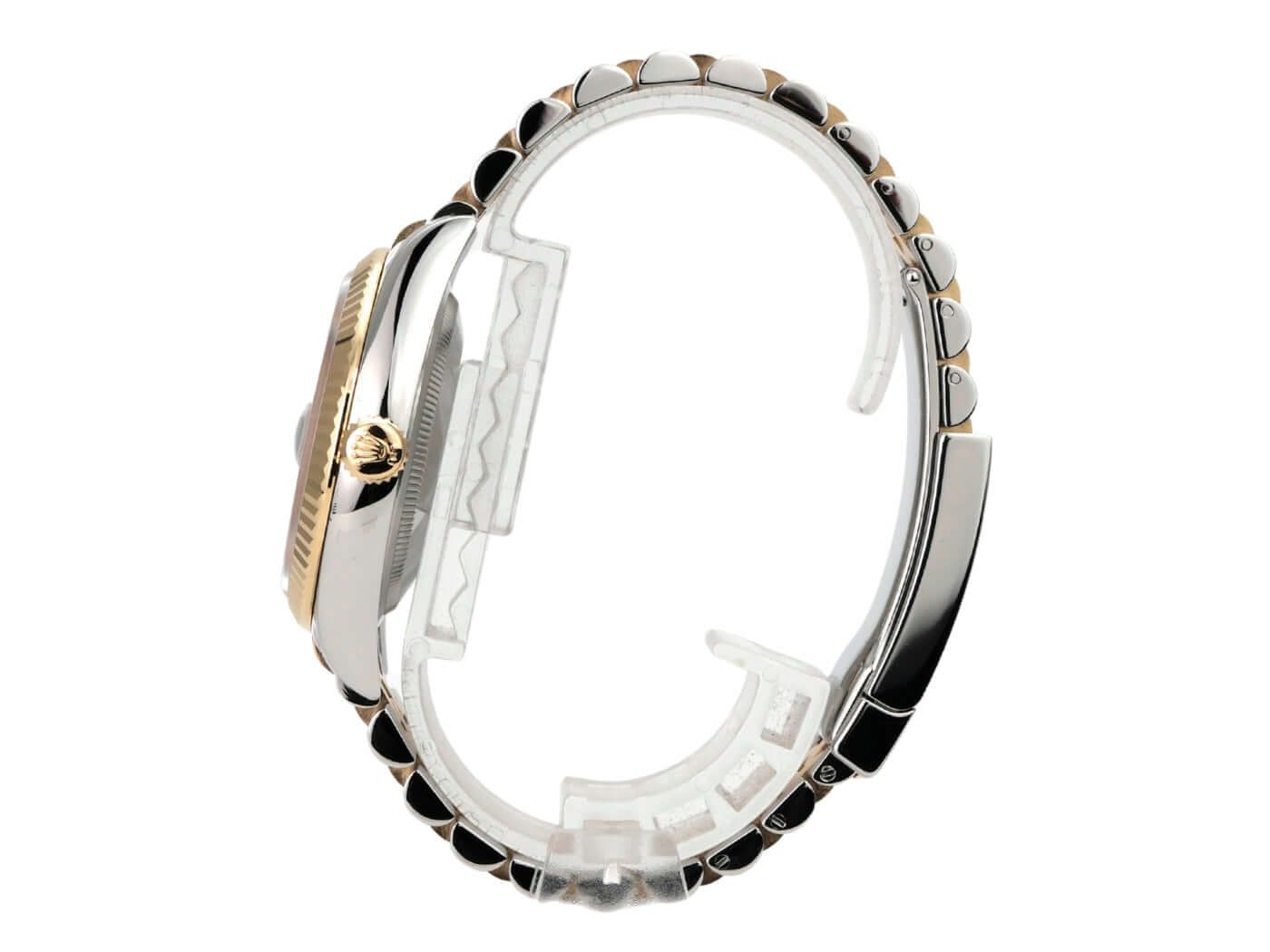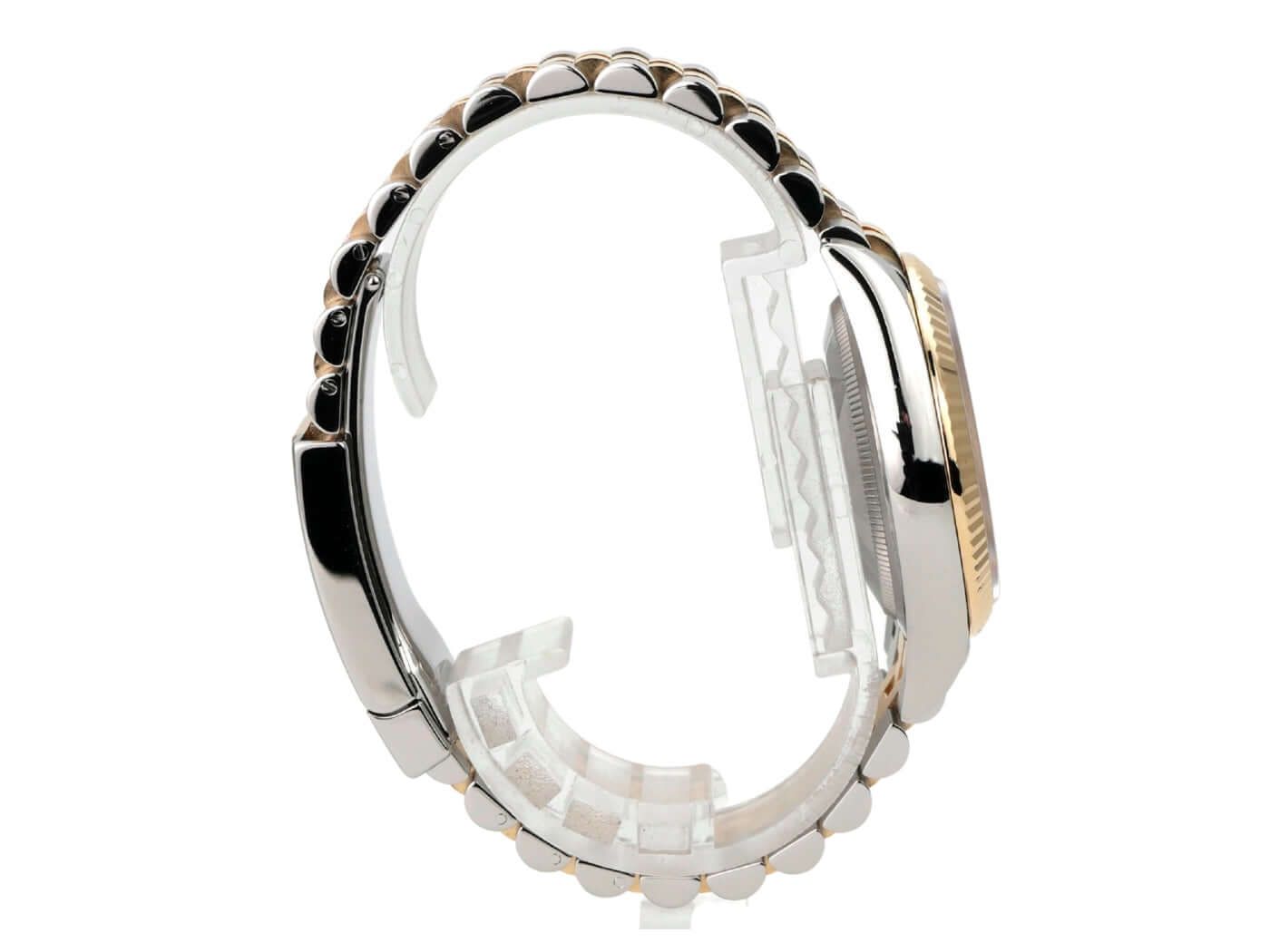 Boîtier en acier inoxydable poli et satinée / or jaune, diamètre du boîtier 36 mm, lunette cannelée en or jaune 18 kt, bracelet Jubilee en acier inoxydable poli et satinée / or jaune 18 kt avec fermoir déployant, cadran en diamant noir, aiguilles en or jaune, mouvement automatique, calibre Rolex 3235 avec 31 rubis, 28 800 A/h, réserve de marche de 70 heures, affichage de la date, chronomètre, verre saphir résistant aux rayures, couronne vissée en or jaune 18 kt, fond de boîtier en acier inoxydable vissé, étanche jusqu'à 10 bars.