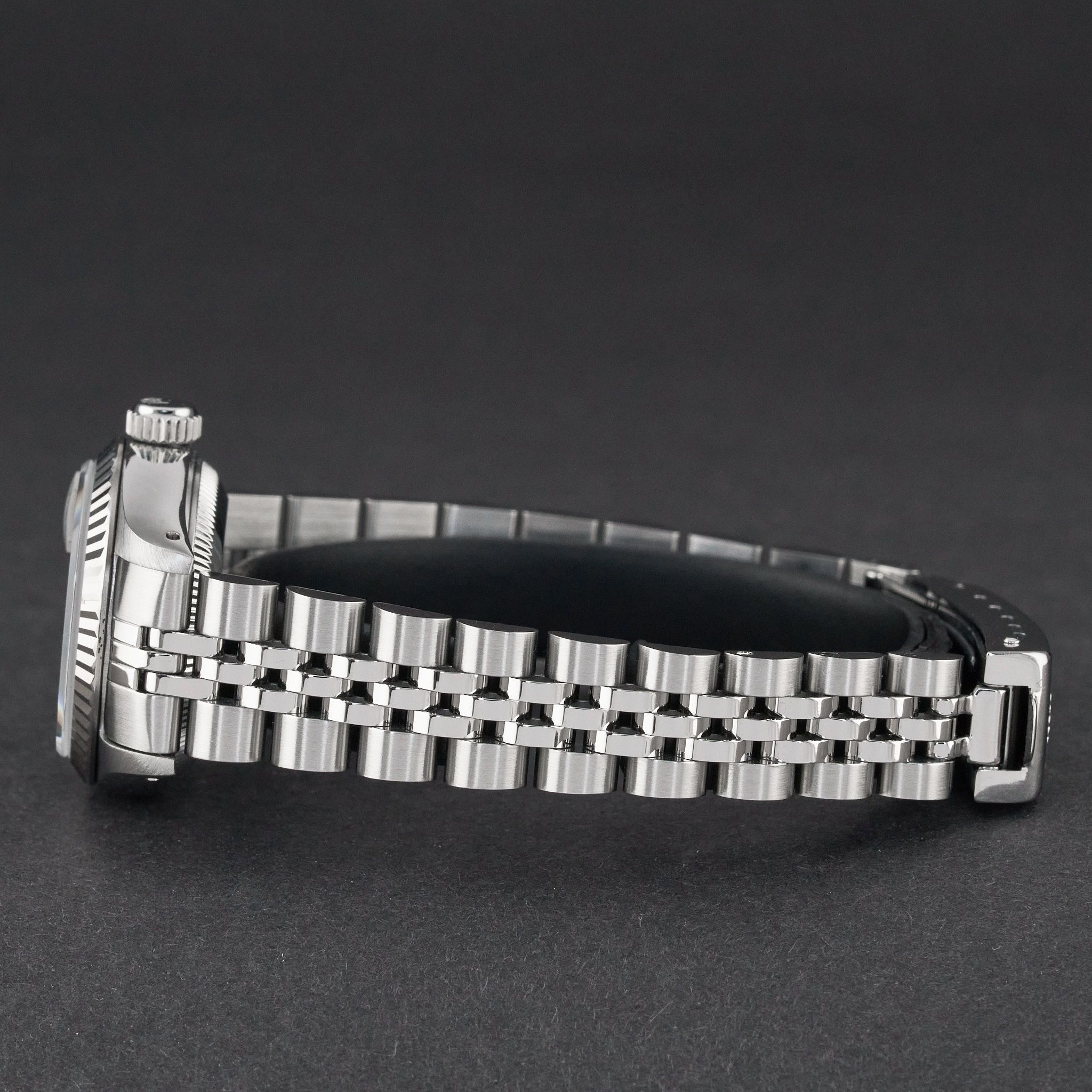 Cette Rolex Lady-Datejust 69174 présente un cadran argenté avec petits diamants et est fabriquée en acier inoxydable, avec une année de production de 1990.