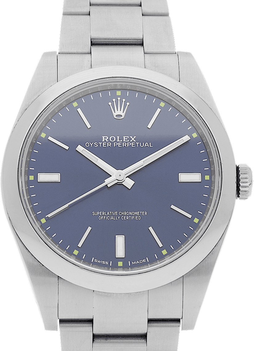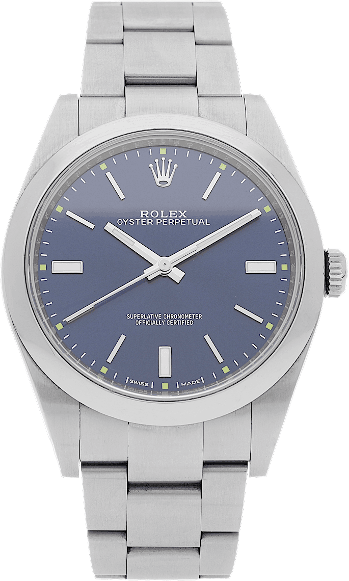 Rolex Oyster Perpetual, Reference: 176200, Gender: Unisex, Size: 39mm, Dial color: Blue, Strap material: Stainless Steel, Movement: Automatic, Year: 2018, Condition: Previously worn with some signs of usage. The movement is flawless and the case has been cleaned. watch tested to ensure full functionality. An inspection by our certified watchmakers guarantees its authenticity., Documents: Original papers, CHRONEXT Certificate