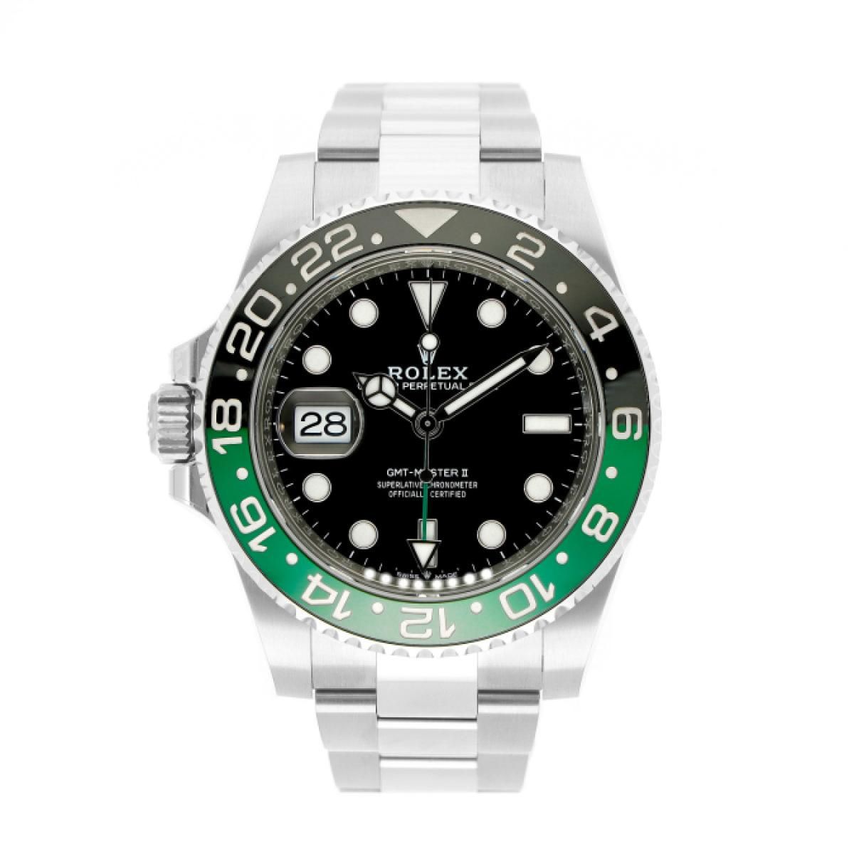 Rolex GMT-Master II de 2025 avec un boîtier en acier inoxydable de 40 mm et un fermoir déployant. Cette montre Rolex pour homme est en état neuf.