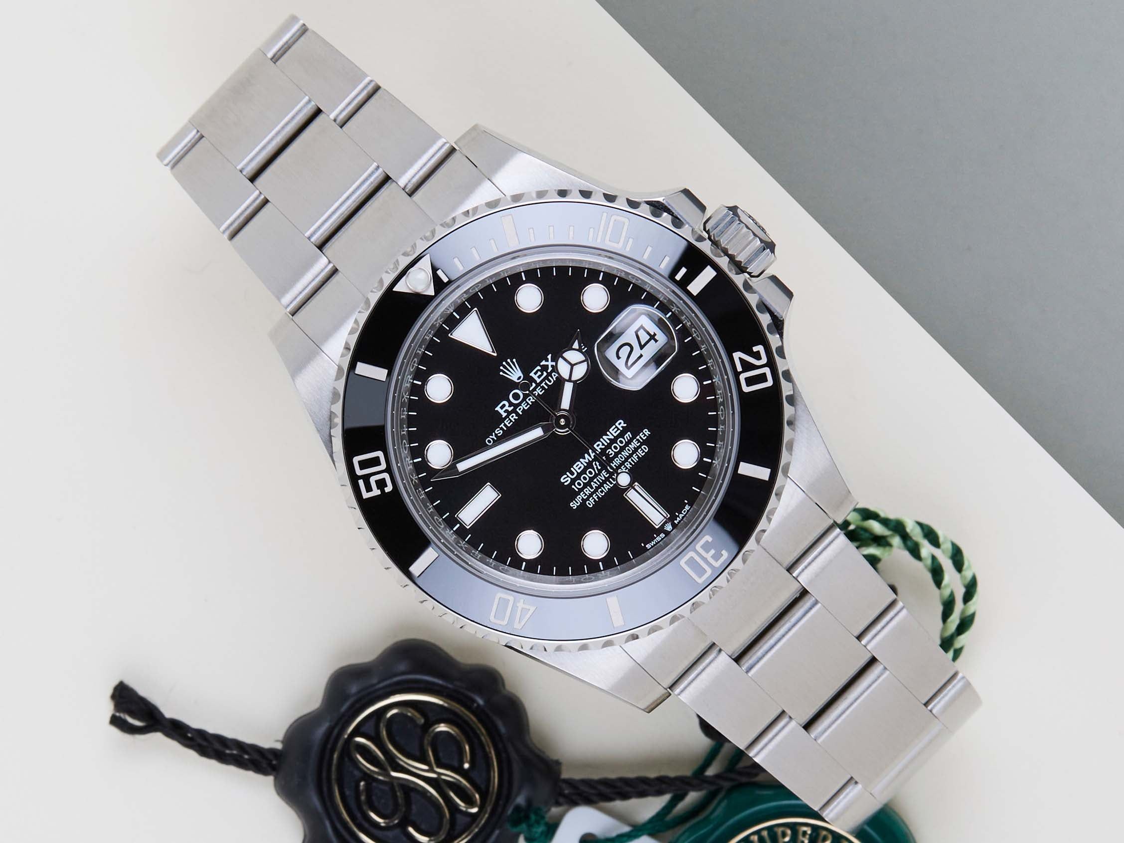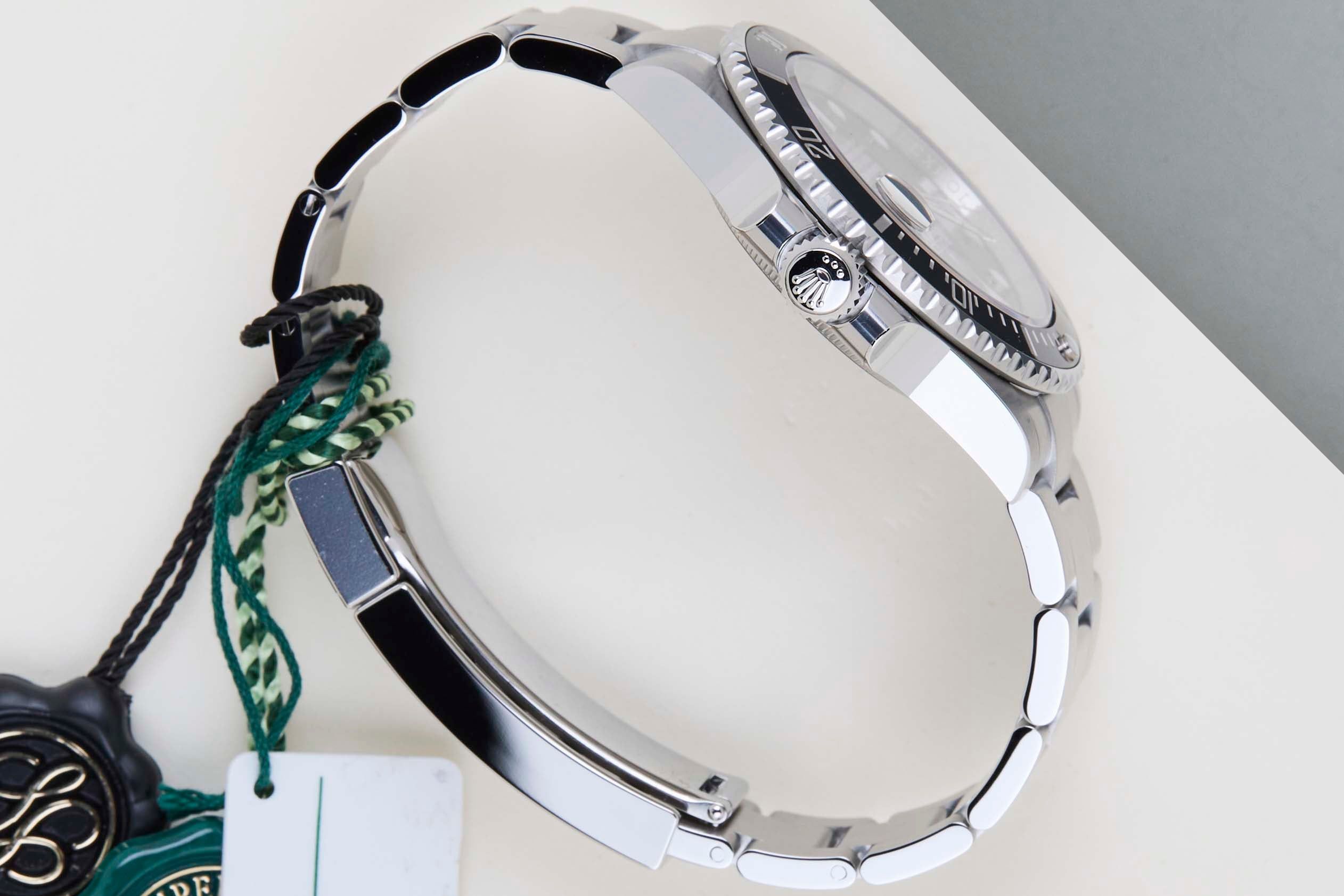 Cette Rolex Submariner Date est Neuve & Non Portée et est livrée avec la carte de garantie Rolex originale et la boîte d'origine. De plus, la montre bénéficie toujours de la garantie internationale Rolex jusqu'en décembre 2030.