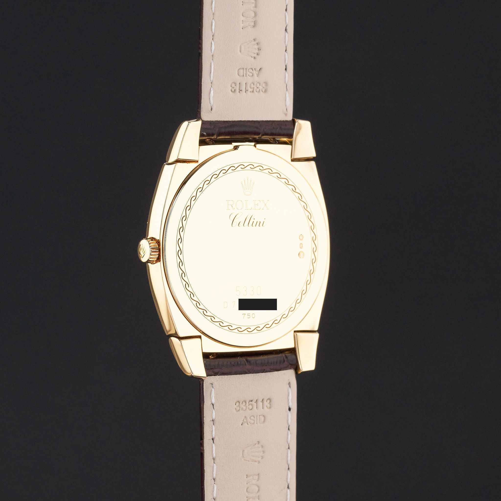 This Rolex Cellini Cestello 5330 features a White Arabic dial and is crafted from 18K yellow gold, with a production year of 2006.Case No: D75XXXX