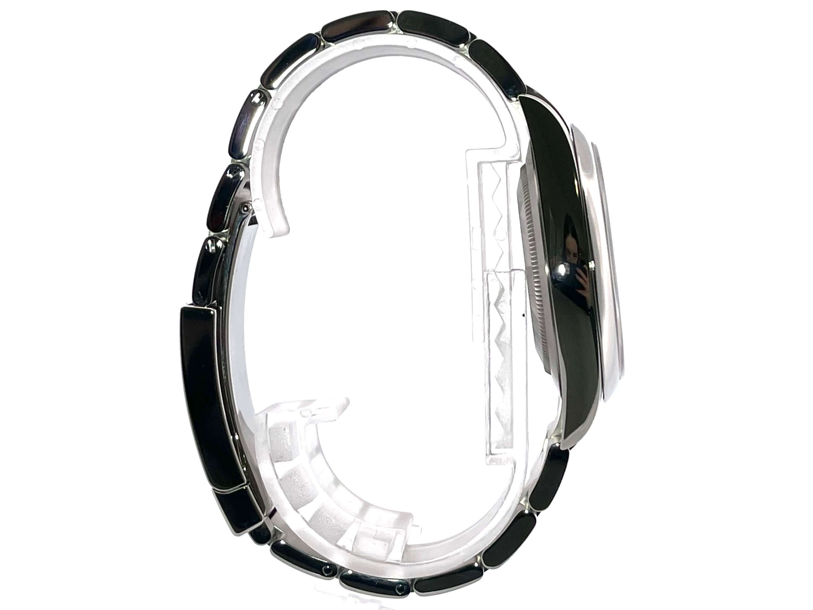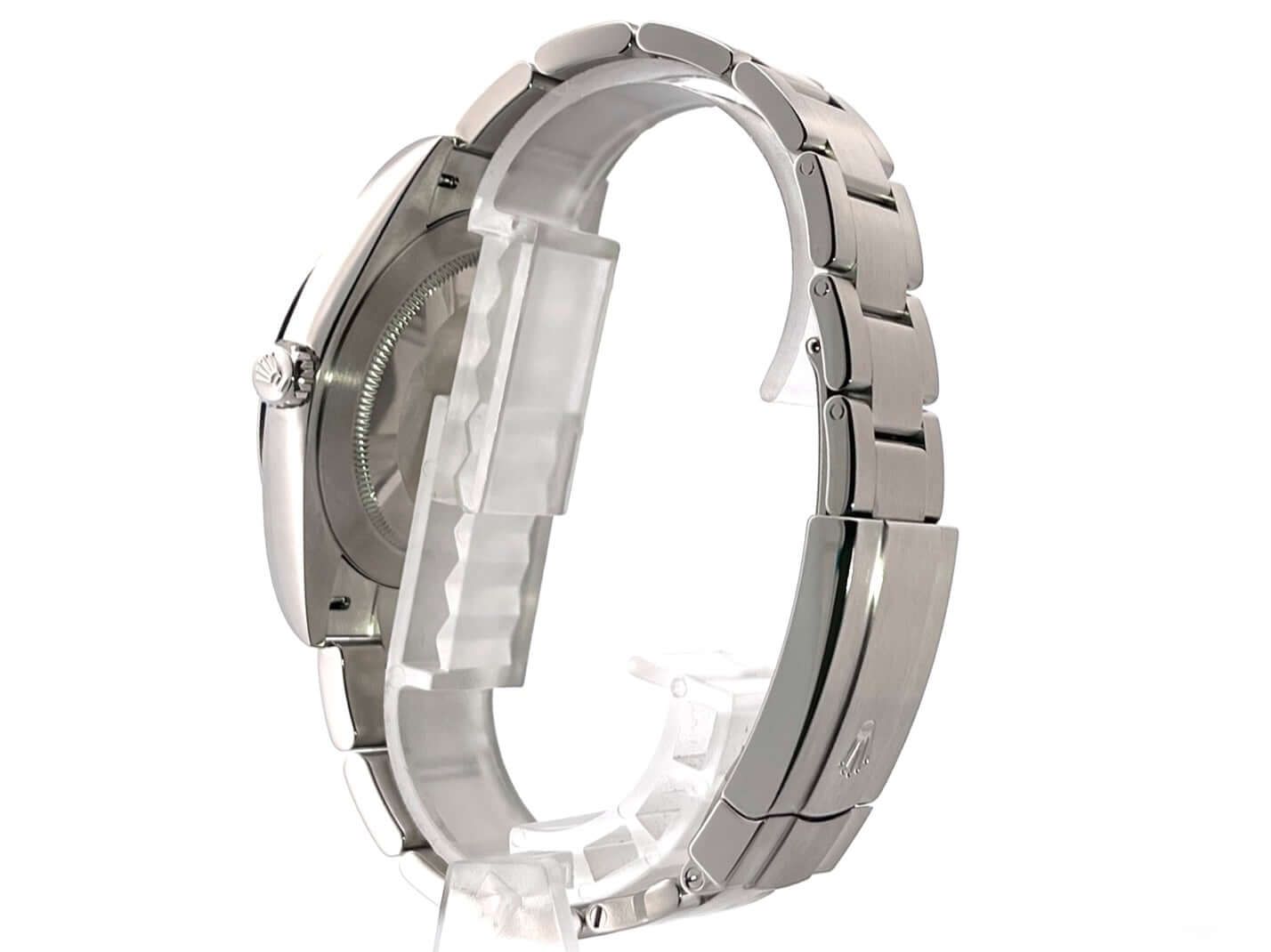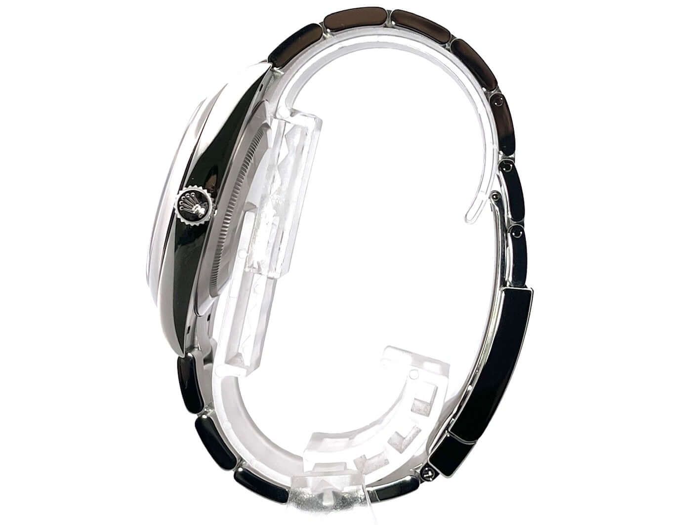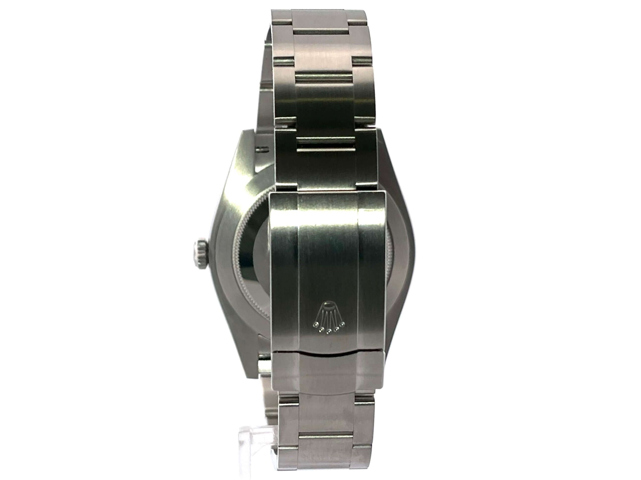 Boîtier en acier inoxydable poli et satiné, diamètre du boîtier 41 mm, bracelet Oyster en acier inoxydable avec fermoir dépliant, cadran noir avec index, automatique, calibre de manufacture Rolex 3230, réserve de marche de 70 heures, verre saphir, étanche jusqu'à 10 bars.
