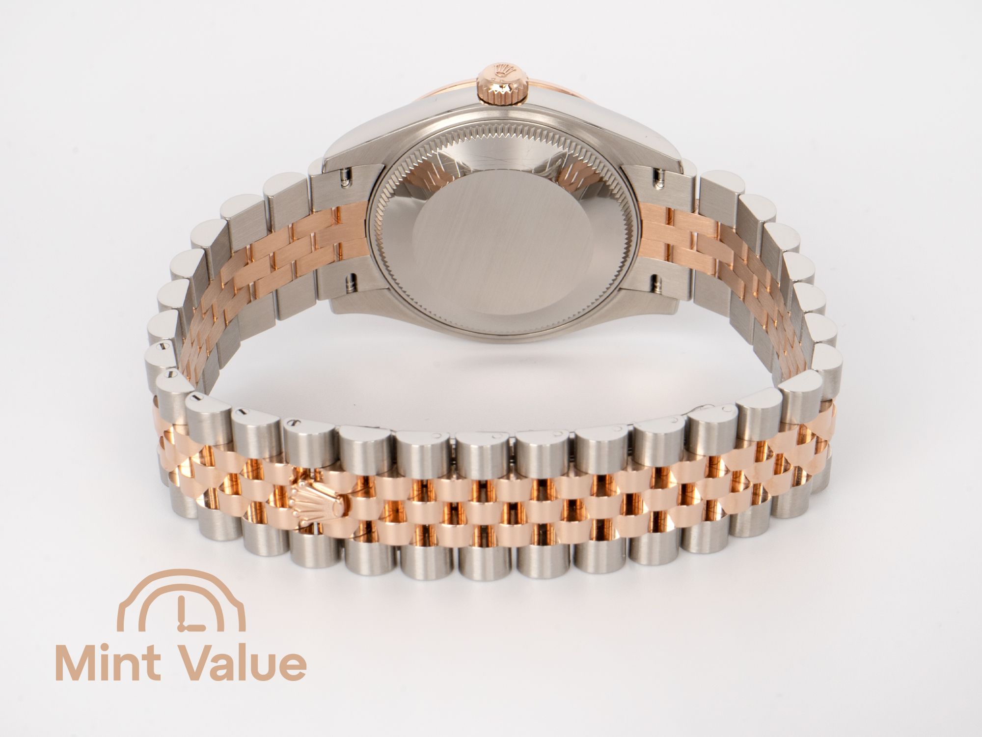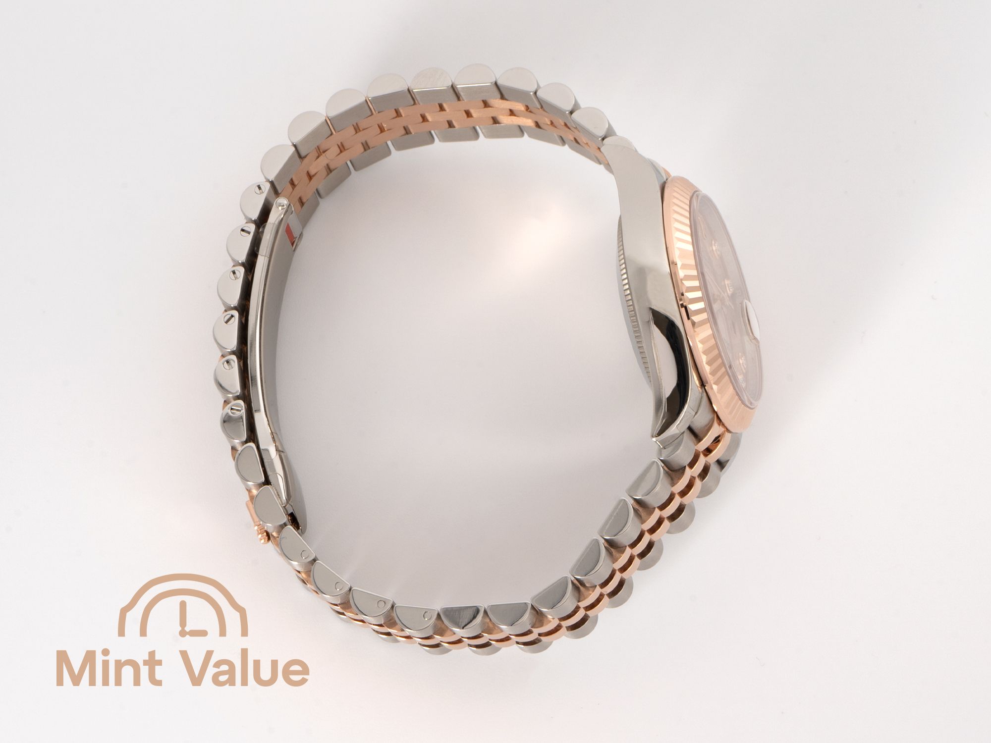 Rolesor Datejust models — especially those with diamond dials — have proven to hold value exceptionally well. The Everose configuration with fluted bezel and Jubilee bracelet ranks among the most desirable, with consistent demand from collectors.