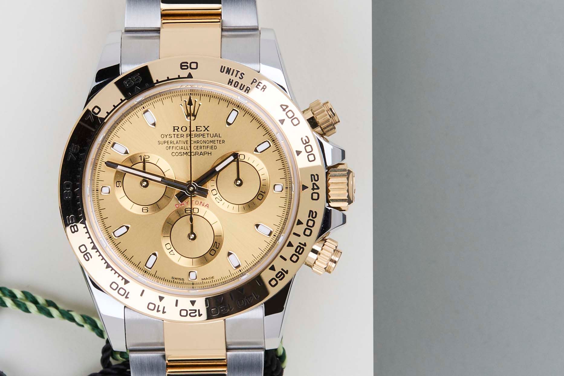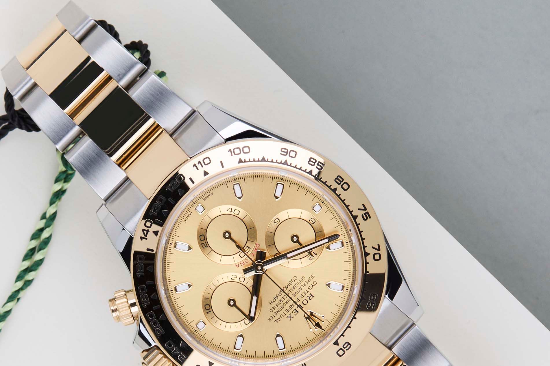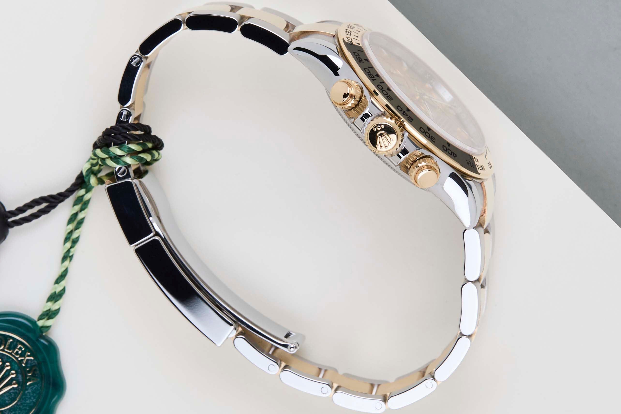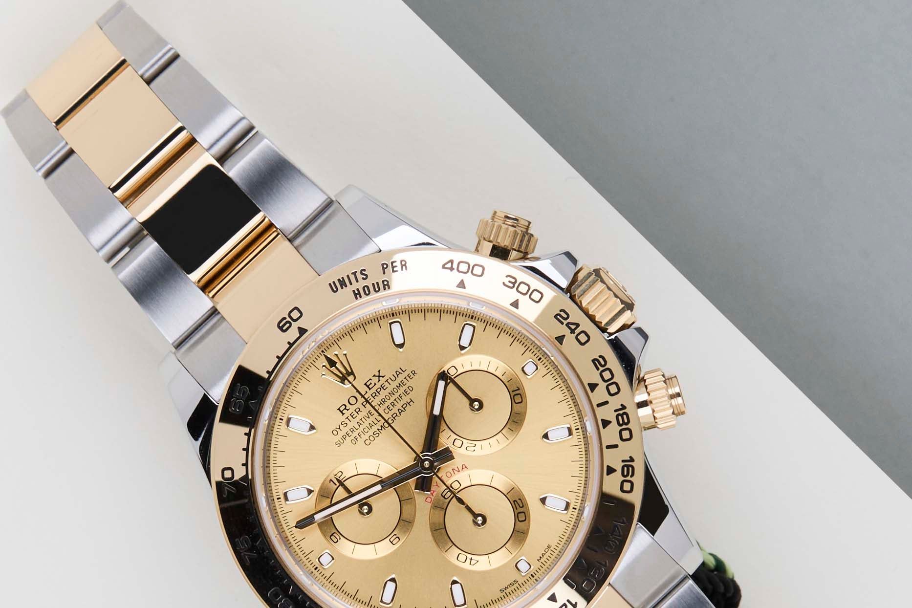 Full Set | International Rolex Warranty Until October 2027The Rolex Cosmograph Daytona is considered one of the most popular models in the world. The reasons for this vary from the watch's history in timekeeping, racing and the love it evoked amongst timepiece enthusiasts, to the huge demand for both the current and the vintage references.This sought-after Rolex Daytona features a stunning combination of stainless steel and 18k yellow gold. This Rolex Daytona 'Champagne Dial' has been sold for the first time in October 2022.This exceptional Rolex Daytona is in mint condition and comes with the original Rolex Warranty Card and Box. Furthermore, the watch still has international Rolex warranty until October 2027.