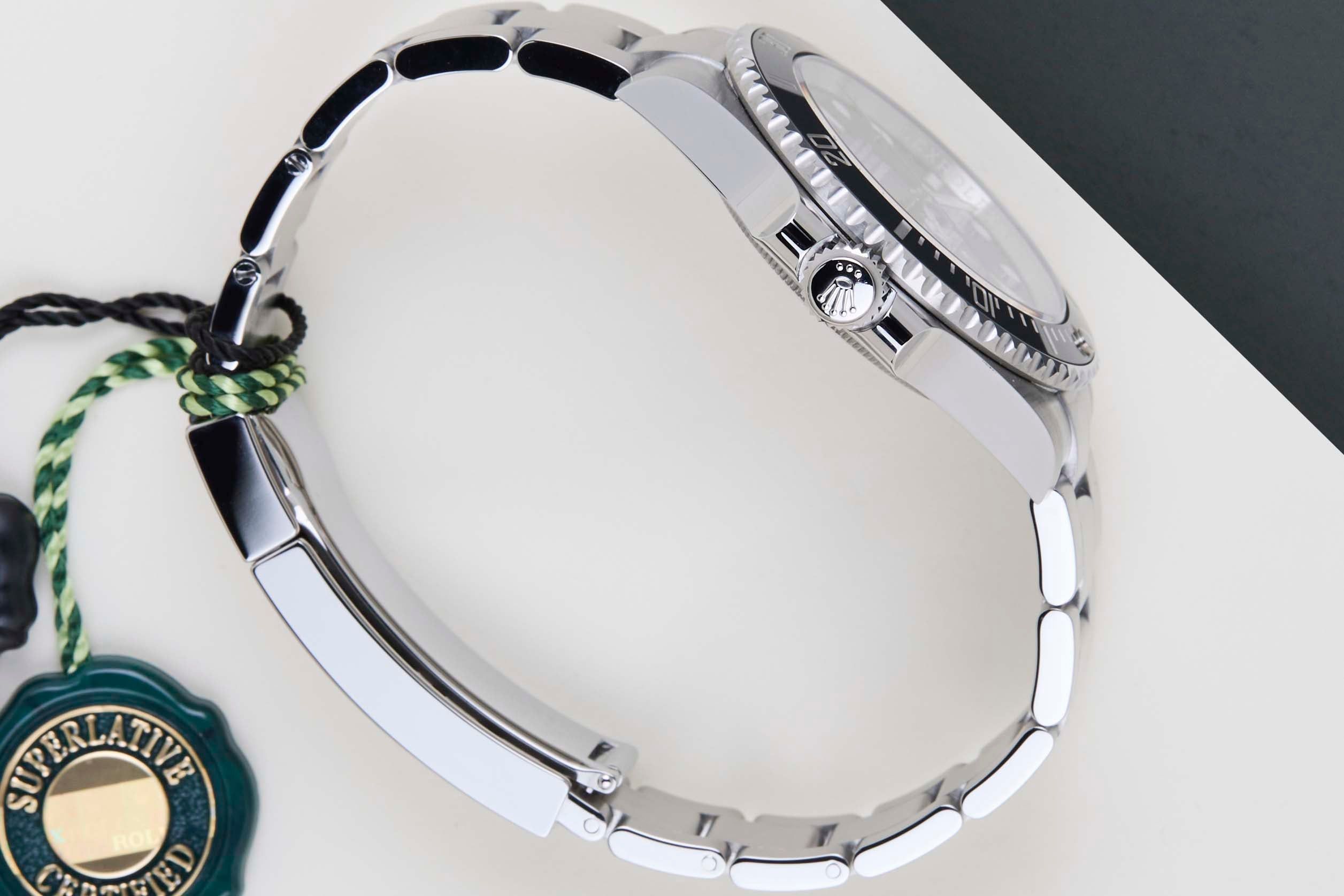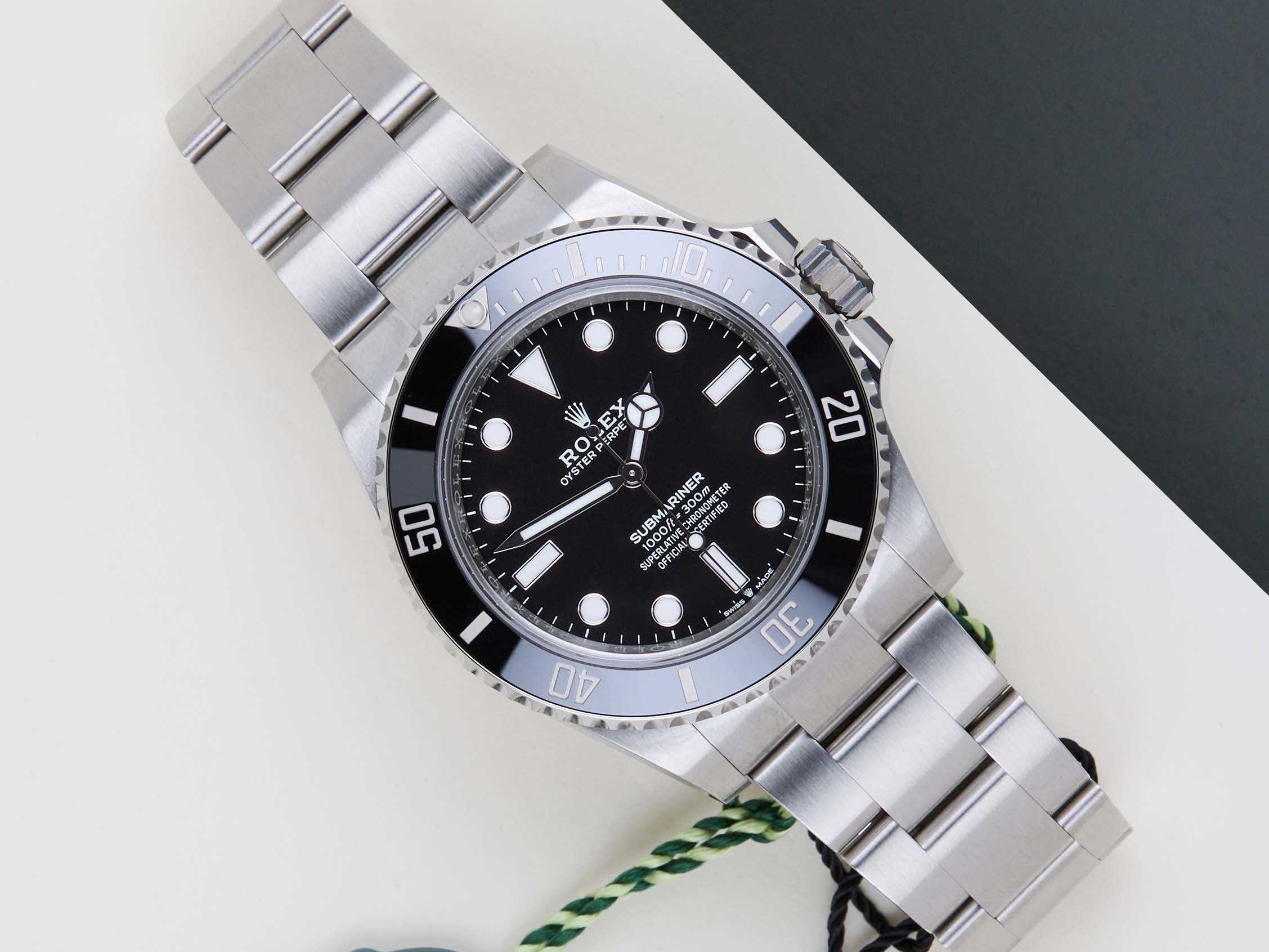 Cette Rolex Submariner No Date est en état Neuf & Non Porté et est livrée avec la carte de garantie Rolex d'origine et la boîte d'origine. De plus, la montre bénéficie toujours de la Garantie Internationale Rolex jusqu'en juillet 2029.