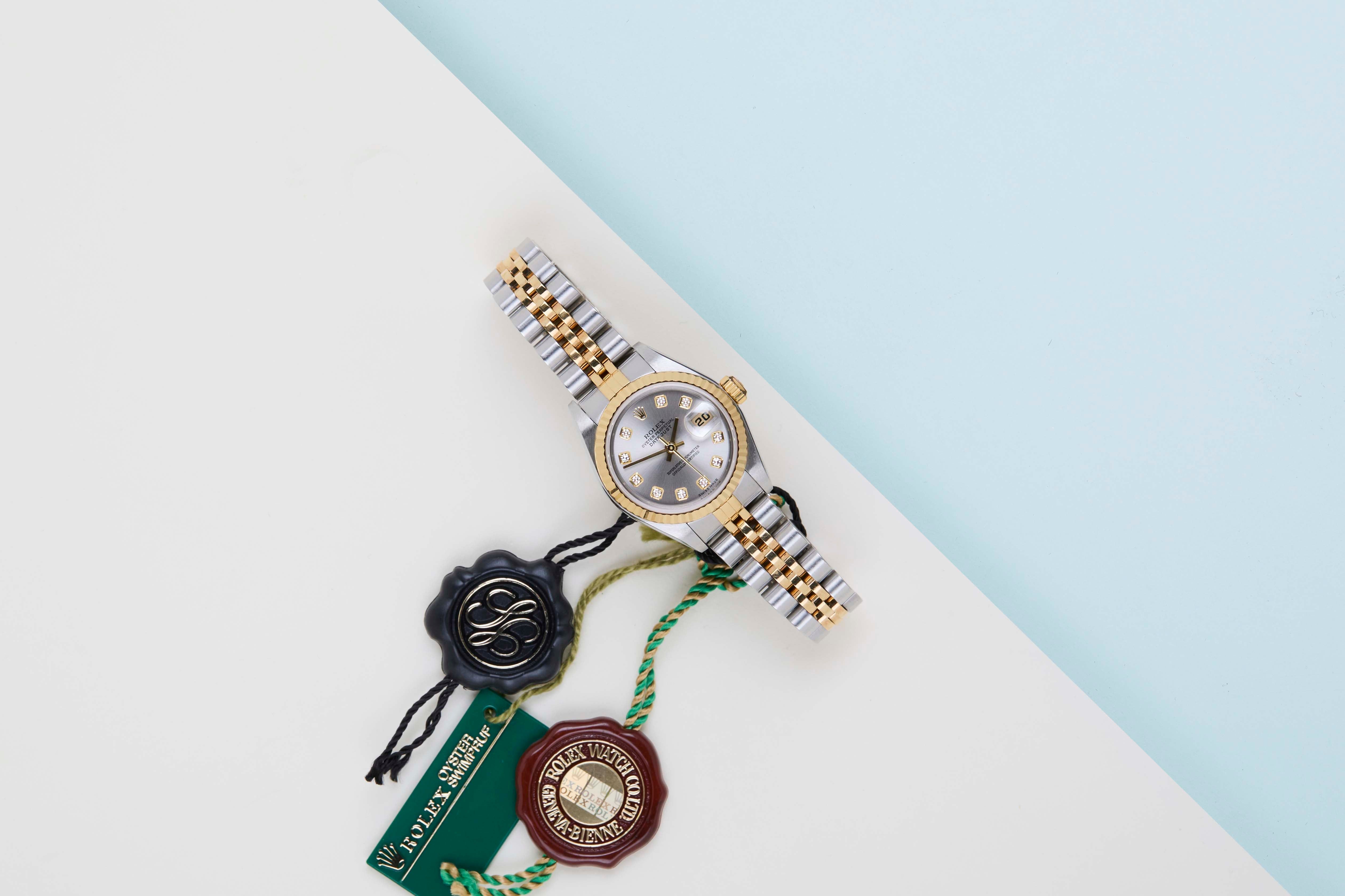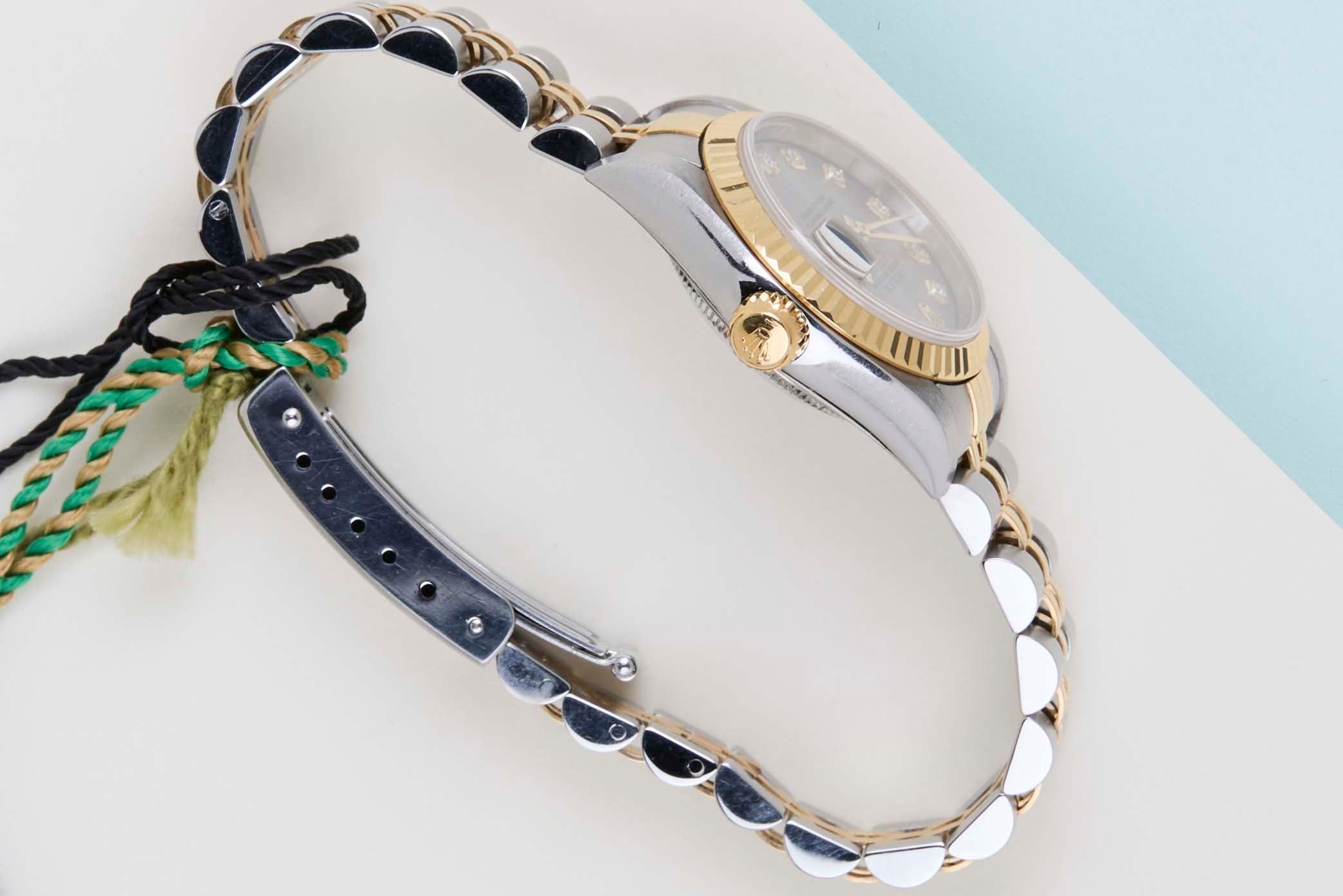 Full Set | Including Rolex Green TagRolex introduced the original Datejust in 1945 to celebrate the company's 40th anniversary. Due to the enormous success, Rolex released the first Lady-Datejust in 1957.This Rolex Datejust 'Grey Diamond Dial - Jubilee Bracelet' and was sold for the first time in May 2004.This Datejust is made out of a combination of 18k Yellow Gold and stainless steel and is fitted with a Jubilee bracelet. It's fitted with a beautiful 'Grey Diamond Dial'.This Rolex Datejust is in Mint condition and comes with the original Rolex box and papers. Furthermore, the watch has one year of Steiner Warranty.