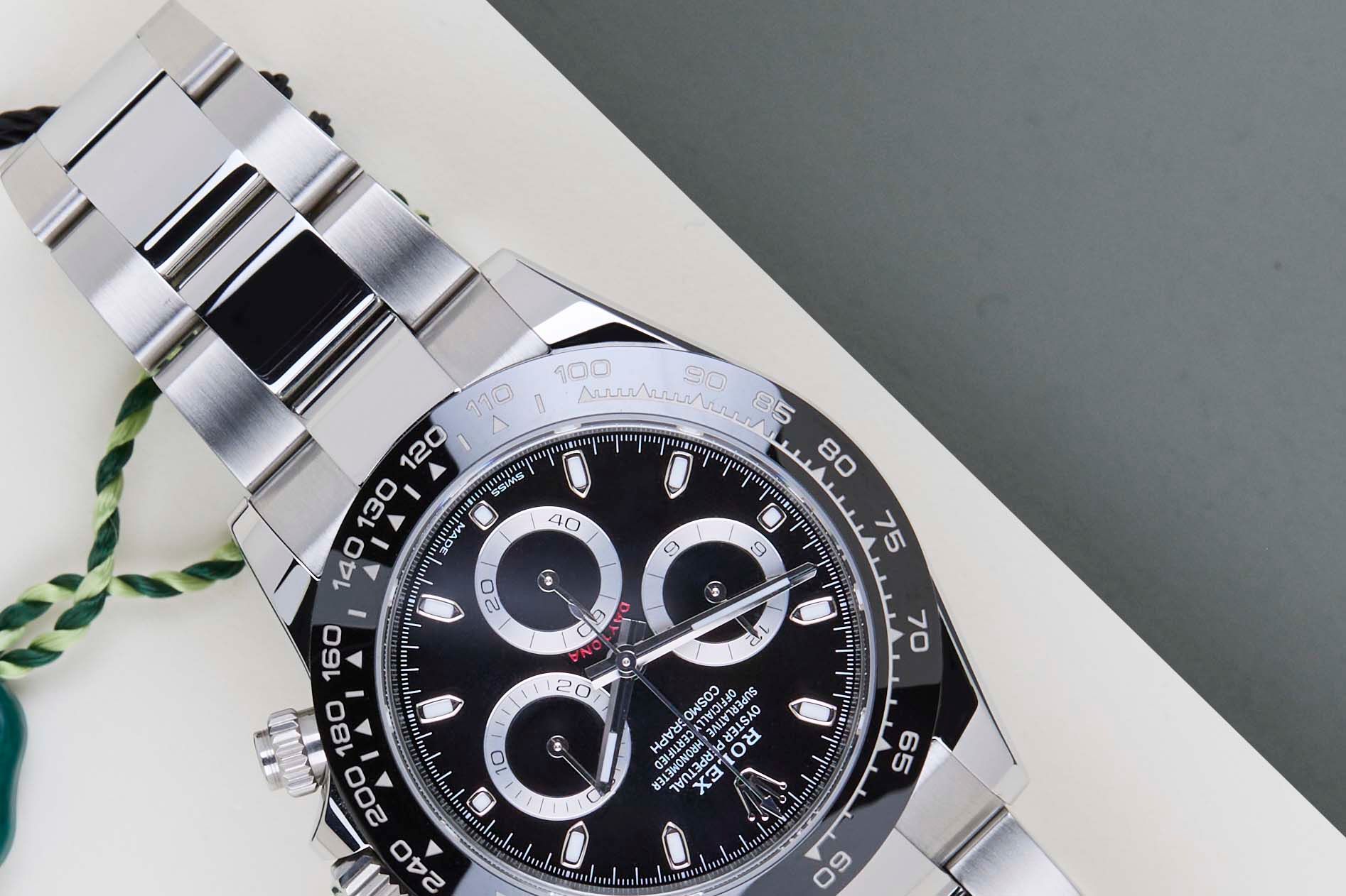 Full Set | International Rolex Warranty Until October 2028The Rolex Cosmograph Daytona is considered one of the most popular models in the world. The reasons for this vary from the watch's history in timekeeping, racing and the love it evoked amongst timepiece enthusiasts, to the huge demand for both the current and the vintage references.This highly sought-after Rolex Daytona 'Black Dial' was sold for the first time in October 2023.The reference 116500LN is the first generation of the Daytona with a Ceramic Bezel. The material used to make this bezel is called 'Cerachrom', which was developed completely in-house by Rolex to be highly scratch-resistant.This Daytona is equipped with a Chromalight dial which can be recognised by the blue lume. This Daytona is fitted with the same calibre 4130, as it's predecessor reference 116520, which was the first generation with an in-house movement by Rolex.This Rolex Daytona 116500LN is in Mint condition and comes with the original Rolex Warranty Card and box. Furthermore, the watch has worldwide Rolex Warranty until October 2028.