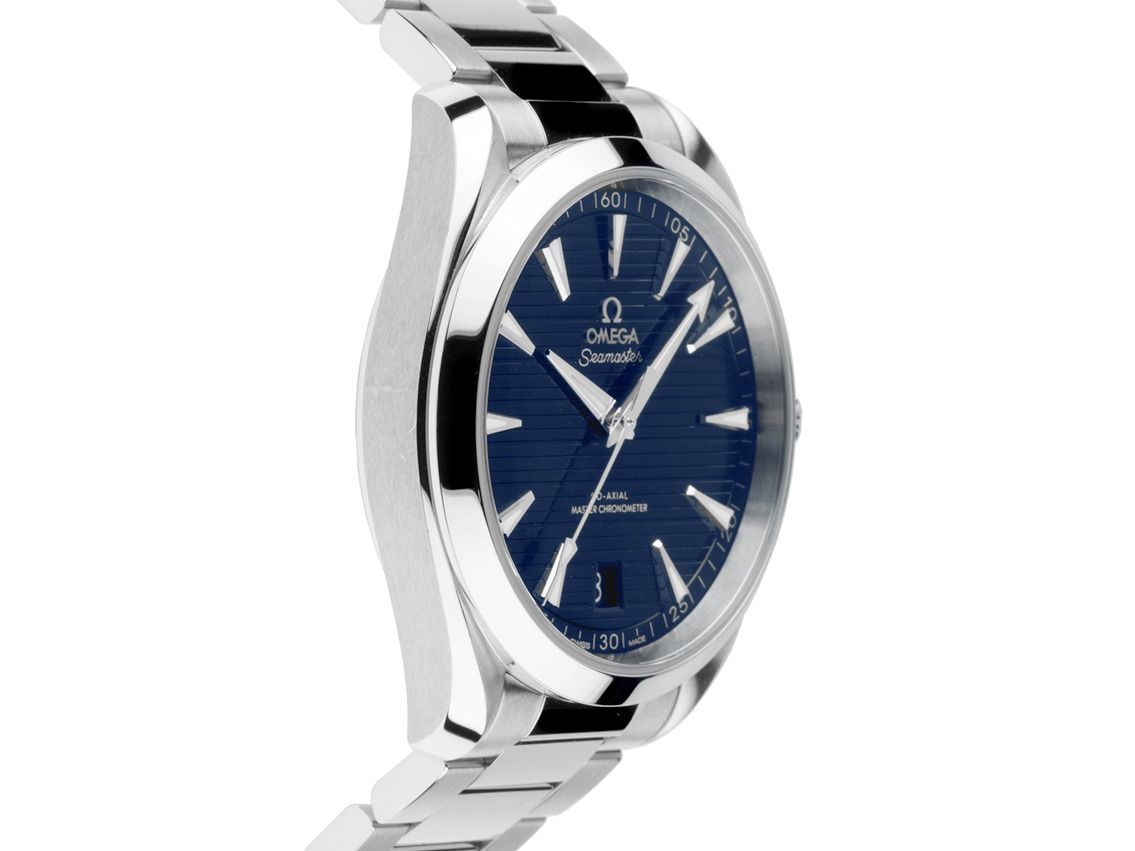 Omega Seamaster Aqua Terra 150 M Co-Axial Master Chronometer Stahl Automatik Armband StahlGehäuse Edelstahl poliert und satiniert, Gehäusedurchmesser ohne Krone 41mm, Gehäusehöhe 13,2mm. Lünette Edelstahl glatt und poliert. Armband Edelstahl poliert und satiniert, verdeckte Doppelsicherheitsfaltschließe Edelstahl mit Hersteller-Logo. Zifferblatt dunkelblau mit „Teak“-Dekor, aufgesetzten Edelstahl Leuchtindexen und Edelstahl Leuchtzeigern. Uhrwerk Automatik, Master Chronometer mit Zeugnis, Omega Manufakturkaliber 8900 mit 39 Edelsteinen, Co-Axial Hemmung, Freie Unruh-Spiralfeder, 2 Federhäuser. Anzeige von Stunde, Minute und Sekunde über Zeiger aus der Mitte mit Sekundenstopp zur sekundengenauen Einstellung der Uhrzeit, Datumsanzeige mit Schnellverstellung bei 6 Uhr. Saphirglas kratzfest und gewölbt, beidseitig entspiegelt. Krone verschraubbar mit Hersteller-Logo. Boden Edelstahl verschraubt und graviert mit Saphirglas Sichtfenster. Gewicht der Uhr inklusive Armband 149g, Länge des Armbandes inklusive Gehäuse 195mm. Wasserdicht bis 15 ATM. Referenznummer: 220.10.41.21.03.004, ID: ST116096620126H-6800, Artikelnummer: 10000084368. Original Omega Box mit Umkarton und Garantie Papiere von Januar 2026 sowie Beschreibung, Full Set. Ungetragen. Lieferzeit sofort.