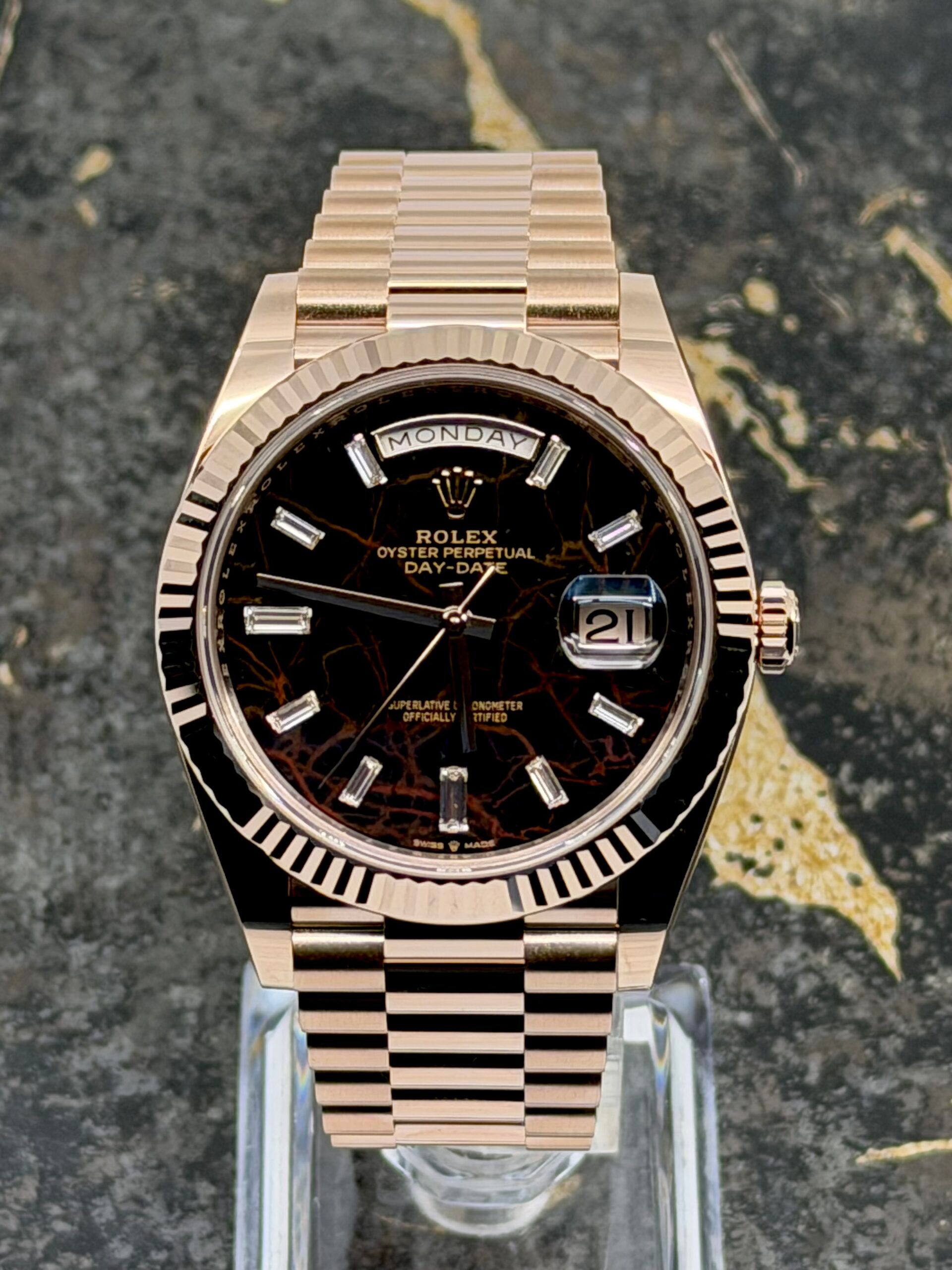 Rolex Day-Date 40 - 228235- Rose Gold - Eissenkiesel Baguette Dial - New 2025