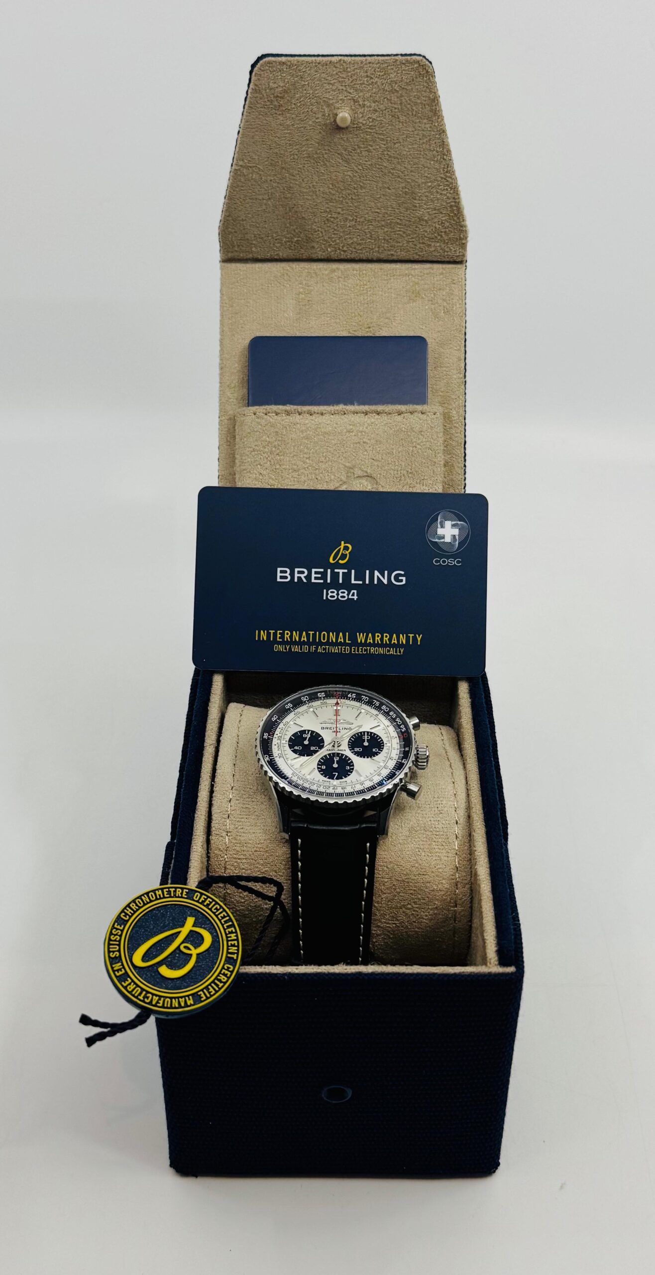 Breitling Navitimer 1 B01 Chronograph Breitling Navitimer B01 Chronograph 43mm - Black Leather Strap - Silver AB0138241G1P1 - New 2025