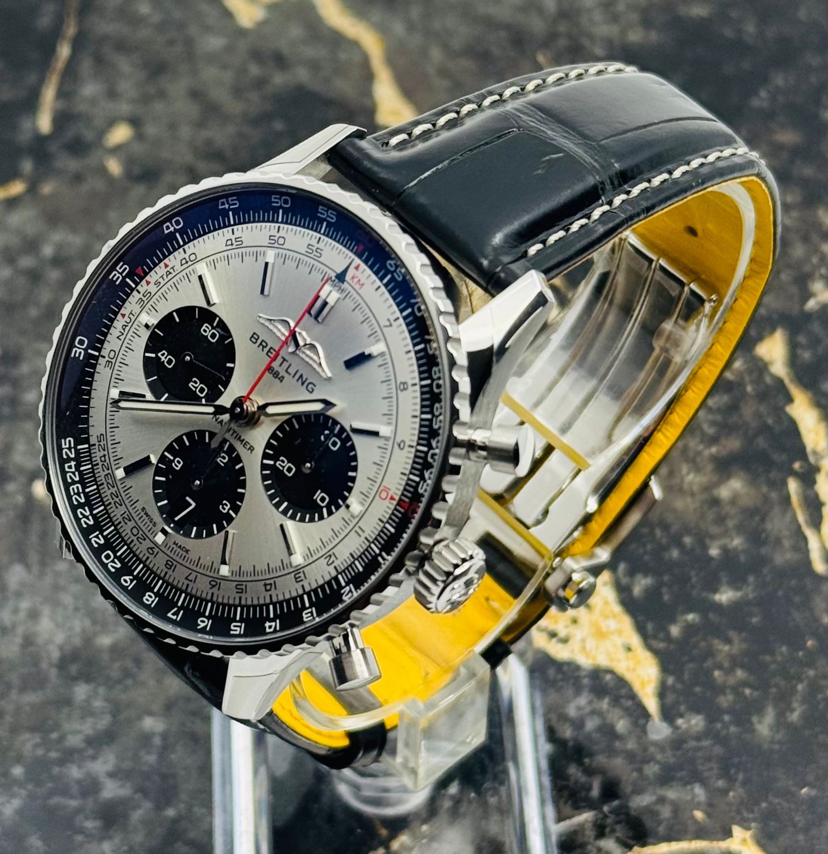 Breitling Navitimer B01 Chronographe 43mm - Bracelet en Cuir Noir - Argent AB0138241G1P1 - Nouveau 2025