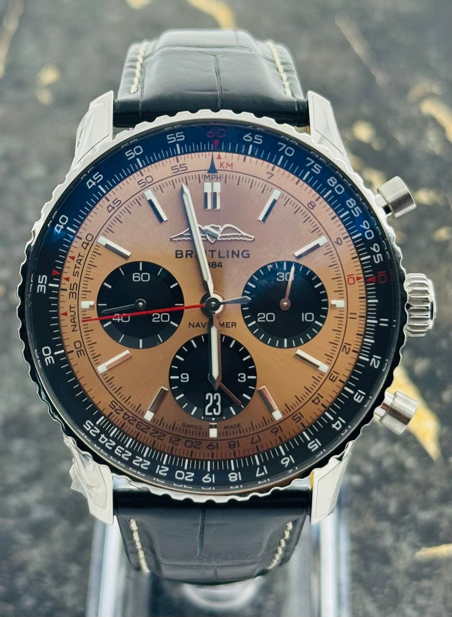Breitling Navitimer B01 Chronograph 43mm - Black Leather Strap - Copper AB0138241K1P1 - New 2025