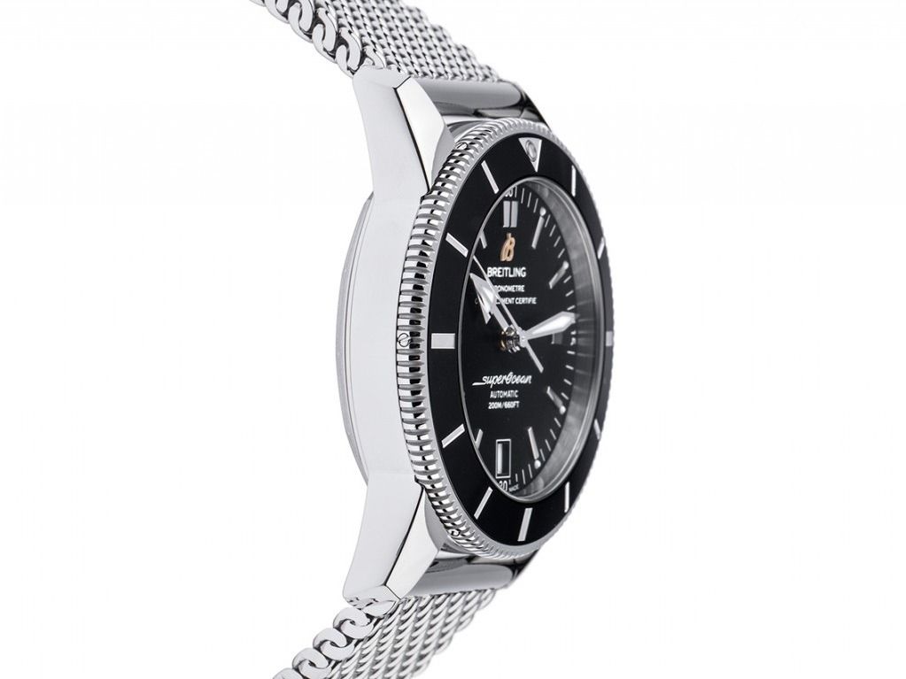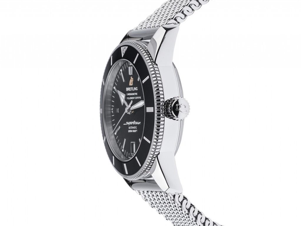 Breitling Superocean Héritage Stahl Automatik Armband StahlGehäuse Edelstahl poliert, Gehäusedurchmesser ohne Krone 46mm, Gehäusehöhe 13,6mm. Lünette Edelstahl gerädelt und poliert, mit schwarzem Inlay und 60-Minuten Skala für Tauchgänge, einseitig drehbar. Armband Edelstahl poliert, Sicherheitsfaltschließe Edelstahl mit Hersteller-Logo. Zifferblatt schwarz mit aufgesetzten Edelstahl Indexen und polierten Edelstahl Zeigern. Uhrwerk Automatik, Chronometer mit Zeugnis, Kaliber Breitling 17 mit 25 Edelsteinen. Anzeige von Stunde, Minute und Sekunde über Zeiger aus der Mitte mit Sekundenstopp zur sekundengenauen Einstellung der Uhrzeit, Datumsanzeige mit Schnellverstellung bei 6 Uhr. Saphirglas kratzfest. Krone verschraubbar mit Hersteller-Logo. Boden Edelstahl verschraubt und graviert. Gewicht der Uhr inklusive Armband 189g, Länge des Armbandes inklusive Gehäuse 190mm. Referenznummer: A1732024/B868, Gehäusenummer: 1780XXX, ID: P234426000126H-4900, Artikelnummer: 10000084388. Mit Gangkontrolle und kompletter äußerlicher Aufarbeitung von Januar 2026. Original Breitling Box mit Umkarton und Garantie Papiere von Februar 2016 sowie Beschreibung, Lünettenschutz und Watchregister Auszug von Januar 2026, The Watch Register Zertifikat / ohne Eintrag (Internationale Datenbank für verlorene oder gestohlene Uhren), Full Set, inklusive Erstkaufrechnung. Superschnäppchen, aus erster Hand, fast nicht getragen. Wie Neu. Lieferzeit sofort.
