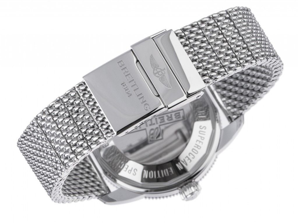 Boîtier en acier inoxydable poli, diamètre du boîtier sans couronne 46mm, hauteur du boîtier 13,6mm. Lunette en acier inoxydable cannelée et polie, avec insert noir et échelle de 60 minutes pour les plongées, unidirectionnelle. Bracelet en acier inoxydable poli, fermoir déployant de sécurité en acier inoxydable avec logo du fabricant. Cadran noir avec index en acier inoxydable appliqués et aiguilles en acier inoxydable polies. Mouvement automatique, chronomètre avec certificat, calibre Breitling 17 avec 25 pierres précieuses. Affichage des heures, minutes et secondes par aiguilles centrales avec arrêt de seconde pour un réglage précis de l'heure, affichage de la date avec réglage rapide à 6 heures. Verre saphir résistant aux rayures. Couronne vissée avec logo du fabricant. Fond en acier inoxydable vissé et gravé. Poids de la montre y compris le bracelet 189g, longueur du bracelet y compris le boîtier 190mm. Numéro de référence : A1732024/B868, numéro de boîtier : 1780XXX, ID : P234426000126H-4900, numéro d'article : 10000084388. Avec contrôle de marche et révision extérieure complète de janvier 2026. Boîte Breitling d'origine avec carton d'emballage et papiers de garantie de février 2016 ainsi que description, protection de lunette et extrait du registre de montre de janvier 2026, certificat The Watch Register / sans inscription (base de données internationale pour montres perdues ou volées), ensemble complet, y compris facture d'achat initiale. Super affaire, de première main, presque jamais portée. Comme neuve. Délai de livraison immédiat.