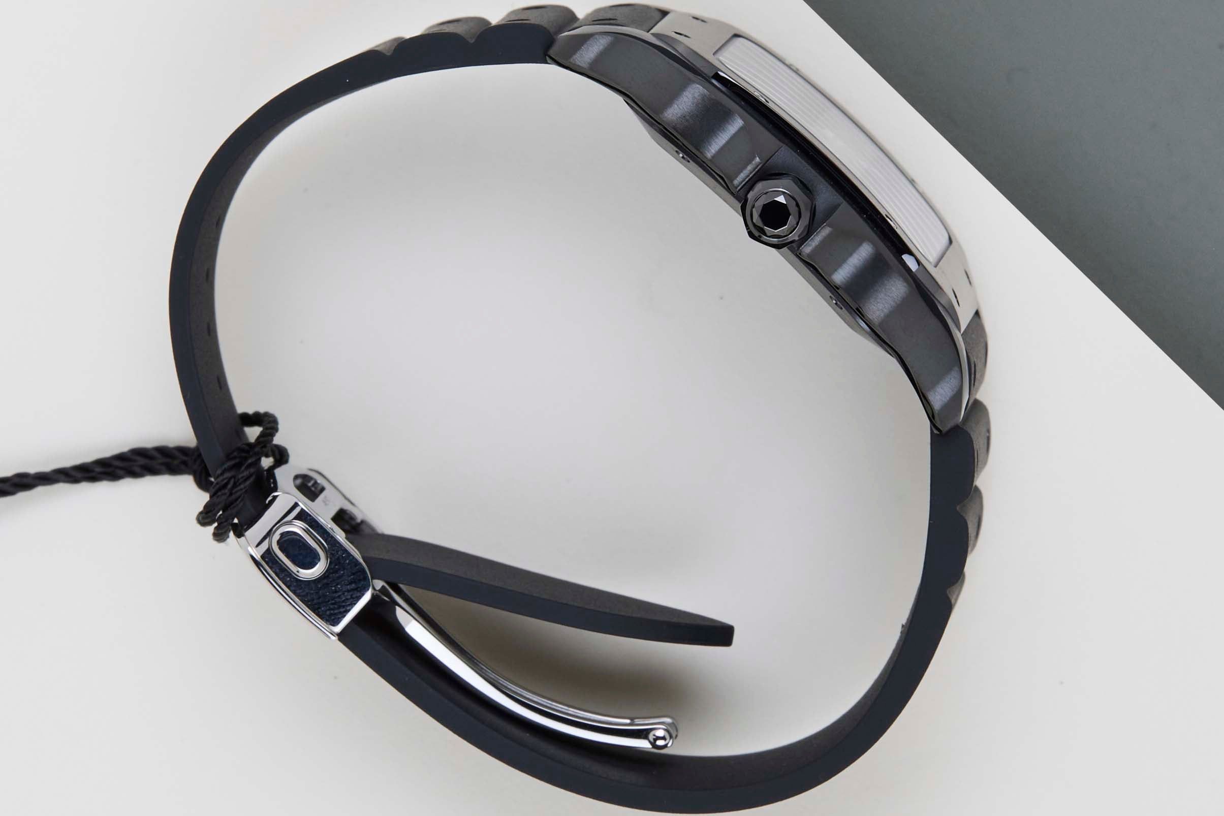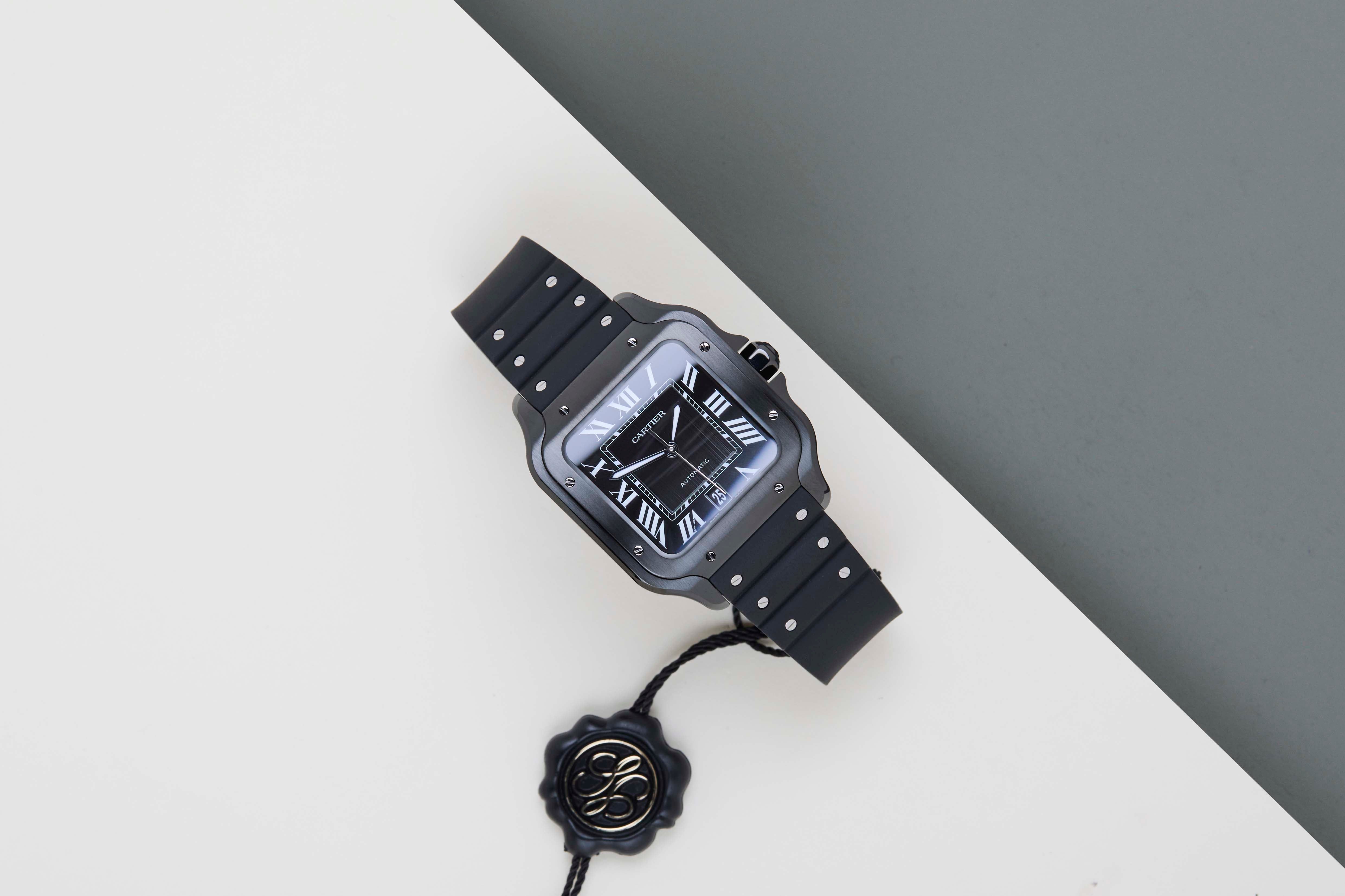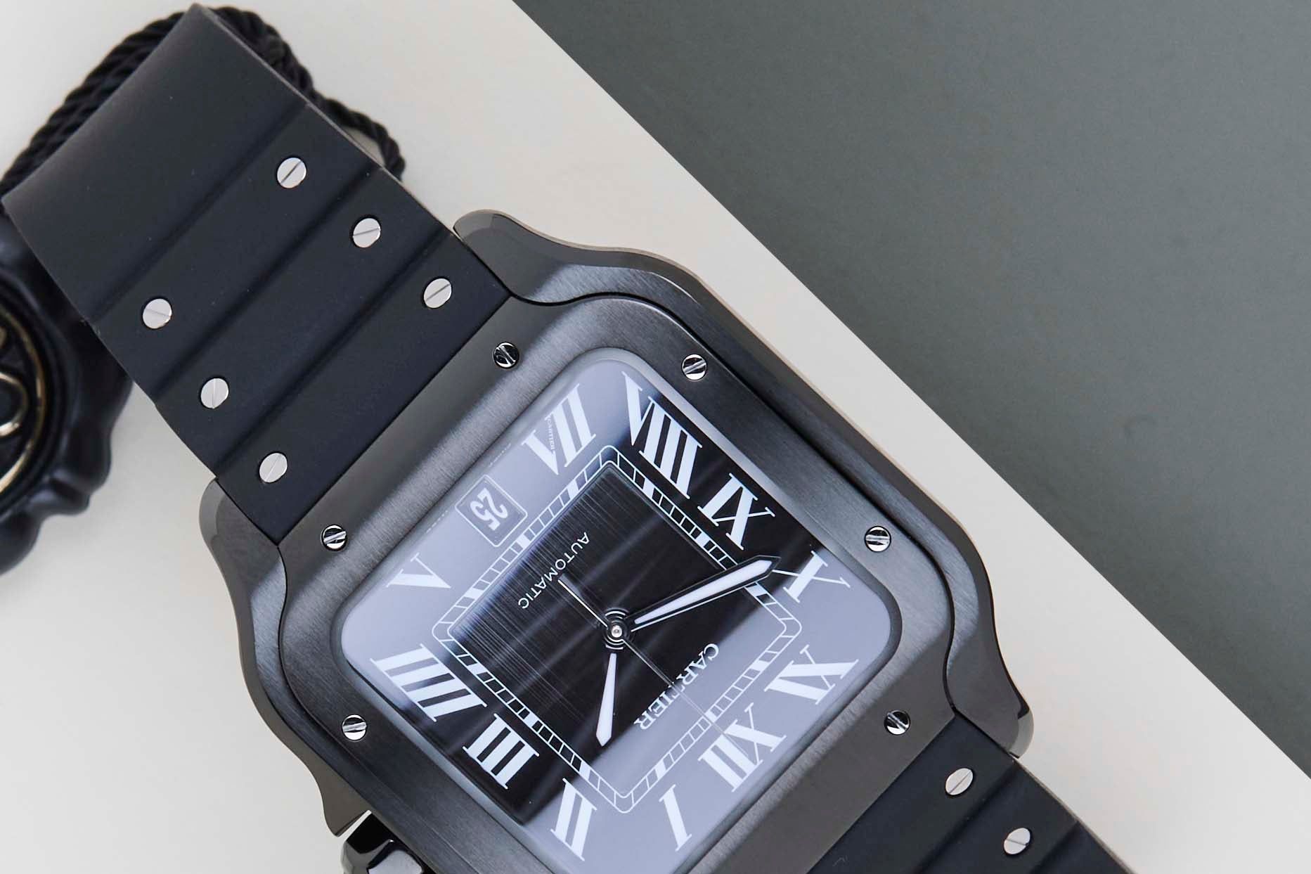 Neuf et jamais porté | Ensemble complet | Comprend la garantie internationale Cartier jusqu'en janvier 2034 | Comprend un nouveau bracelet en cuir Cartier d'origine | Revêtement en carbone amorphe semblable à un diamant (ADLC)